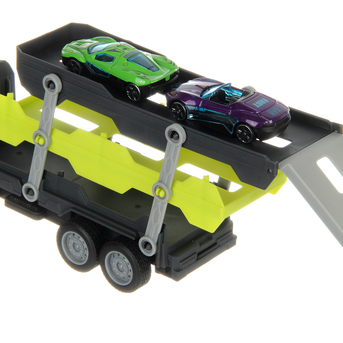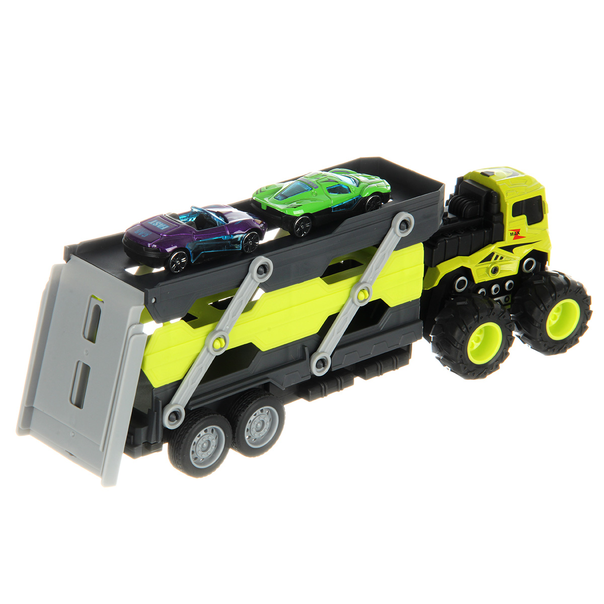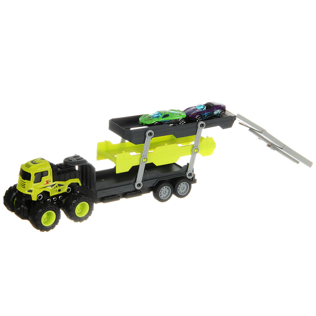 Размер автовоза, платформа выдвинута, аппарель разложена 41х8х11 см.