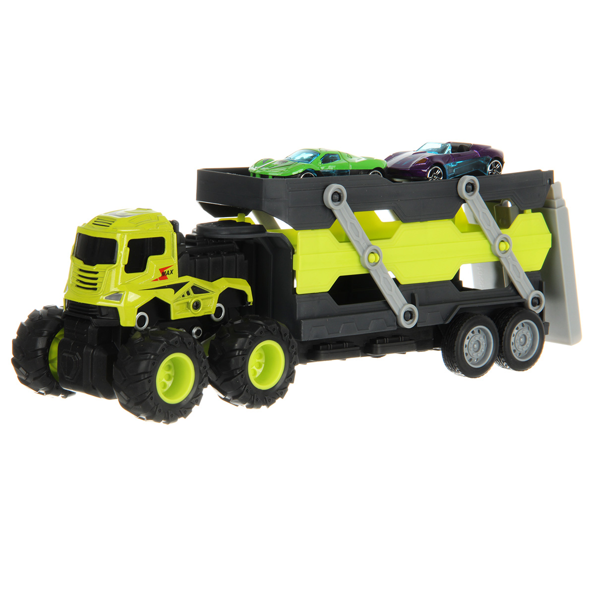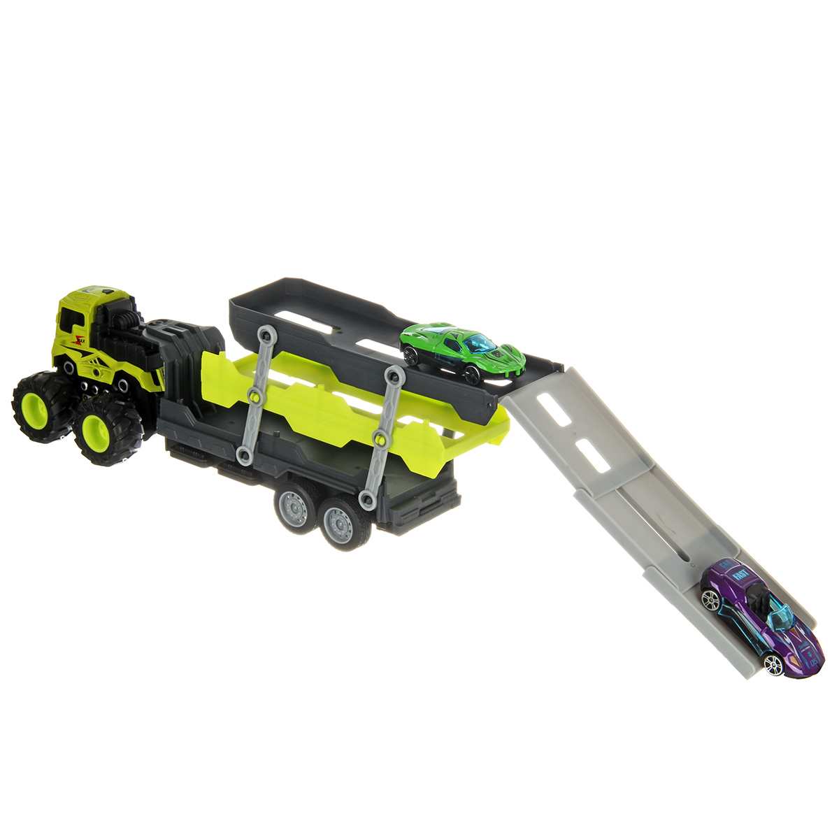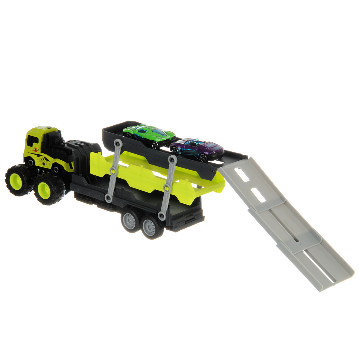 Размер автовоза, платформа выдвинута, аппарель разложена 41х8х11 см.