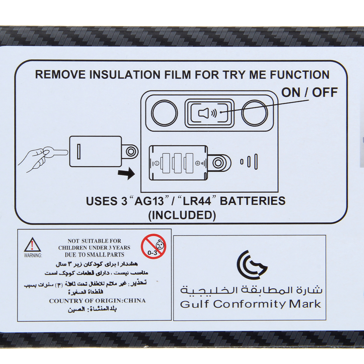 Машинка работает от 3 батареек LR44, входят в комплект.