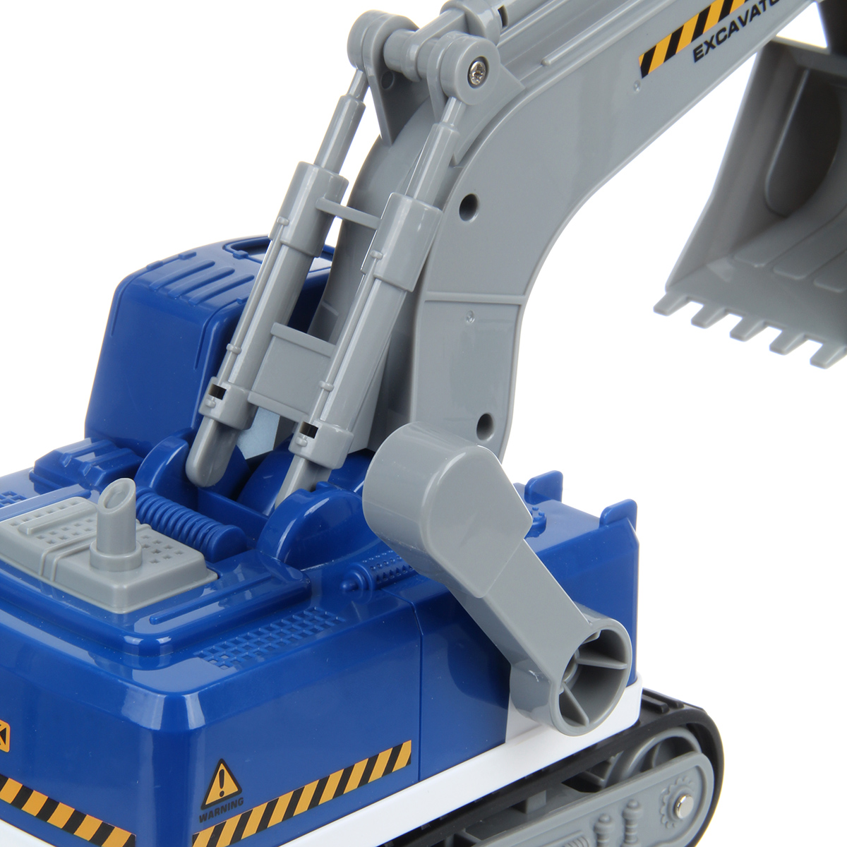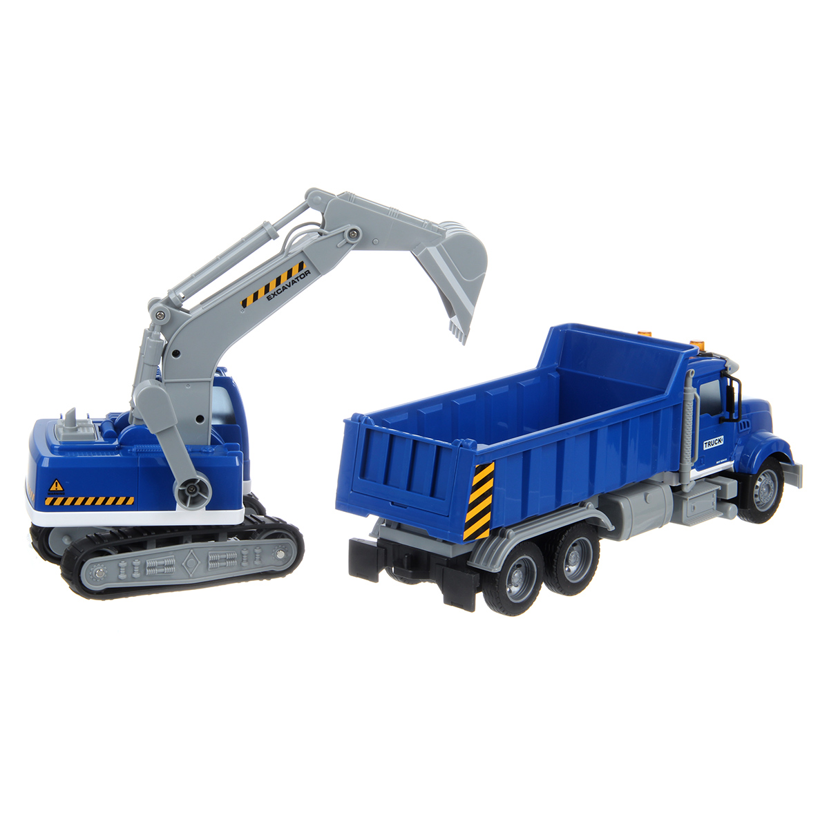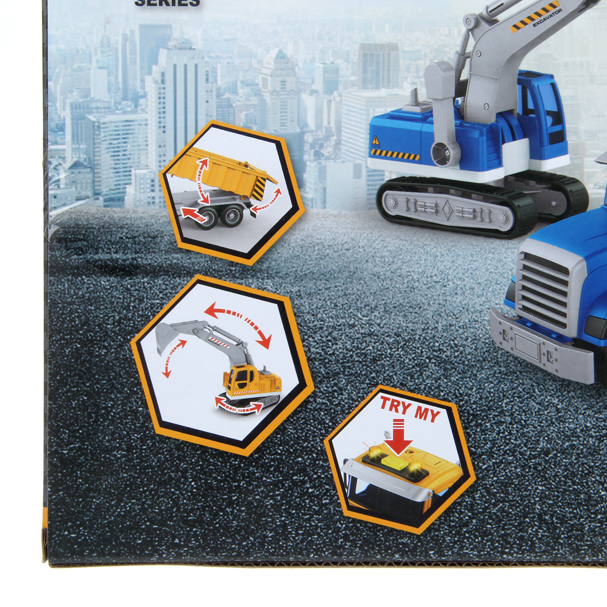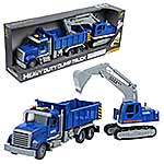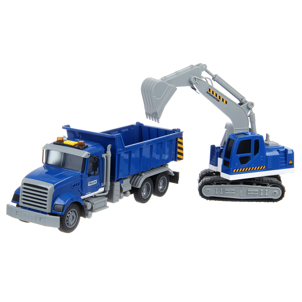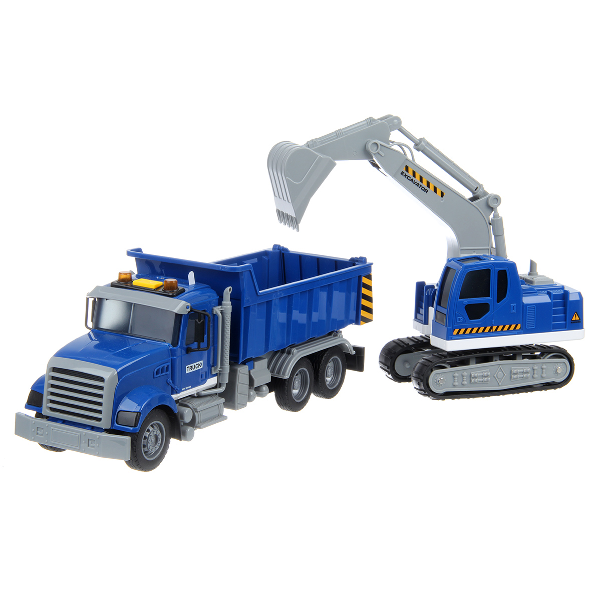 Большая машинка самосвал с подвижными деталями, звуковыми и световыми эффектами. Игрушка самосвал издает звуки заднего хода и гудка, имеет подсветку лампочек на кабине, можно играть в темное время суток. Фрикционная игрушечная машина с поднимающимся кузовом, экскаватор с крутящейся кабиной и раскладывающейся стрелой. Игрушка на батарейках изготовлена из прочных и долговечных материалов. Игрушечный самосвал станет замечательным подарком для детей на Новый год и День рождения, ребенок узнает больше о работе спецтехники.