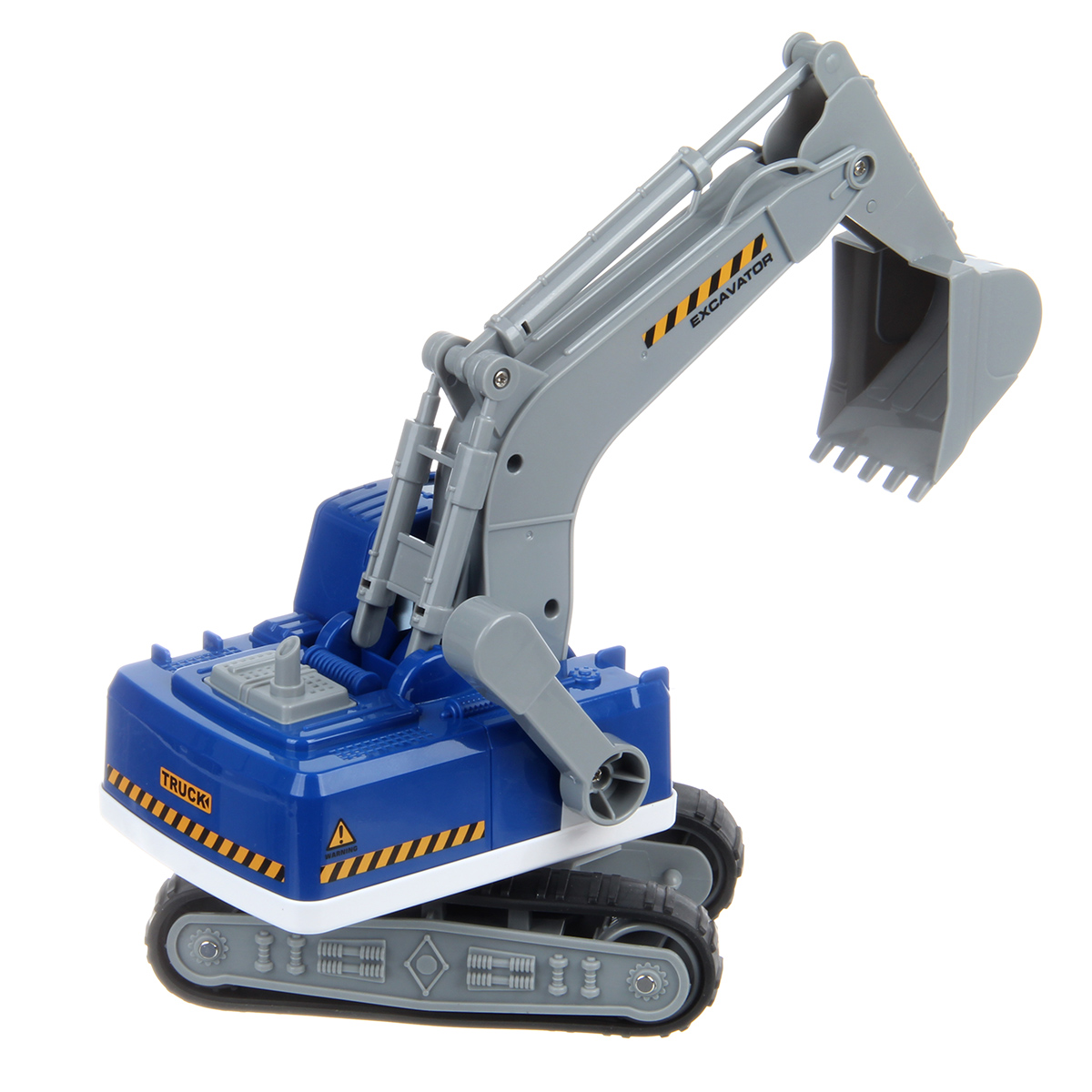 2. Экскаватор. Катается вперед и назад, гусеницы мягкие, снимаются. Кабина крутится на 360 градусов, боковой рычаг поднимает, опускает, складывает и раскладывает сегмент стрелы.