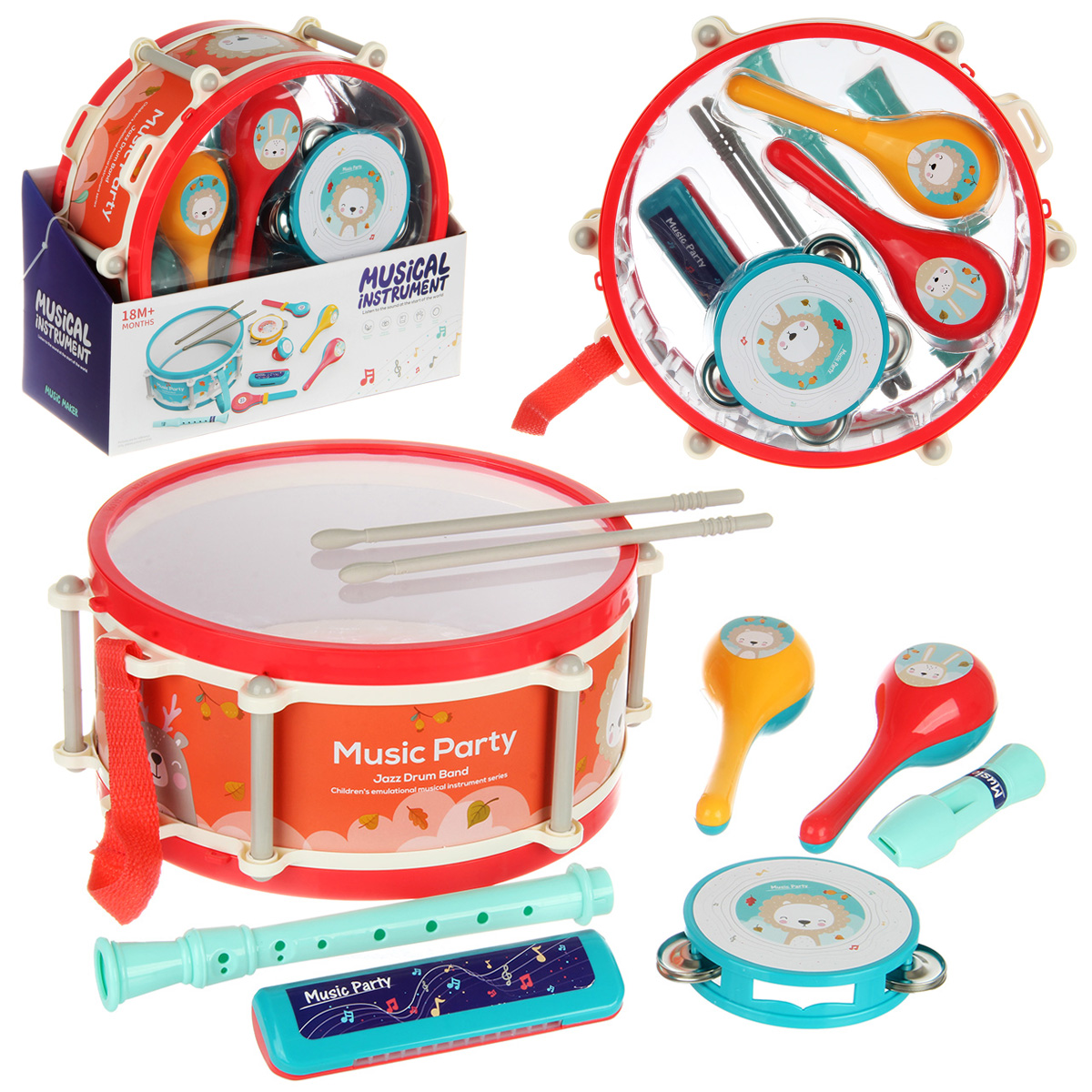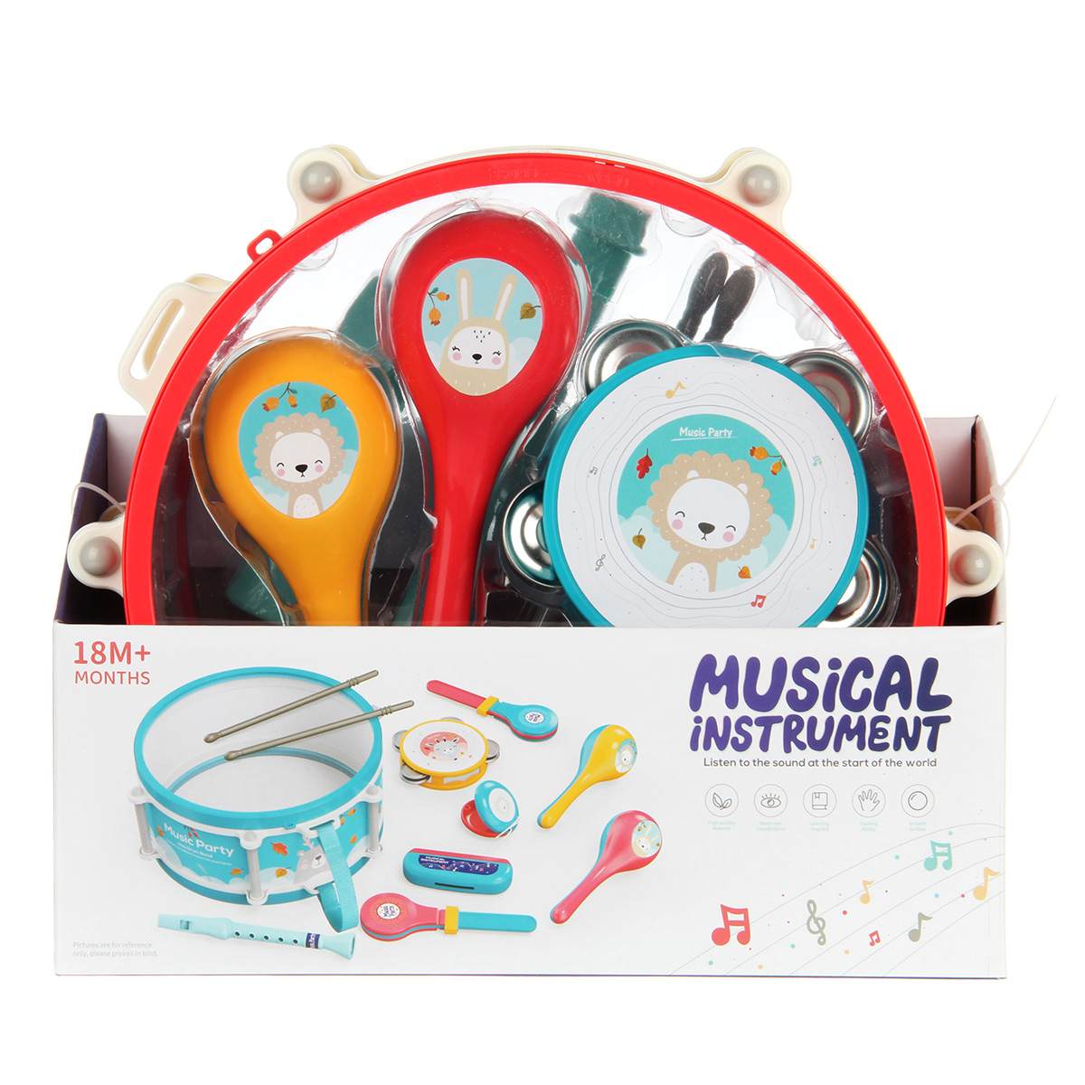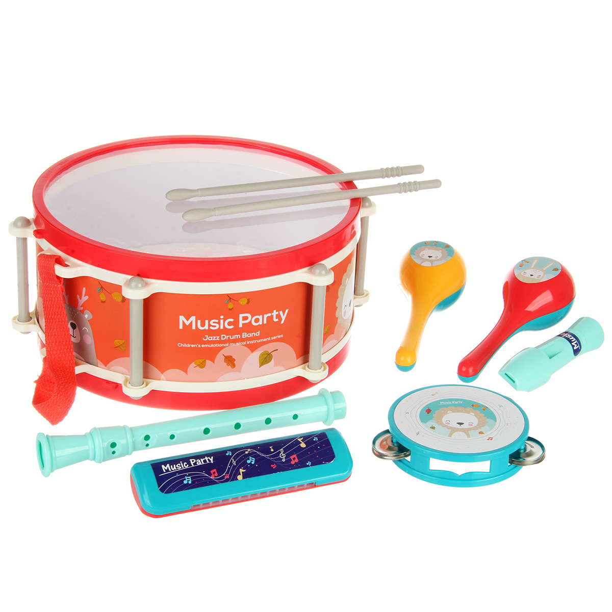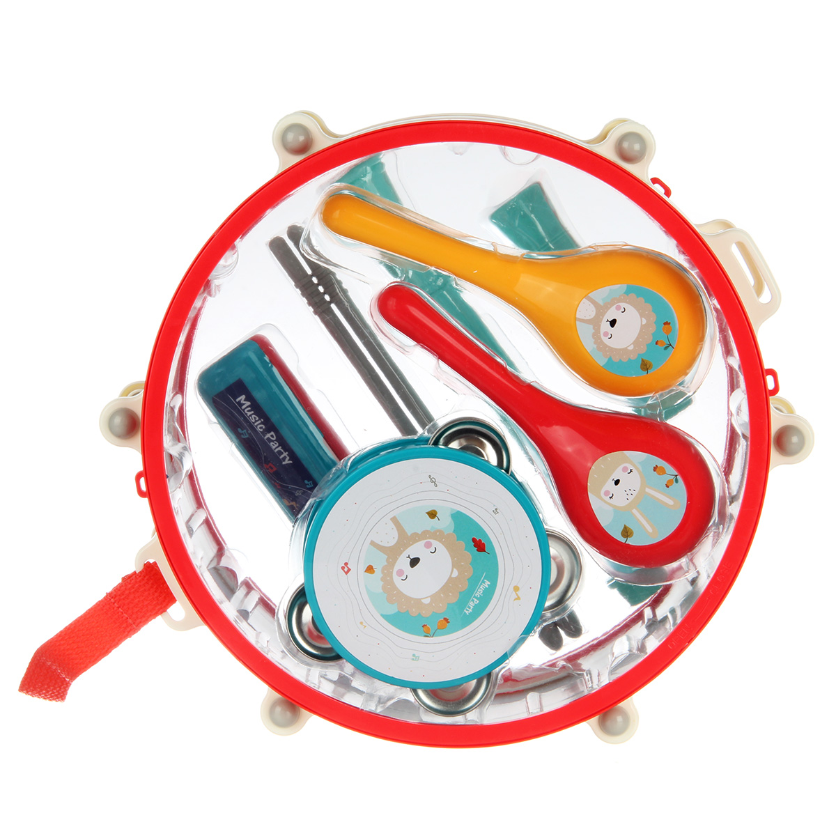 Игровой набор музыкальных инструментов с большим количеством предметов. Каждый игрушечный инструмент издаёт соответствующий звук. Удобный ремешок барабана, все предметы можно положить в барабан и переносить в нем, компактные размеры, лёгкий вес. Музыкальные игрушки изготовлены из прочных и безопасных материалов, оформлены в милом дизайне и яркой расцветке.
