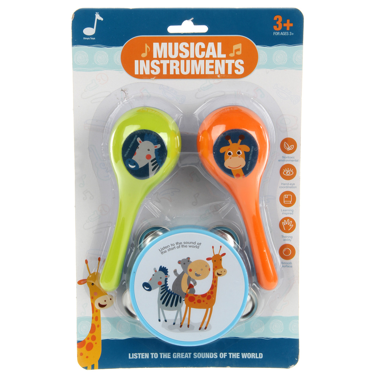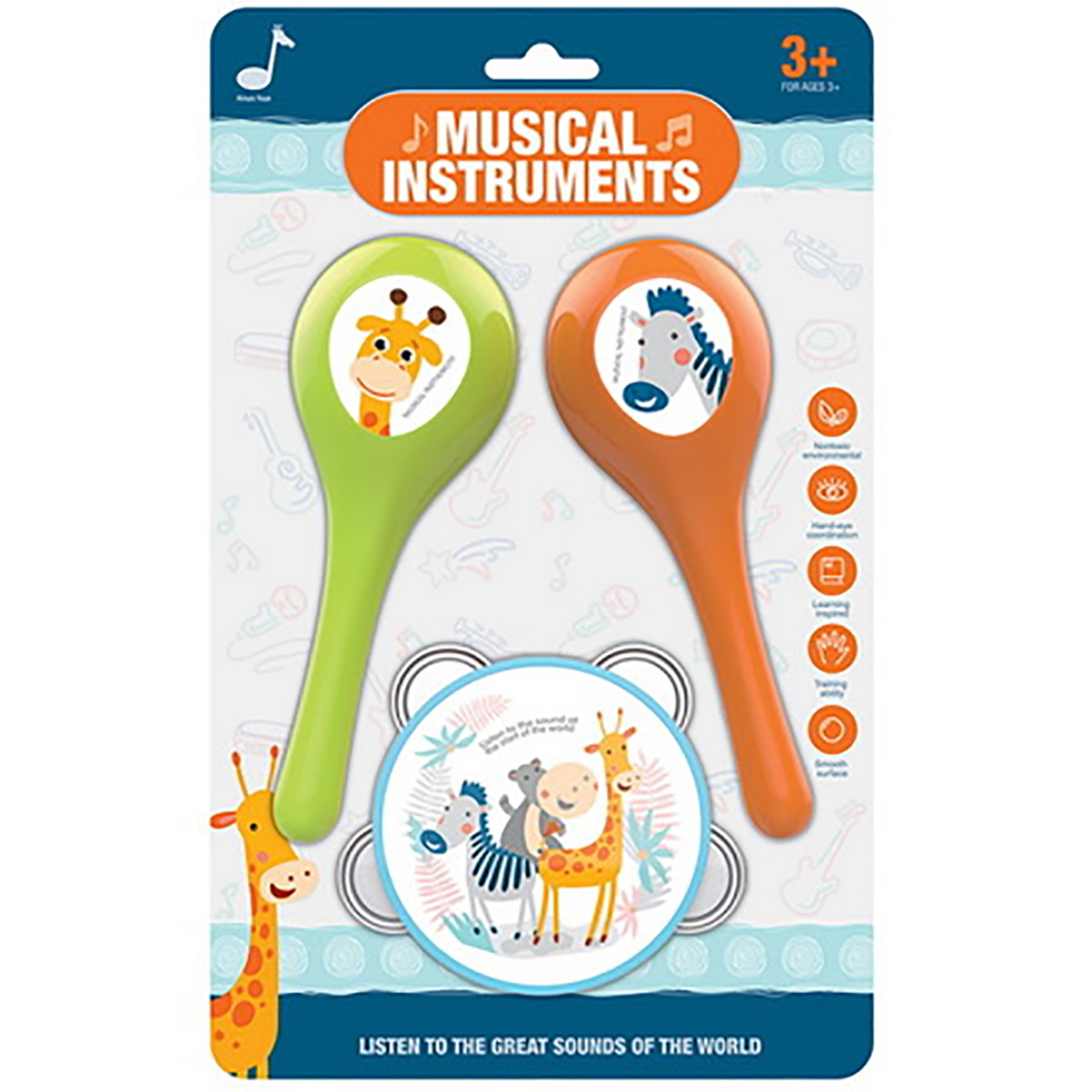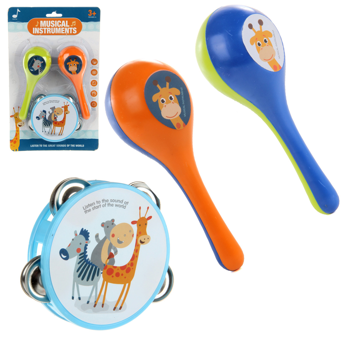 Замечательный музыкальный дуэт, состоящий из бубна и маракасов, понравится каждому юному меломану. Маракасы и бубен издают звук, если их потрясти. У маракасов удобные ручки. Игрушка развивает артистические способности, воображение, слуховое и зрительное восприятие, координацию движений, мелкую моторику рук, знакомит с миром музыкальных инструментов. Игрушка оформлена в яркой цветовой гамме и отличается интересным дизайном. Игрушка изготовлена из качественного и безопасного полимерного материала, есть элементы металла. Упаковка: блистер. Размеры маракаса: 6*5*16 см. Размеры бубна: 11,5*2,5*10 см. Размеры игрушки в упаковке: 19*6*30 см.