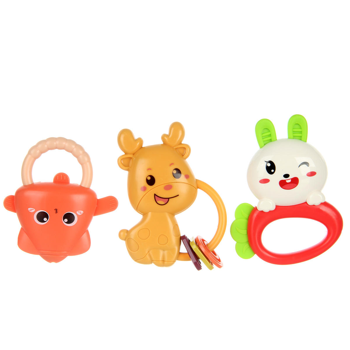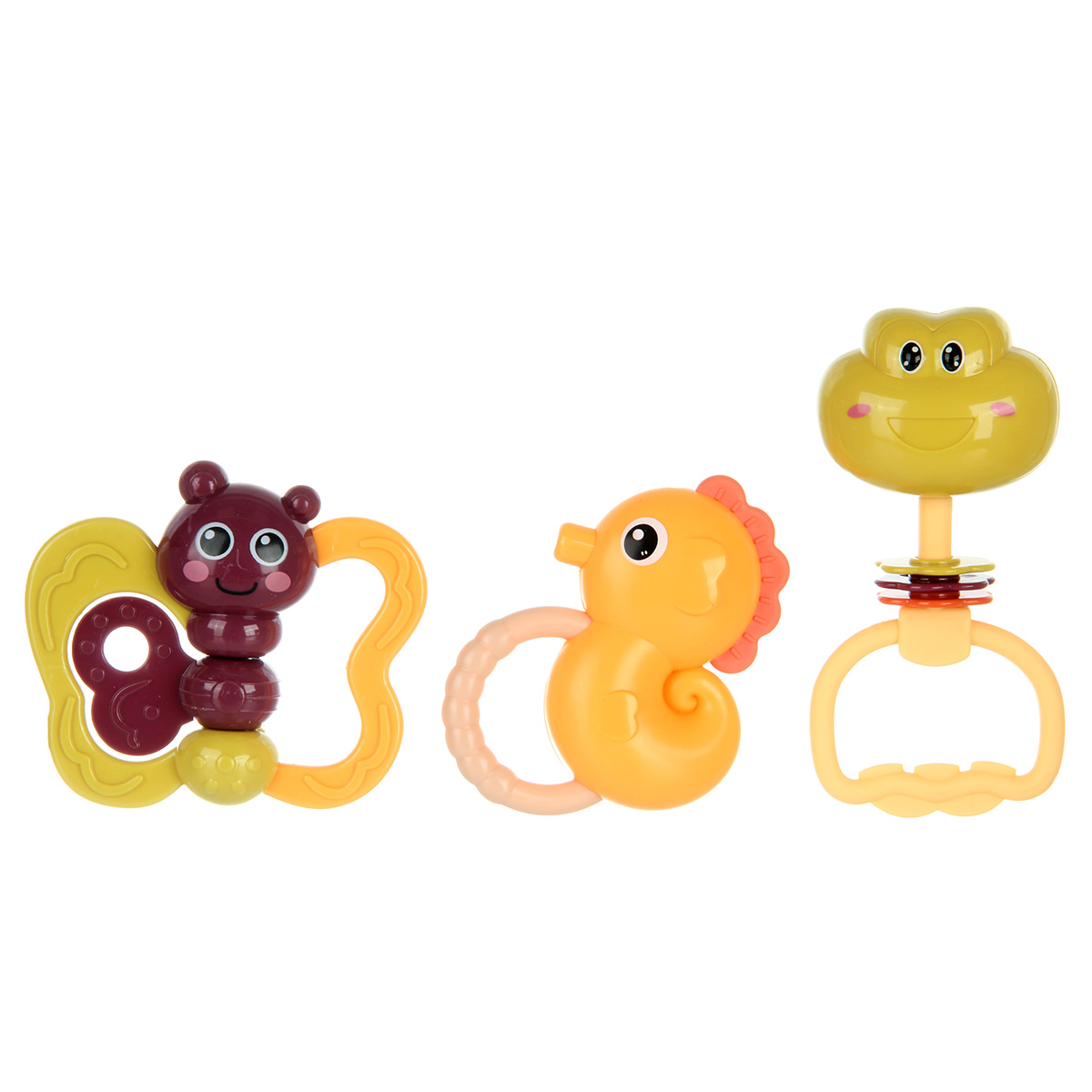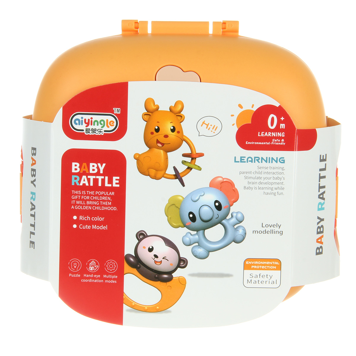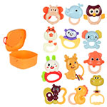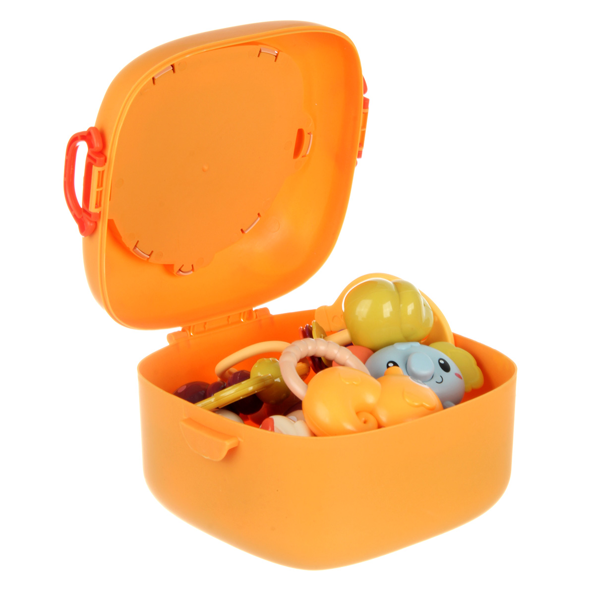 Большой набор красивых погремушек с подвижными деталями. Игрушки для новорожденных с элементами прорезывателями, удобные для хвата ручки погремушек, комфортно держать, округлые формы, безопасно для ребенка. Набор погремушек для новорожденных выполнен в ярких цветах и разнообразных формах, привлекающих внимание. Все игрушки помещаются в миниатюрный чемоданчик с ручкой, удобно переносить. Набор погремушек с прорезывателями для зубов для новорожденных изготовлен из безопасных и долговечных материалов, отличается хорошим качеством исполнения. Развивающие игрушки станут замечательным подарком мальчику, девочке.