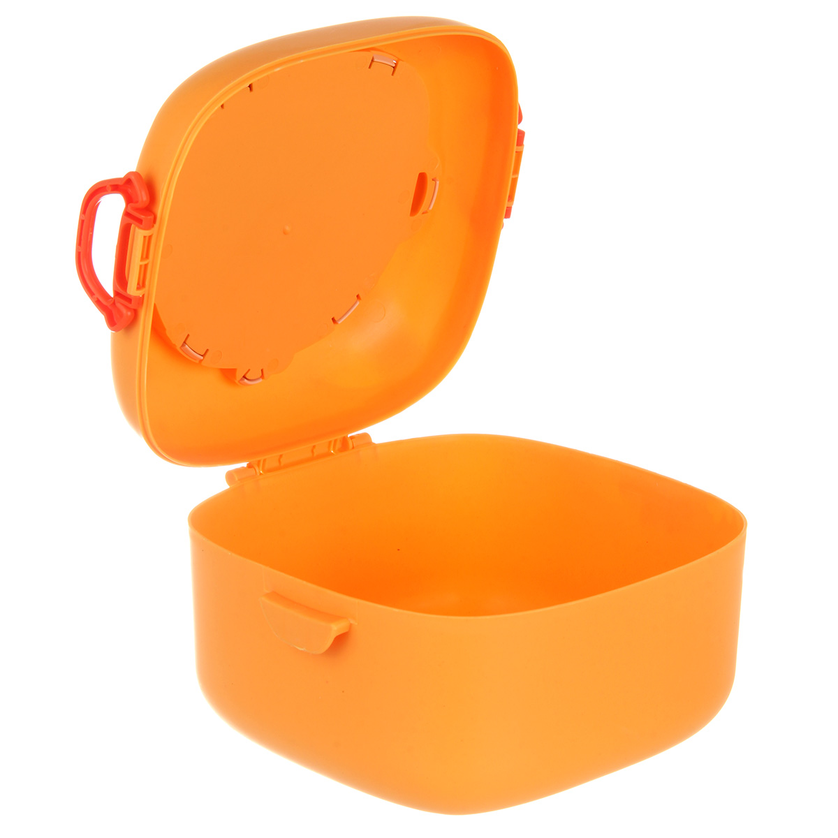Чемоданчик закрывается на защелки, есть ручка, удобно переносить.