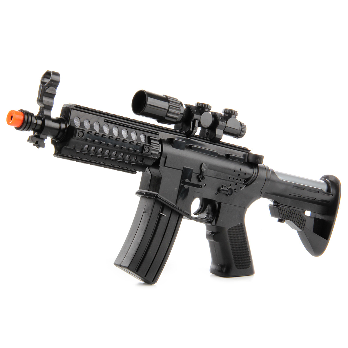 Если нажать на спусковой крючок автомата, он издаст звук выстрелов, ствол подсветится.