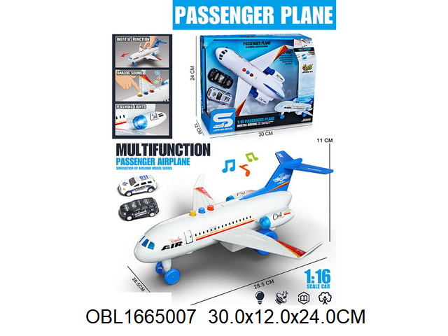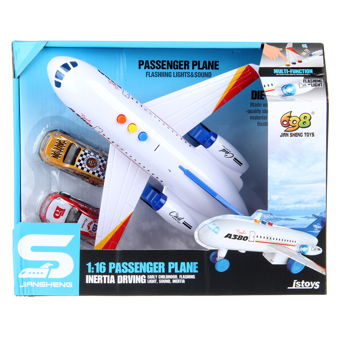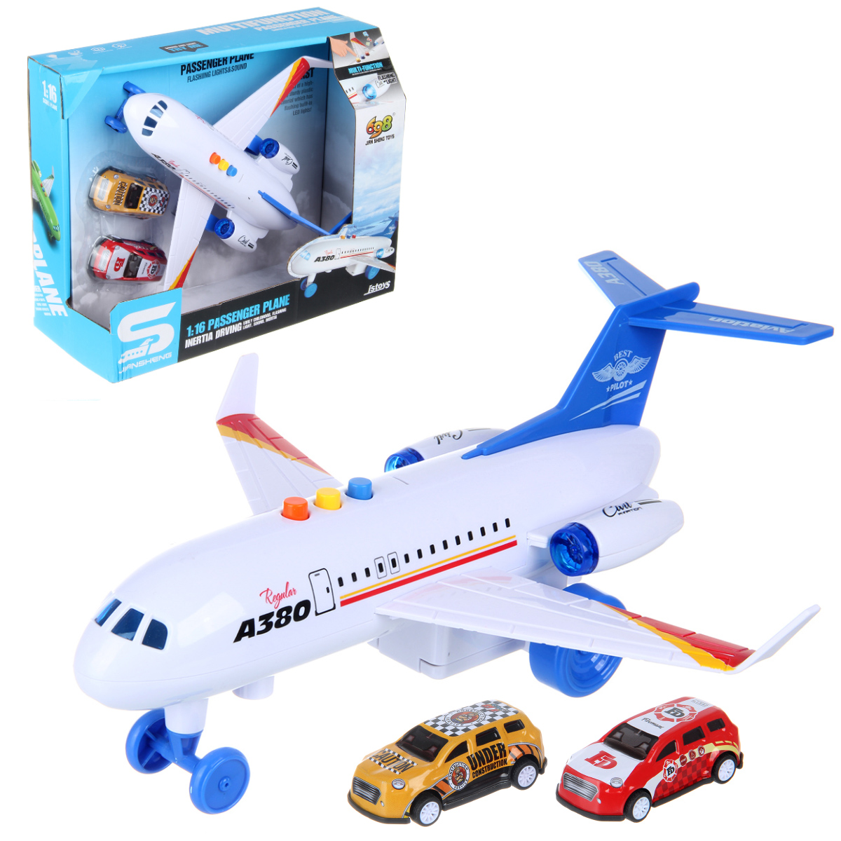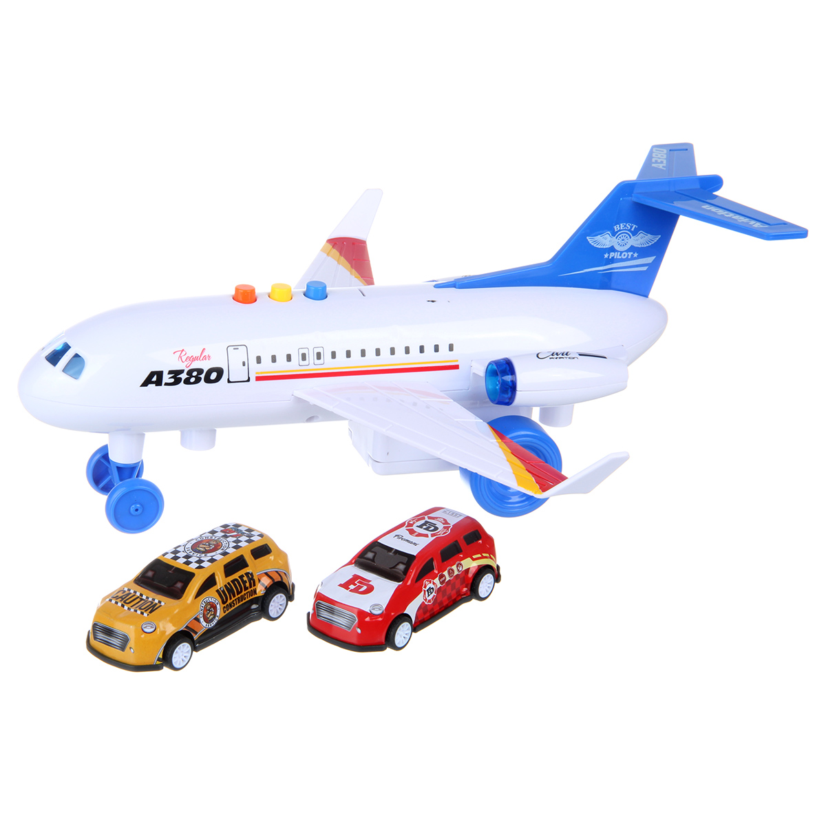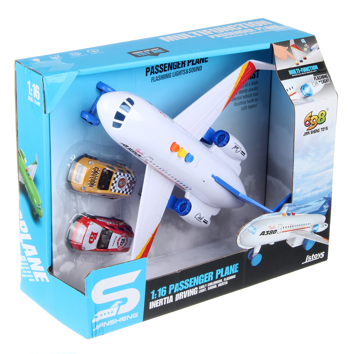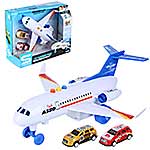 Большой игрушечный самолет с набором металлических машинок, это роскошное дополнение авиапарка ребенка. Самолет на батарейках издает звуки сирен, катается вперед и назад, имеет эффектную подсветку кабины. Инерционные машинки в комплекте в миниатюрном размере.