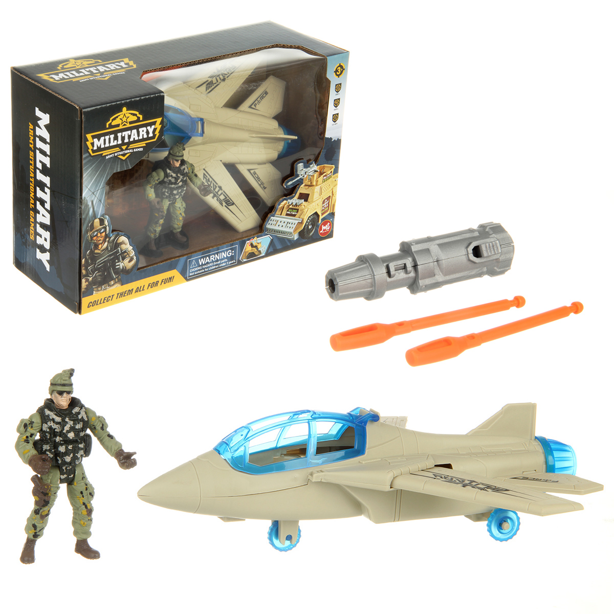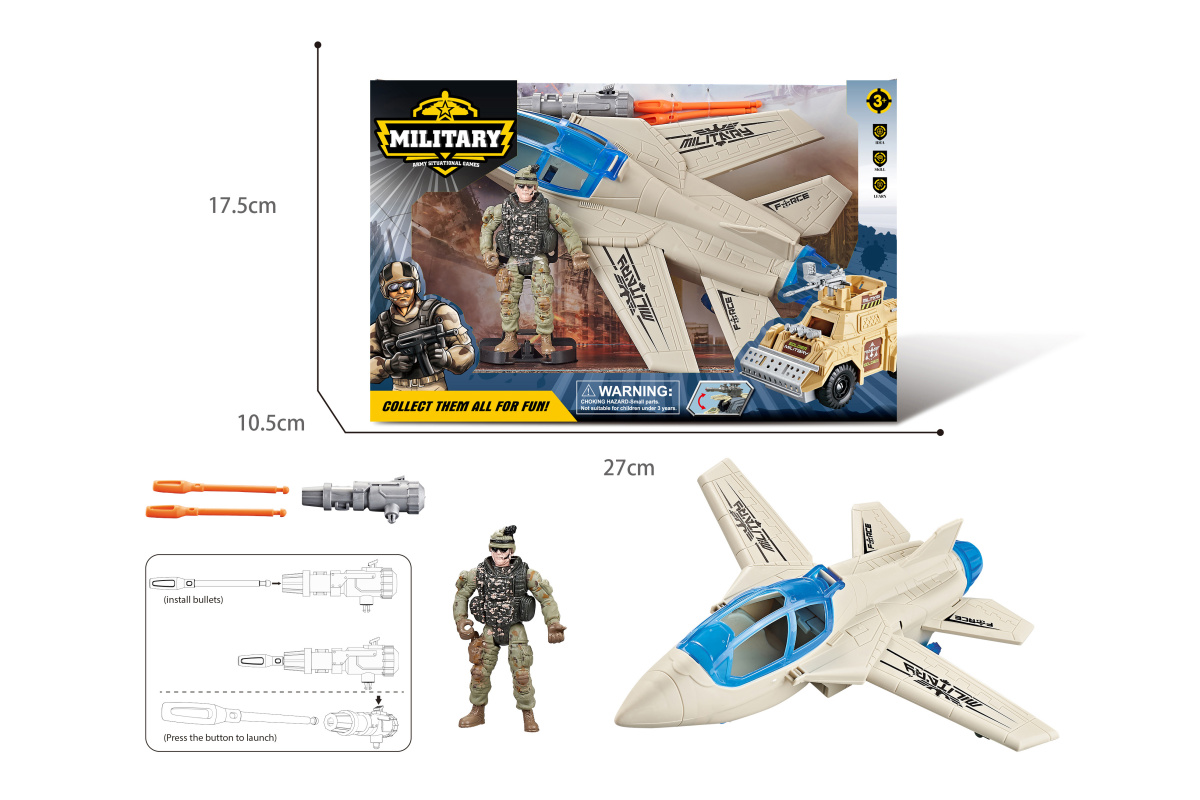 В комплекте солдат, самолет, пусковой механизм, 2 снаряда.
