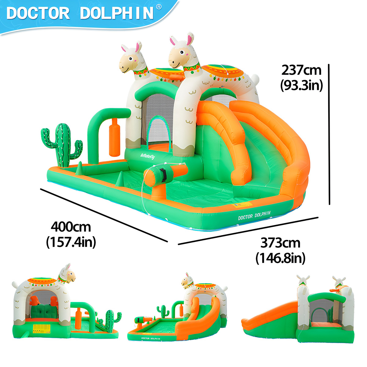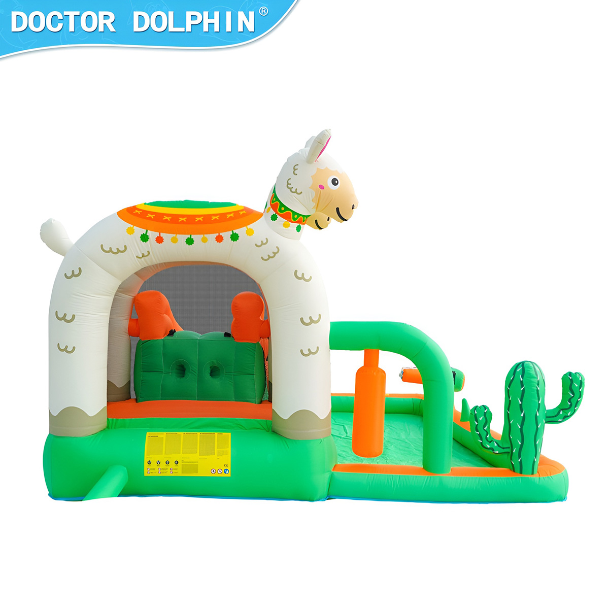 Надувной дом для детей имеет продуманную конструкцию, изготовлен из ткани Оксфорд 420D+840D, отличающейся износостойкостью, повышенной устойчивостью к разрыву, водонепроницаемостью.