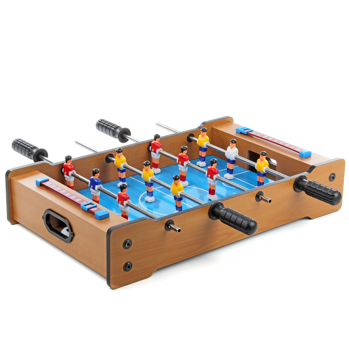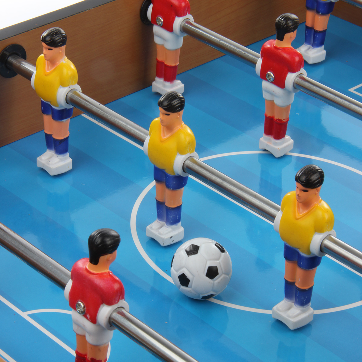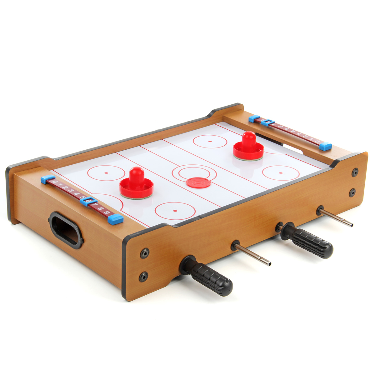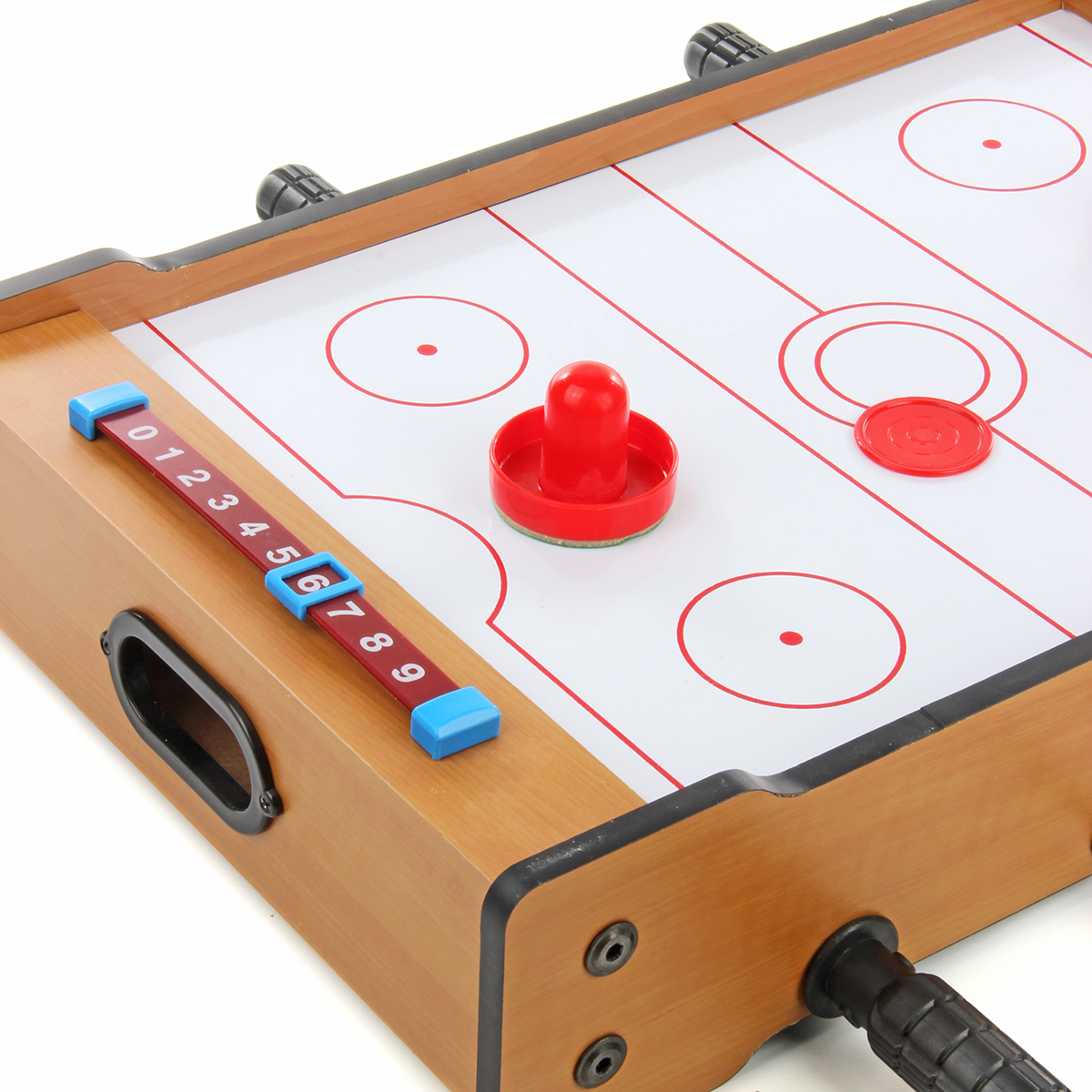 Набор 2 в 1 - настольный футбол и хоккей у вас дома! Такая увлекательнейшая игрушка соберет всю семью, вызвав нешуточные баталии за звание чемпиона. В комплект входят детали для сборки игрового поля, мягкие накладки, колпачки на ручки, диск, 2 мяча, 6-гранный ключ, 2 биты. Управляя фигурками игроков с помощью рукояток, нужно забить как можно больше голов в ворота соперника. Можно вести счет, передвигая бегунки на бортах игрового поля. Благодаря такой игрушке ребенок будет с удовольствием развивать мелкую и крупную моторику, скорость реакции, внимание, зрительное восприятие, глазомер. Набор станет прекрасным подарком для всех любителей активного досуга. Обязательно порадуйте ребенка этой потрясающей игрушкой. Игрушка изготовлена из дерева, металла и полимерного материала. Размеры собранной игровой площадки с учетом ручек: 52*49*11 см. Размеры фигурки игрока: 3*8 см. Диаметр мяча: 3 см. Диаметр диска: 4 см. Размеры биты: 5*4 см. Размеры коробки: 52*7*32 см.