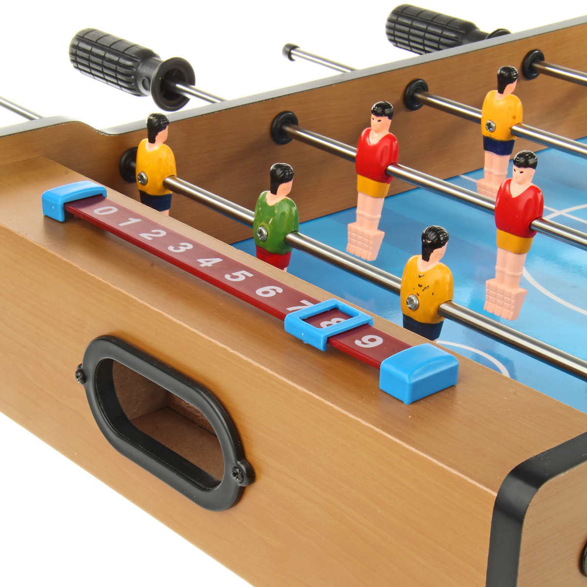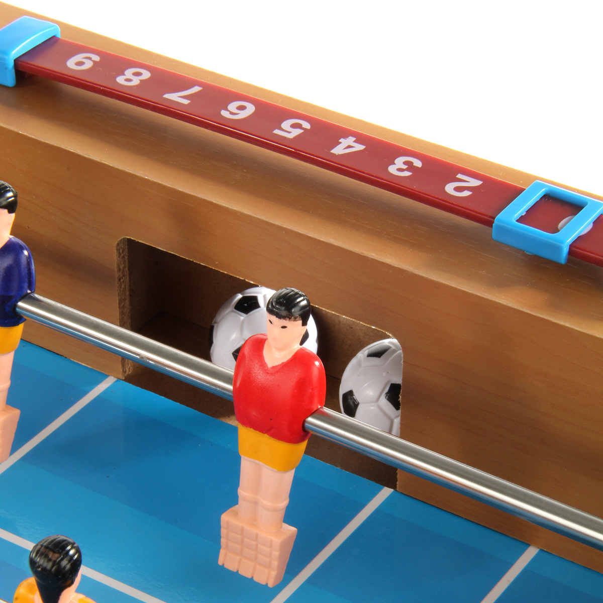 Мягкие накладки позволяют не биться фигурке игрока об бортики, тем самым продлевая срок эксплуатации игрушки. Передвигаем бегунки, ведем счет.