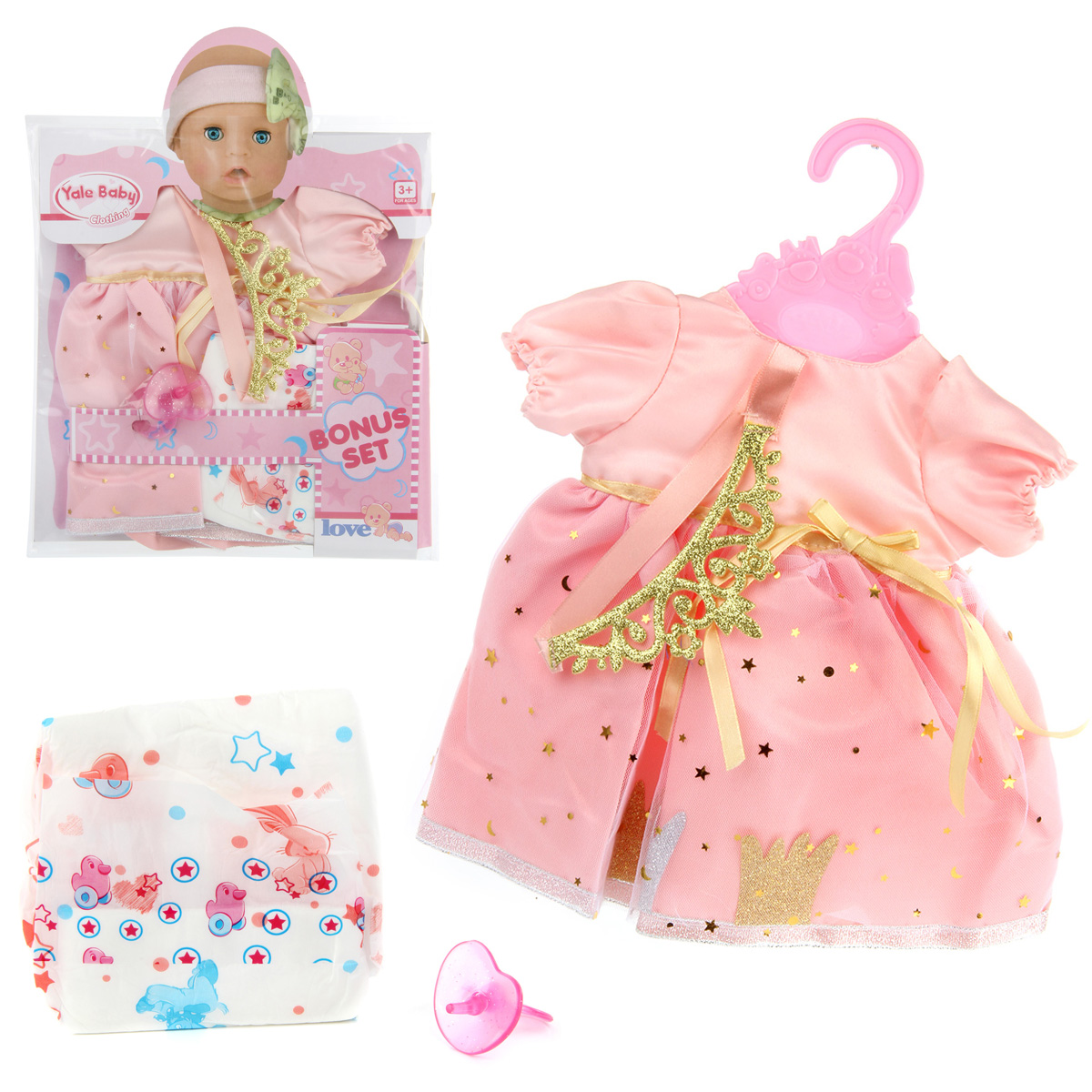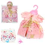Куколки и пупсики тоже любят наряжаться. Этот набор оценит по достоинству каждый пупс. В комплект входят платье, повязка, соска и памперс. Платье на липучке, расстегивается, рукава платья на резиночках, растягиваются, памперс на липучках. Одежда оформлена в приятной и нежной расцветке, стильном дизайне, сделана из качественных материалов. Забота о пупсике учит малышку ответственности, улучшает коммуникативные и социальные навыки. Одежда изготовлена из текстильных материалов, есть полимерные элементы, упакована в пакет. Размеры платья: 28*1*23 см. Размеры соски: 4*3,5*5,5 см. Размеры набора в упаковке: 23*2*31 см.