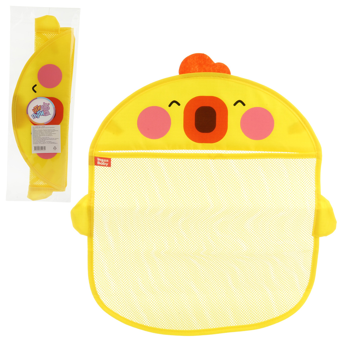 В комплекте органайзер, 2 присоски. На задней стороне органайзера есть петельки, присоски крепятся к поверхностям. Присоски позволяют легко и быстро закрепить органайзер на стене, после снятия присоски не оставляют следов. Благодаря вставке сетке можно видеть, что находится внутри корзины. Сеточный материал обеспечивает хорошую вентиляцию воздуха, игрушки быстро высыхают. Органайзер для хранения вещей в качественном исполнении, прост в уходе, можно стирать. Милый дизайн корзины обязательно привлечет внимание ребенка, делая процесс сбора игрушек не рутинным занятием, а интересным квестом. Настенный органайзер поможет в организации пространства и соблюдении порядка.