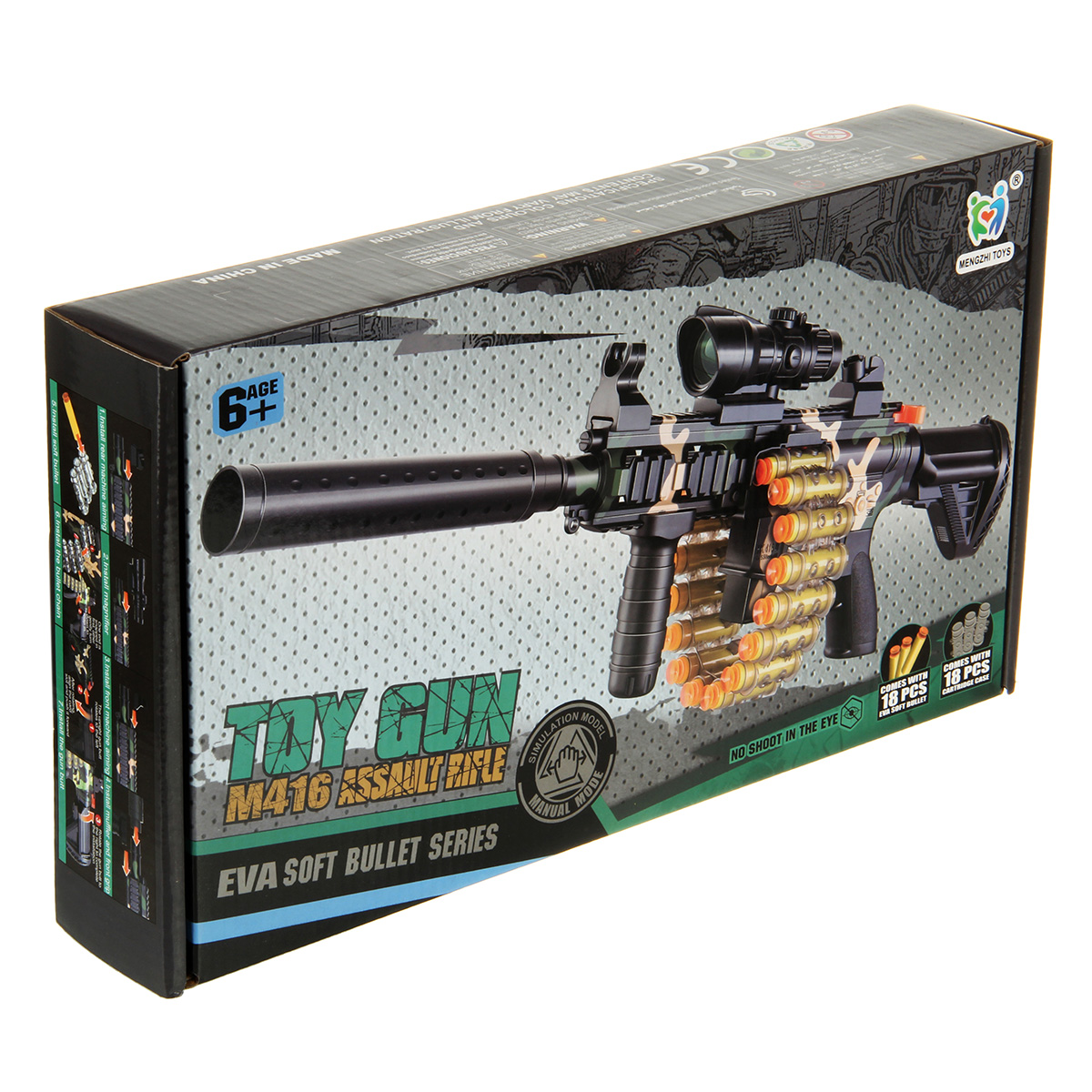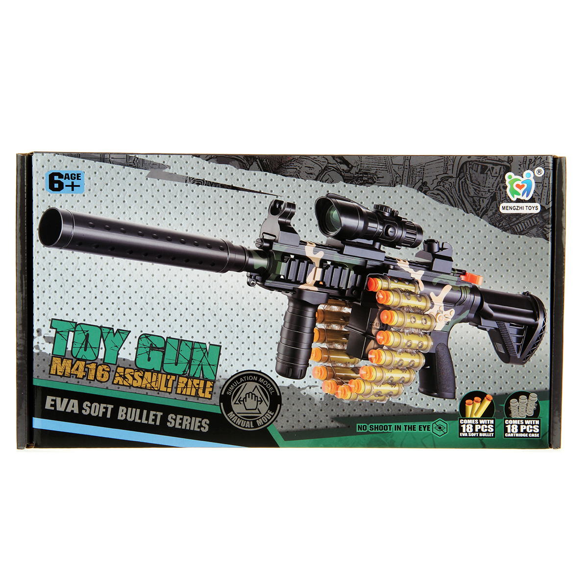 Игрушечное оружие с мягкими пулями для увлекательных сюжетных игр.