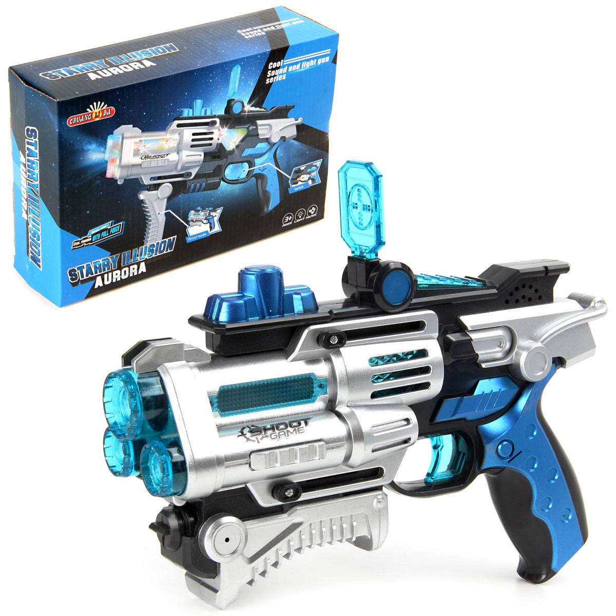 Ни одна игра в войнушку или секретных шпионов не обойдется без этого стильного и очень крутого оружия! Автомат издает звуки, его дуло подсвечивается разными цветами, в темноте он способен заменить фонарик, настолько ярко он светит! У игрушки выдвигается оптический прицел, а если отодвинуть складную рукоять под стволом, оружие может перейти в режим пистолета. Тогда игрушка сама передернет затвор. Автомат можно поставить на ровную поверхность, не боясь, что он упадет. Игрушка развивает меткость, ловкость, внимание, воображение, предрасполагает к сюжетно-ролевым играм, улучшает координацию движений. С ней можно развивать не только физические данные ребенка, но и учить его тактике, стратегии и хитрости. Игрушка сделана из прочной и высококачественной пластмассы. Работает от 3 батареек АА, в комплект не входят. Размеры игрушки: 24*6*19,5 см. Размеры коробки: 24,5*7*16 см.