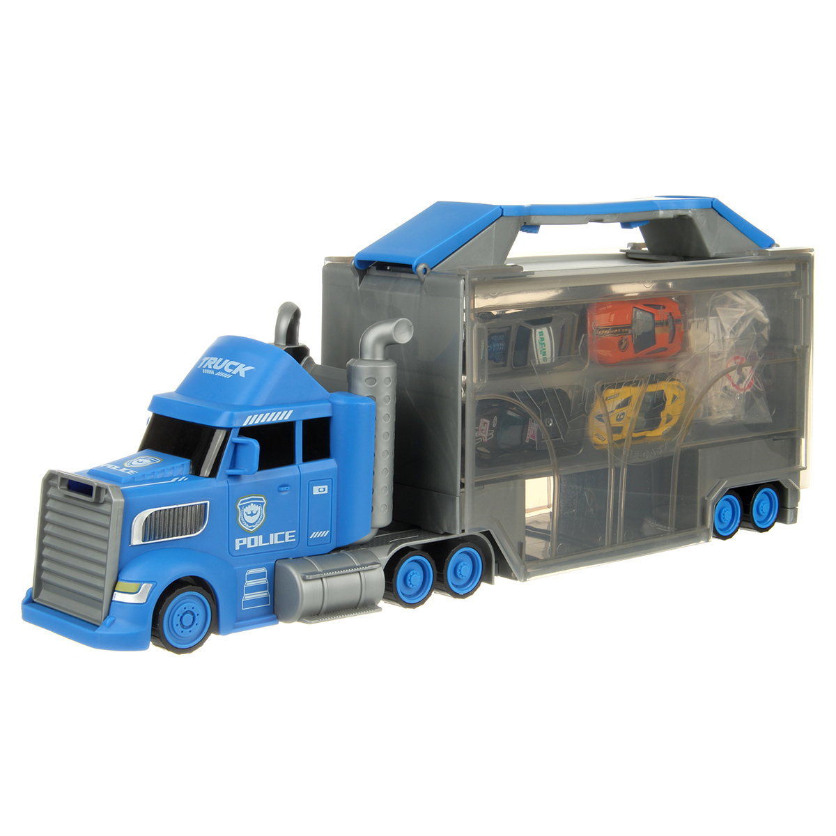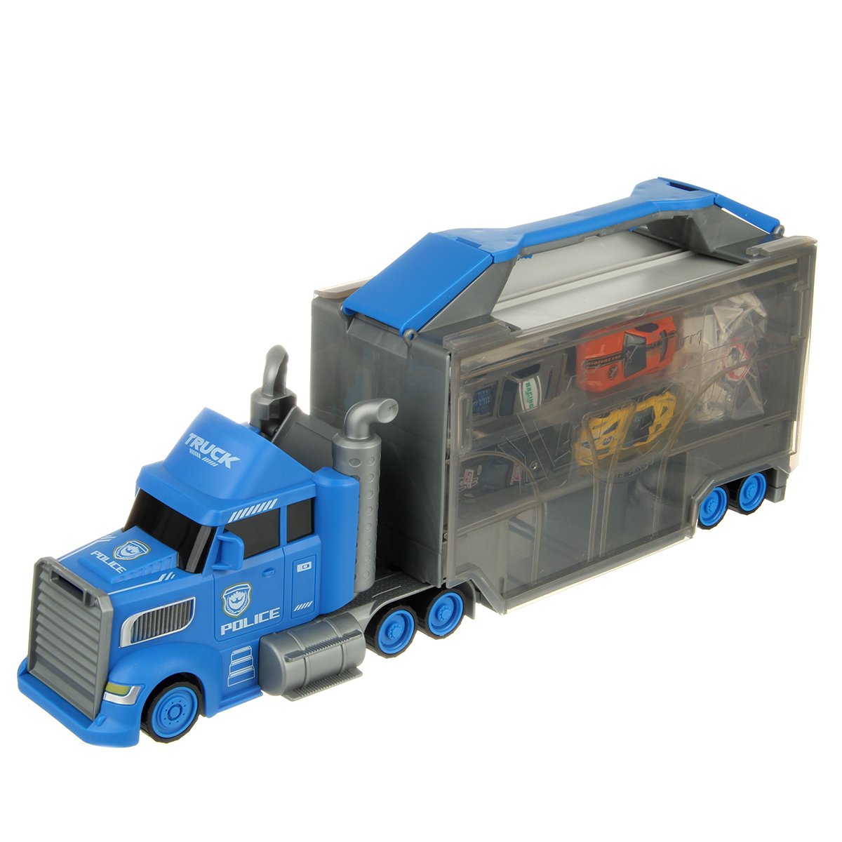 В игрушечный автовоз можно поместить машинки и использовать в качестве места для хранения, у автовоза есть ручка, удобное переносное хранилище, игрушечные металлические машинки в комплекте.