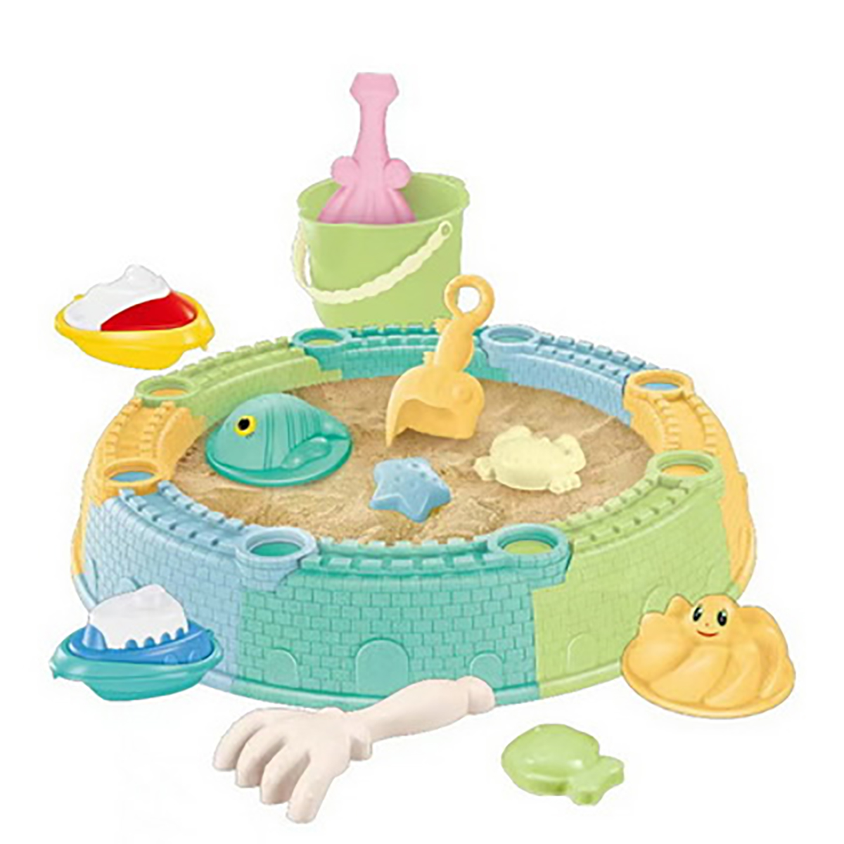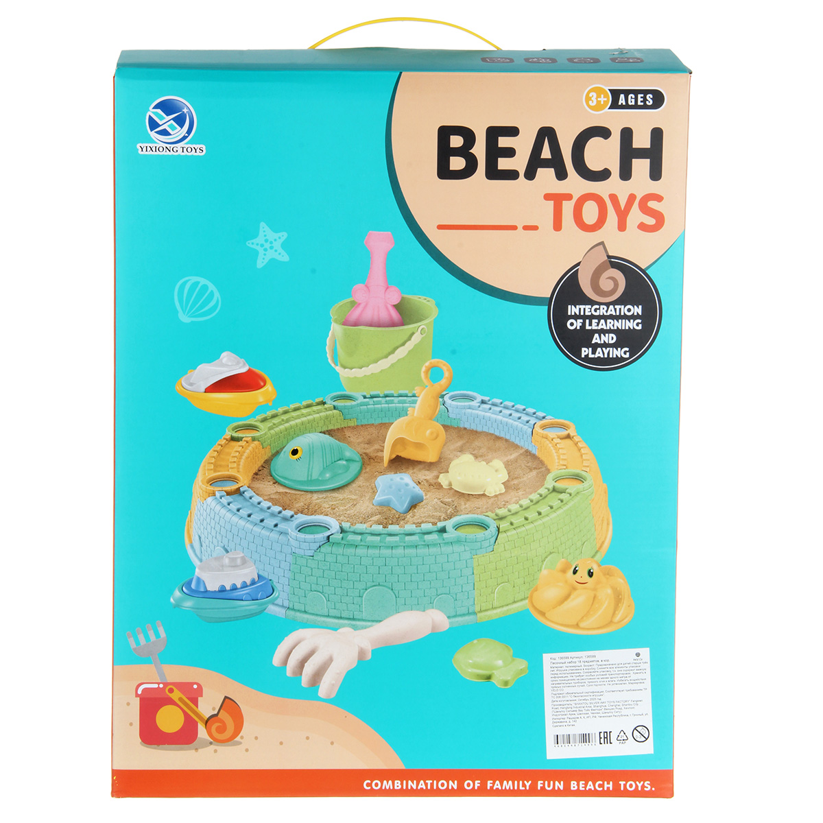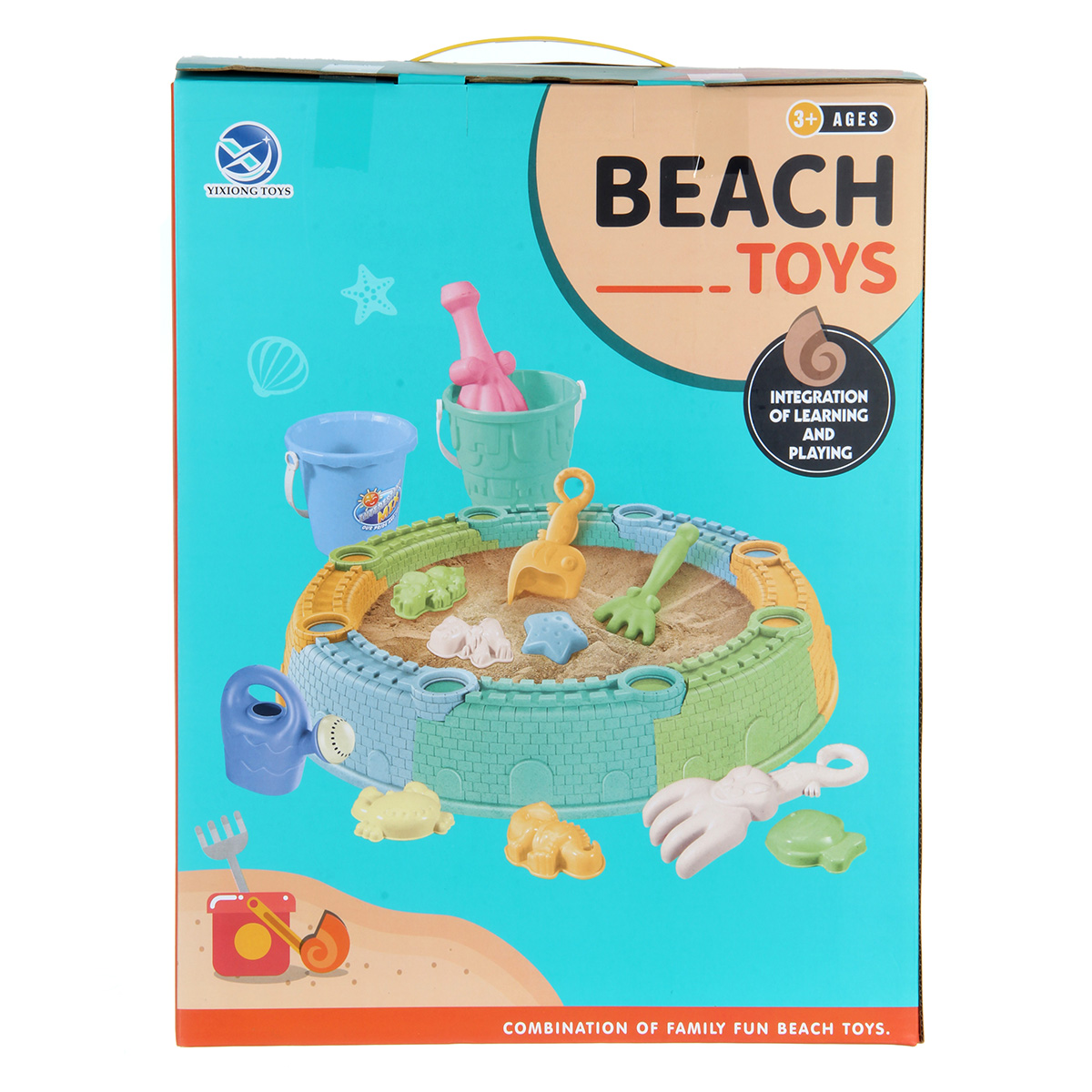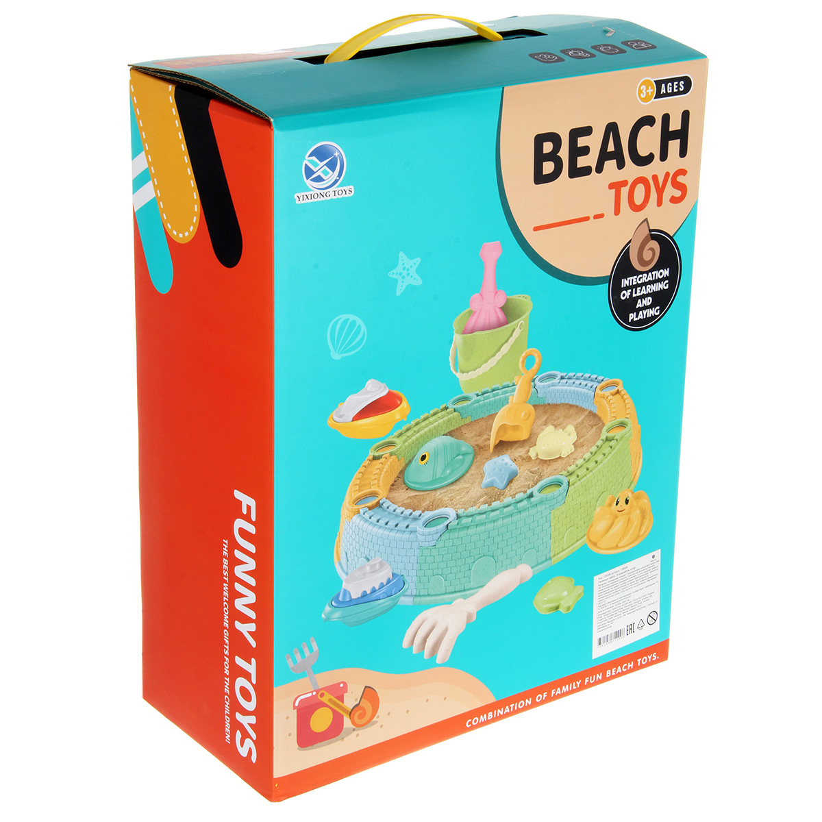 Детский песочный набор со множеством аксессуаров. Закругленные углы, безопасно для ребёнка. Внутрь конструкции можно засыпать песок и играть с ним. Игрушечные формочки подойдут для лепки фигурок из песка. Песочница собирается и разбирается, можно с каждым элементом играть по отдельности. Изготовлена из прочных и долговечных материалов. Игровой набор оформлен в яркой расцветке.