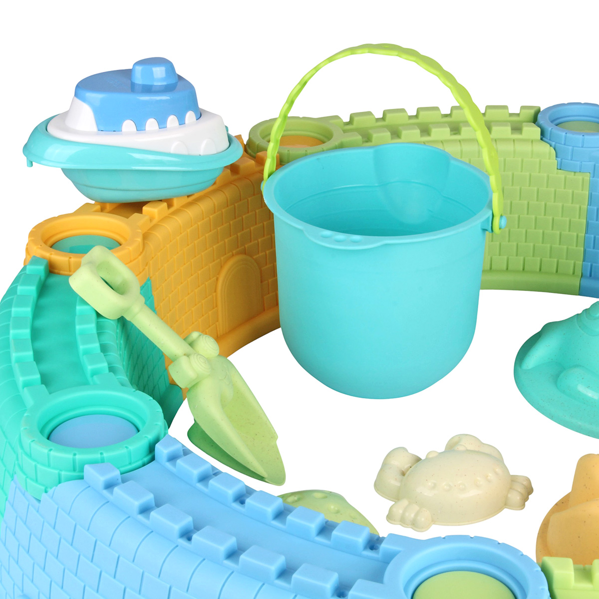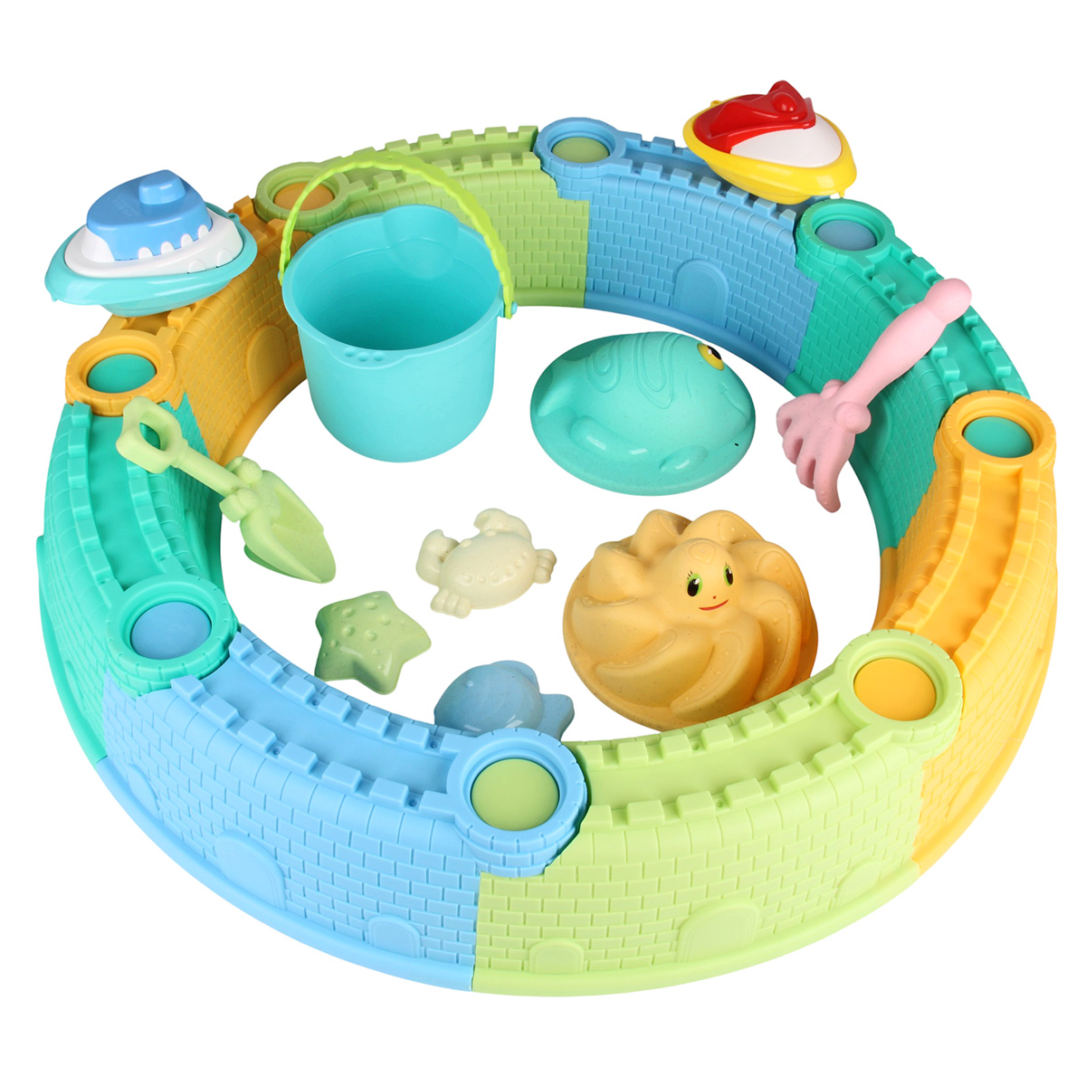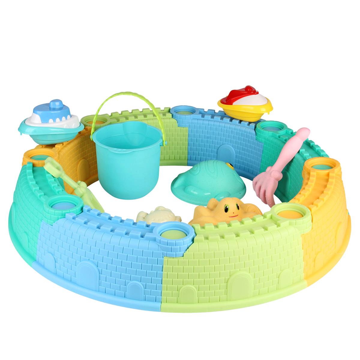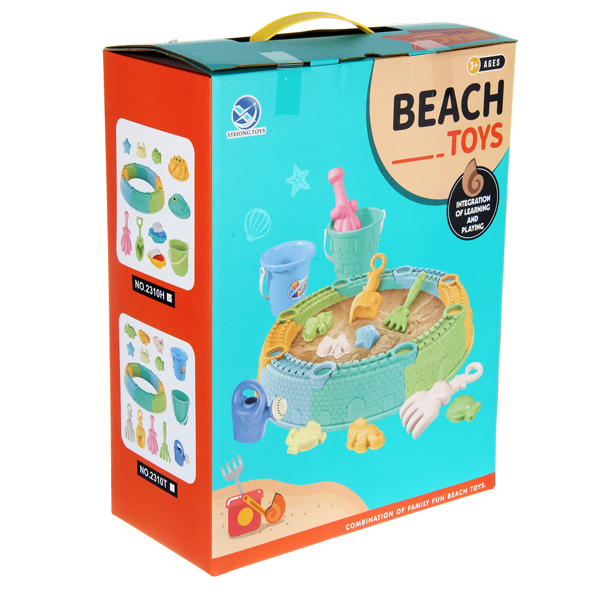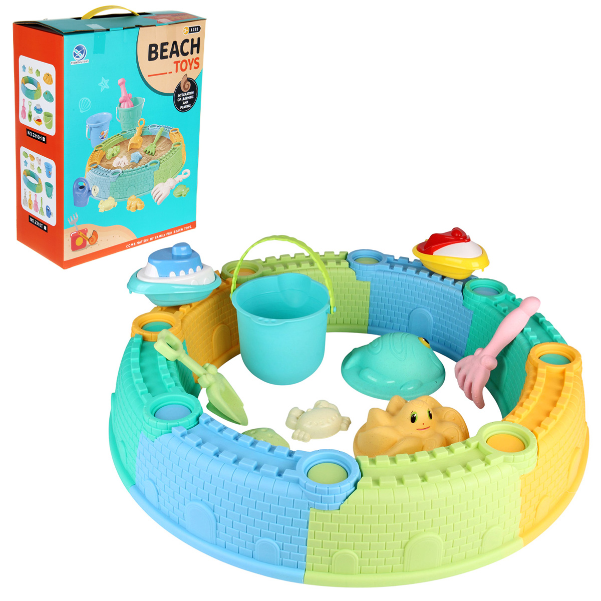 Детский песочный набор со множеством аксессуаров. Закругленные углы, безопасно для ребёнка. Внутрь конструкции можно засыпать песок и играть с ним. Игрушечные формочки подойдут для лепки фигурок из песка. Песочница собирается и разбирается, можно с каждым элементом играть по отдельности. Изготовлена из прочных и долговечных материалов. Игровой набор оформлен в яркой расцветке.