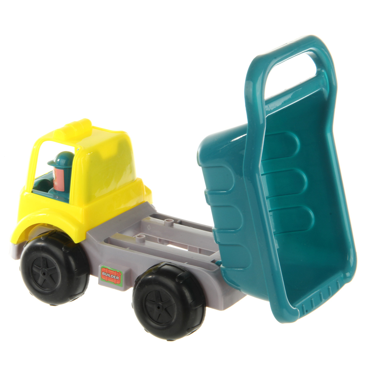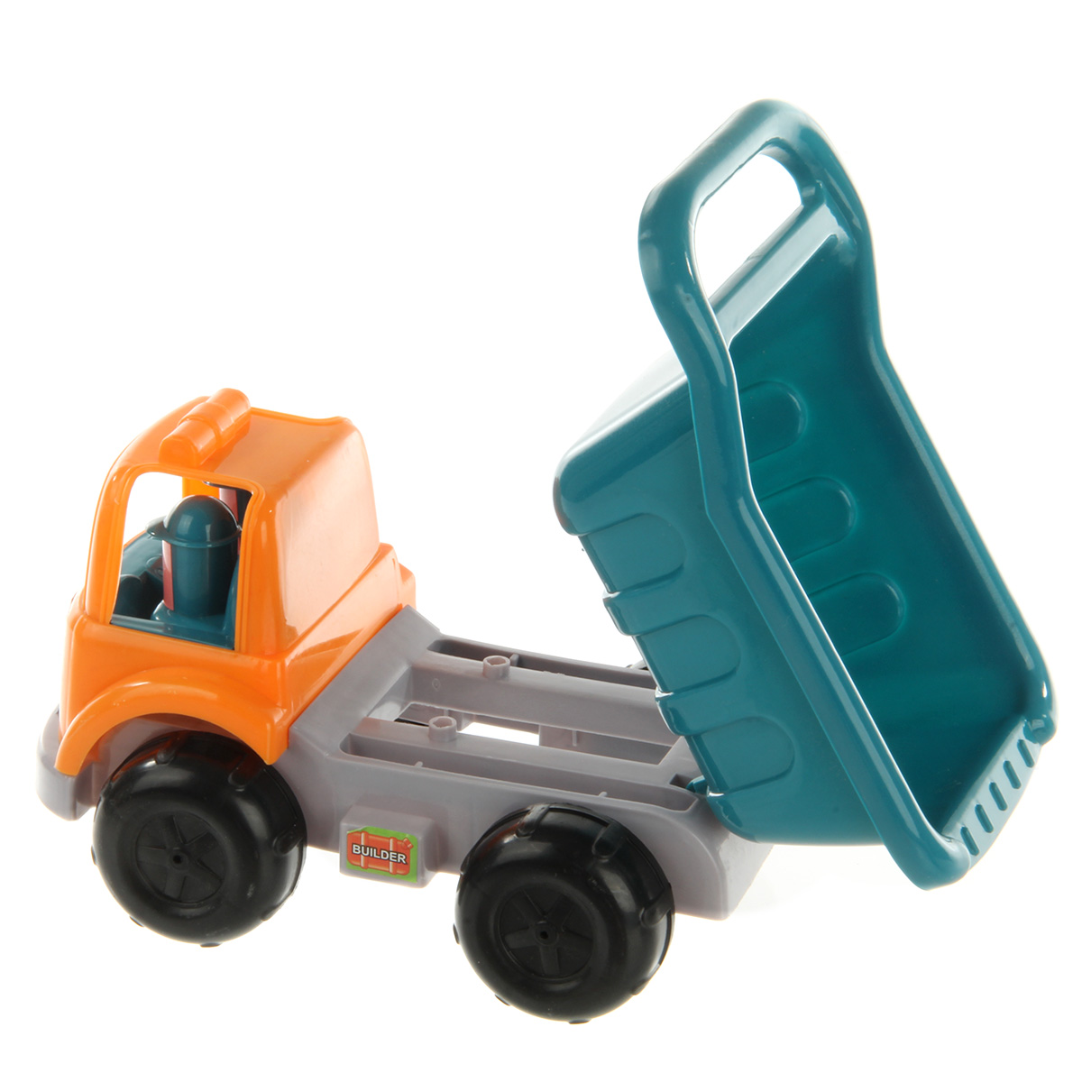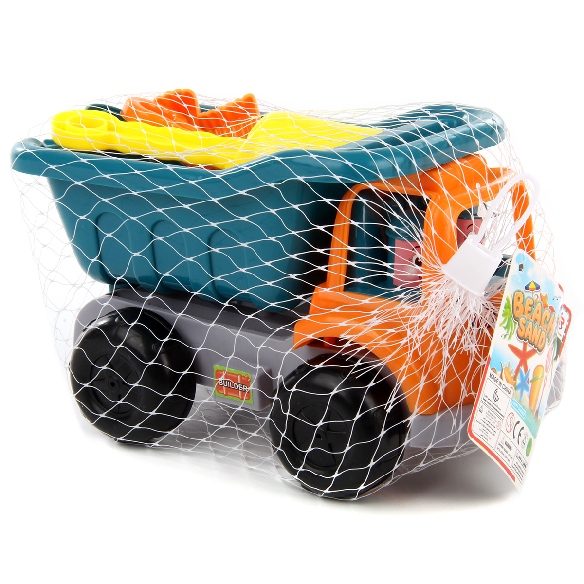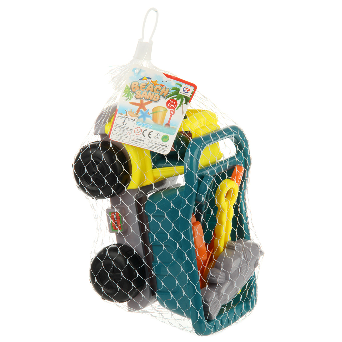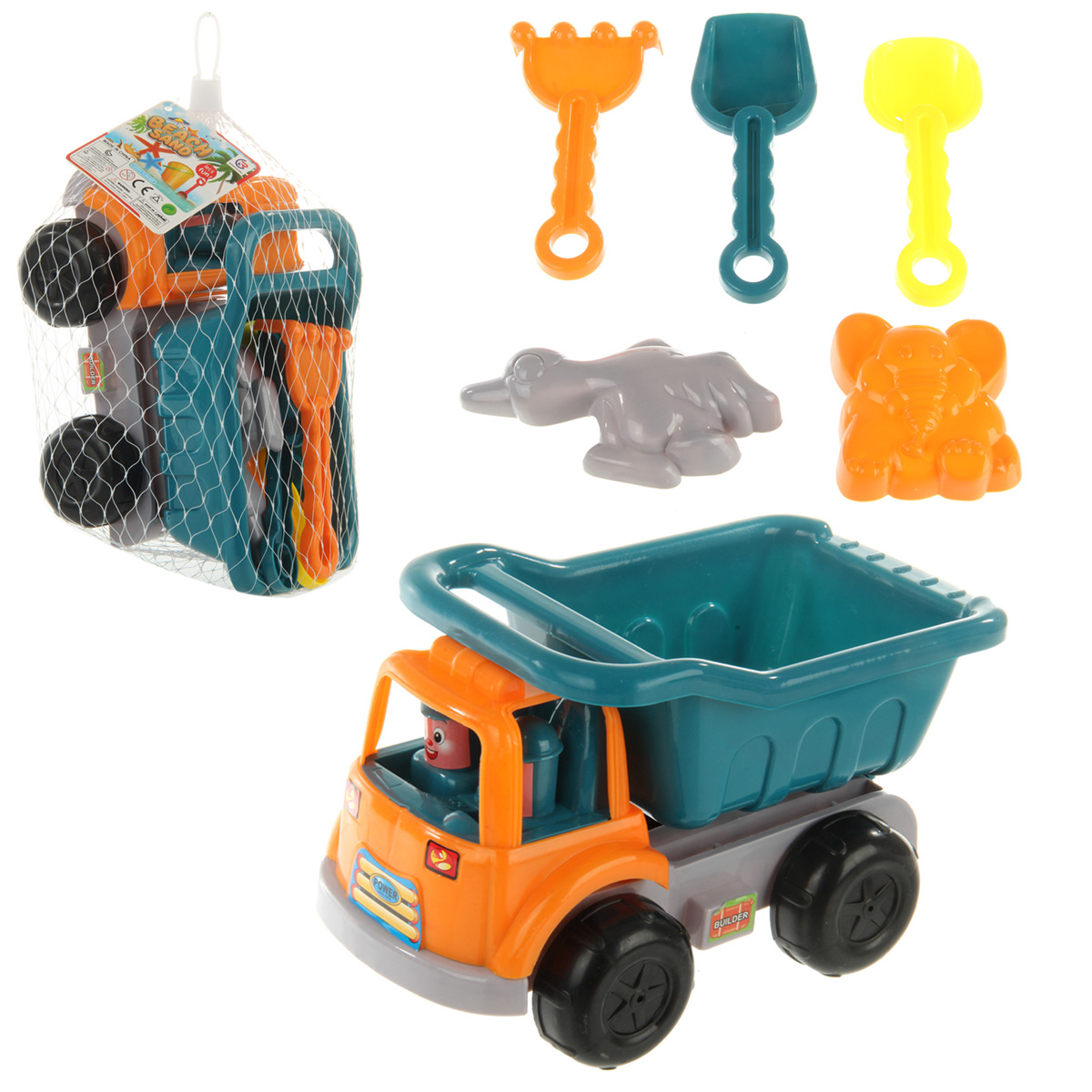Замечательный песочный набор для увлекательных сюжетно-ролевых игр. Отличный развивающий подарок для вашего ребёнка. В комплект входит машинка, 2 лопатки, грабли, 2 формочки. Функционал игрушки: -кузов машинки поднимается и опускается; -машинка двигается вперёд и назад. Размеры упаковки: 23*14*14 см. Размеры машинки: 23*14*14 см. Размеры лопатки: 14*5*3 см. Размеры формочки: 10*5*3 см. Изготовлено из пластика.
