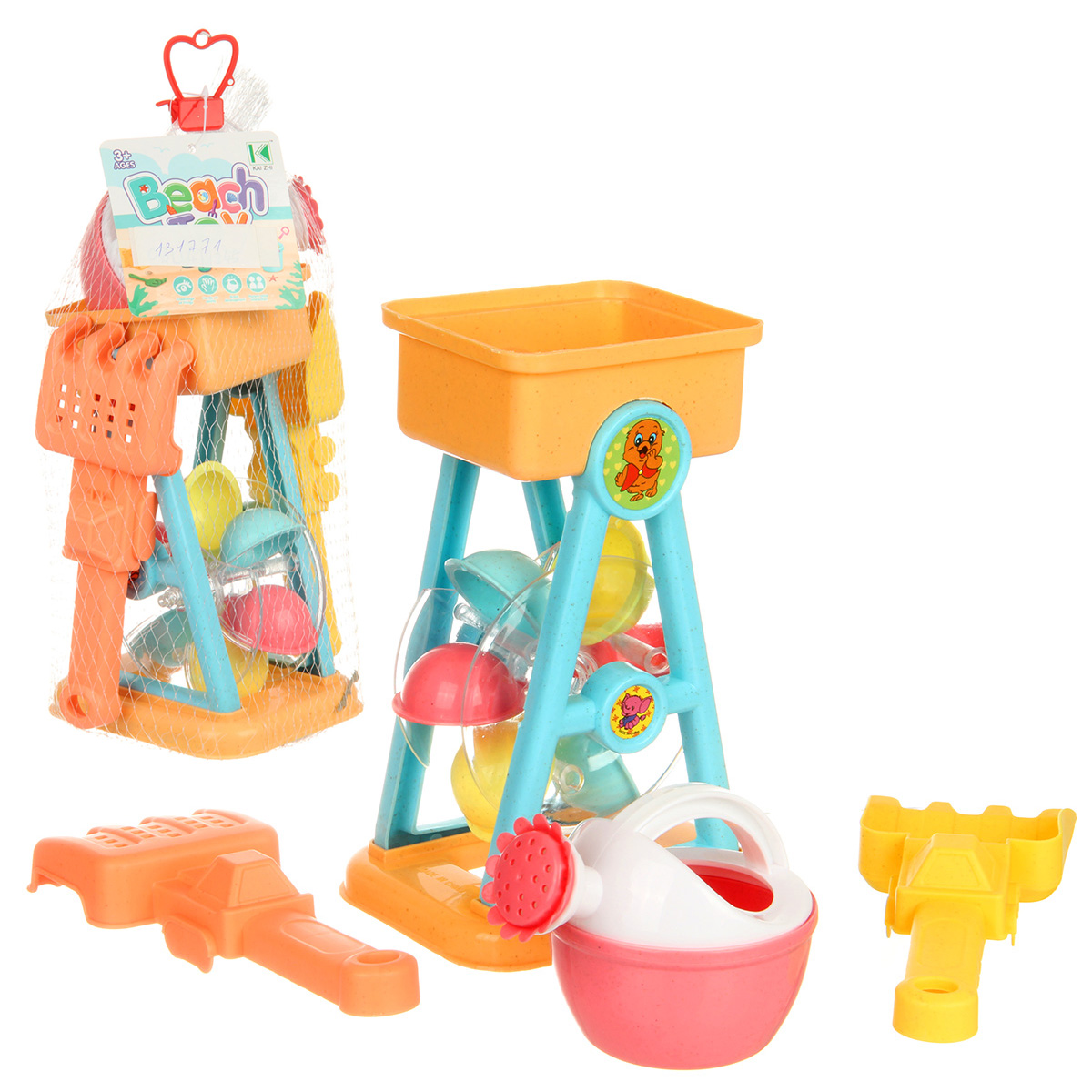 Несколько предметов в одном наборе, водяная мельница, грабли с совочком, лейка.
