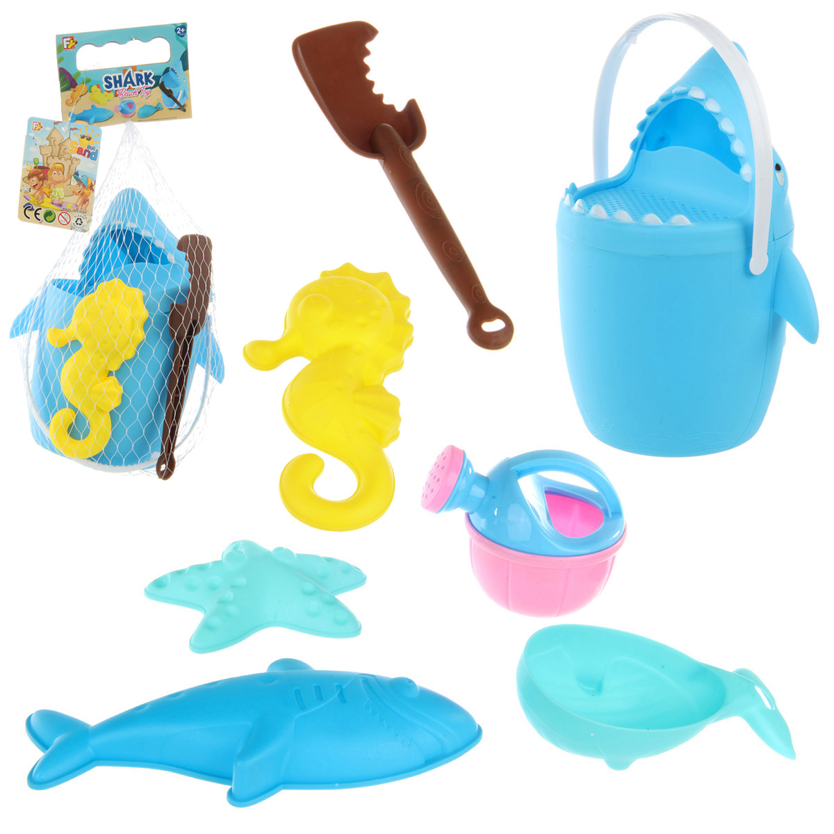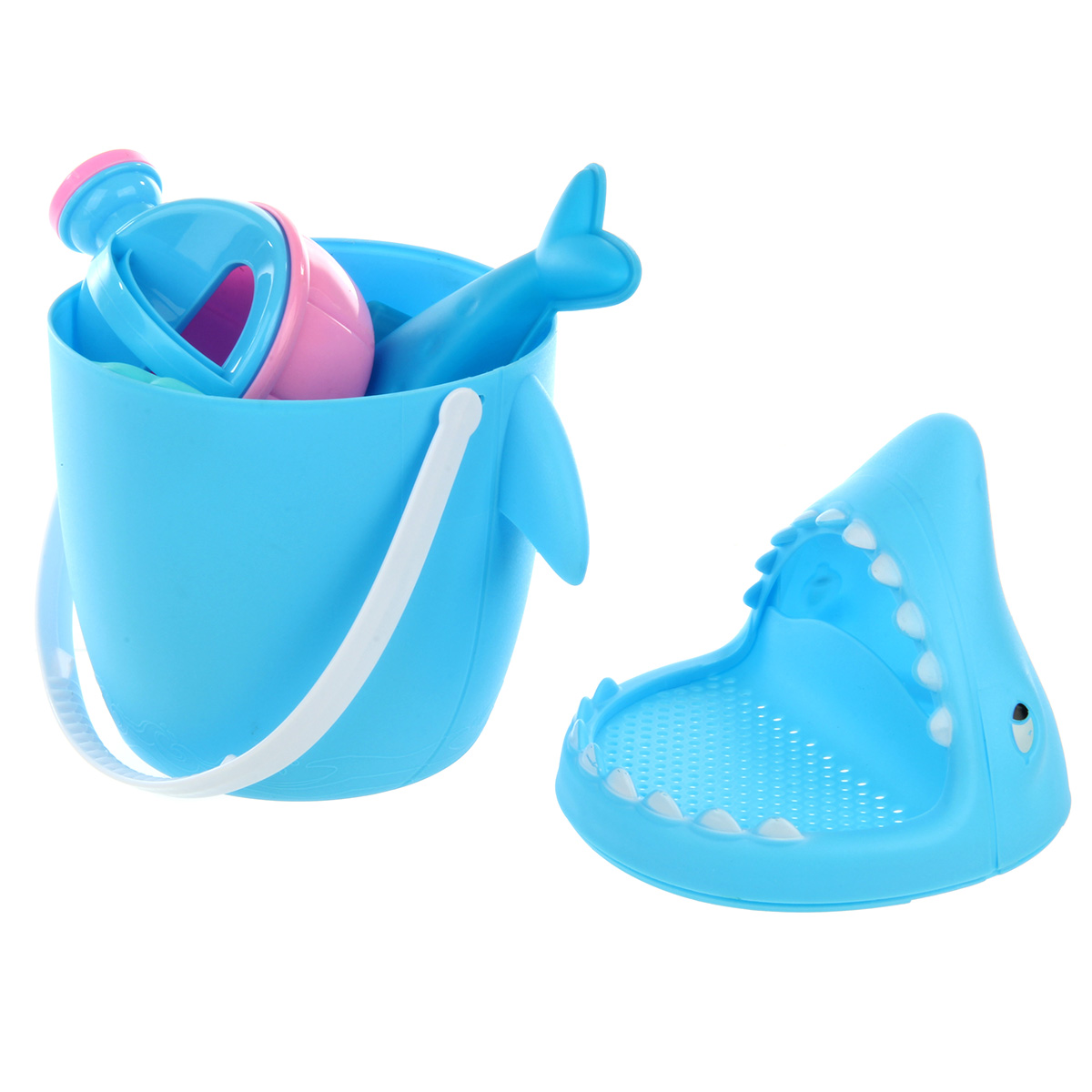 Песочный набор - замечательная летняя игрушка. Красивая расцветка, интересный дизайн, эргономичные формы. В комплект входят игрушка большая лейка-ведро, фигурки для лепки куличиков, маленькая лейка и игрушка совочек. Удобная система хранения - все предметы можно положить в большую лейку, крышка снимается. Есть ручка, комфортно переносить. Детский набор для игр с песком и водой. Материал: полимер. Размеры формочки-акулы: 21*3*10 см. Размеры маленькой лейки: 11*8*8 см. Размеры совочка: 5*1*20 см. Размеры большой лейки: 19*18*25 см. Размеры в упаковке: 19*18*26 см.