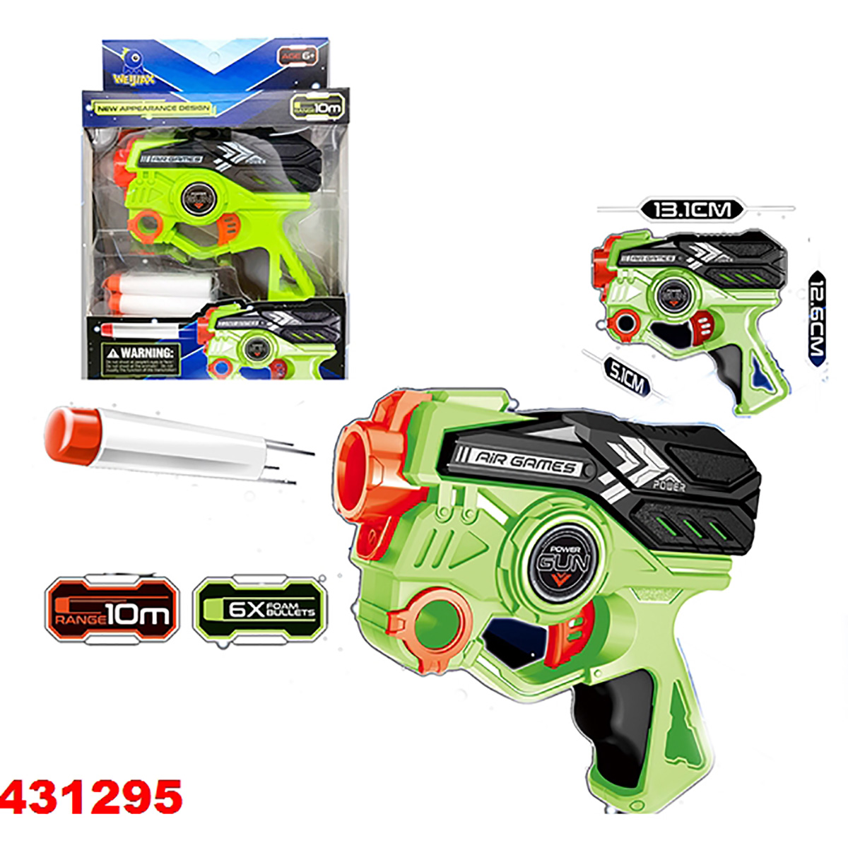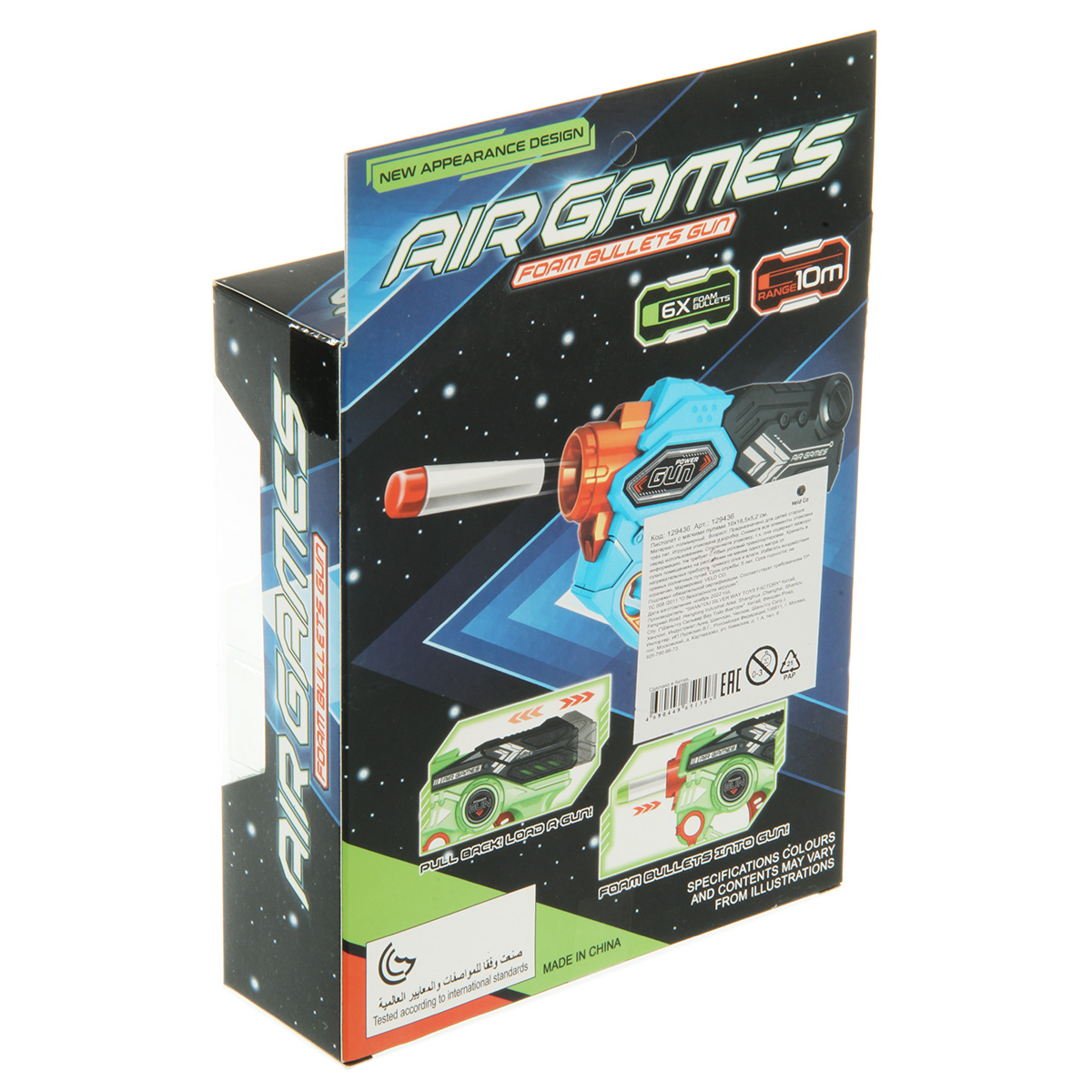 В комплекте пистолет, 6 мягких патронов.