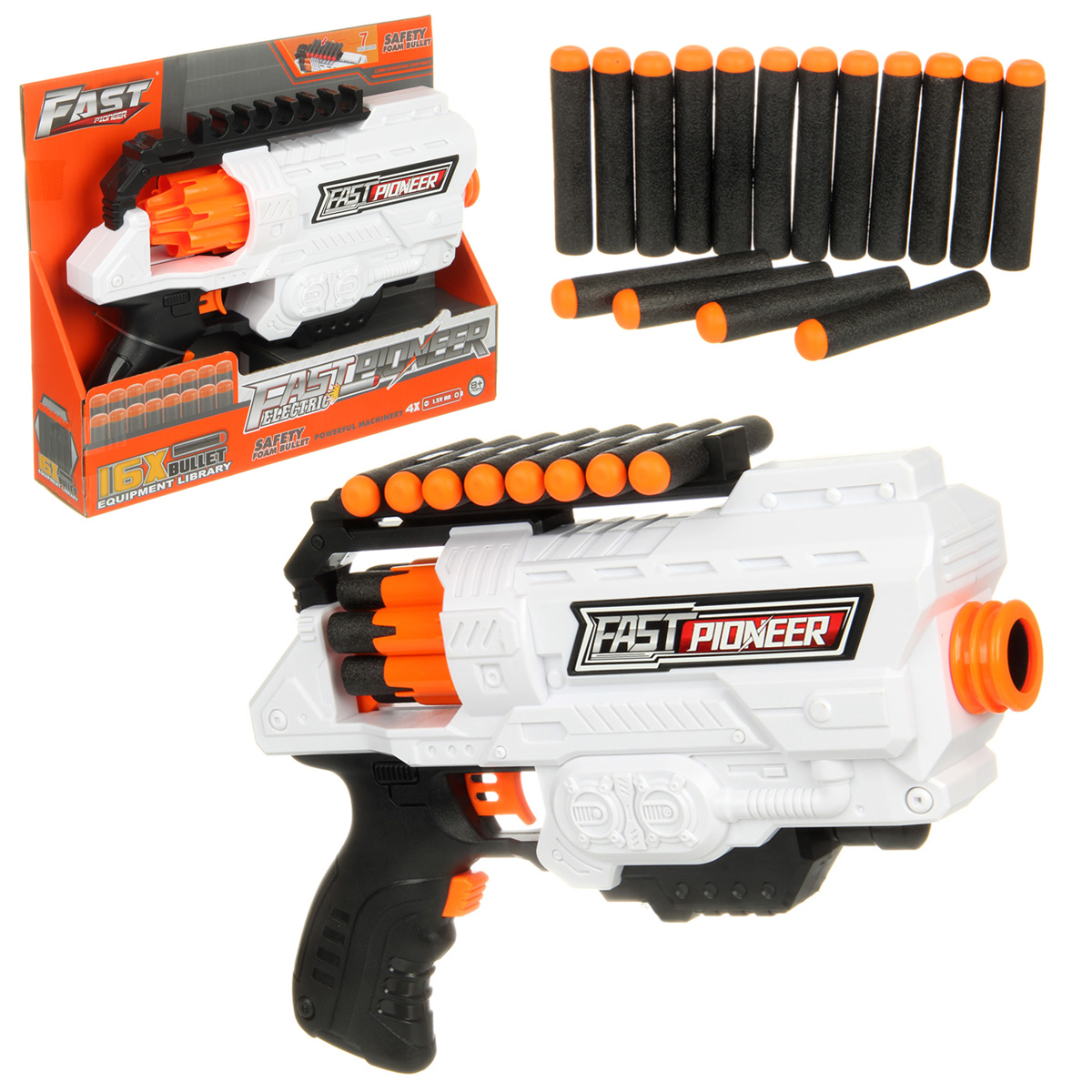 В комплекте автомат, 16 мягких патронов.