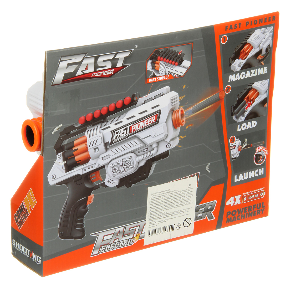 Игрушечное оружие работает от 4 батареек АА, не входят в комплект.