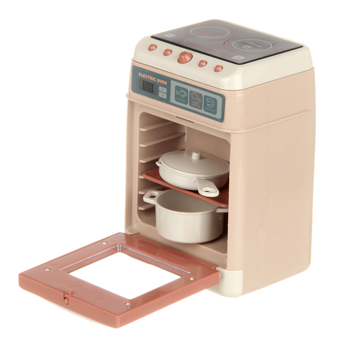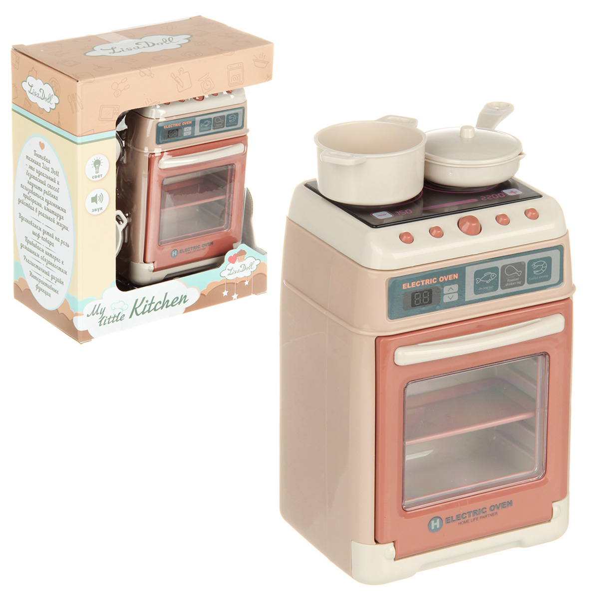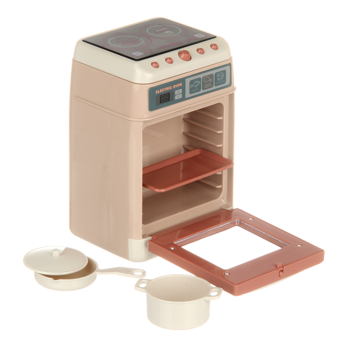 Игрушечная плита на батарейках выполнена в реалистичном дизайне, красивой расцветке.