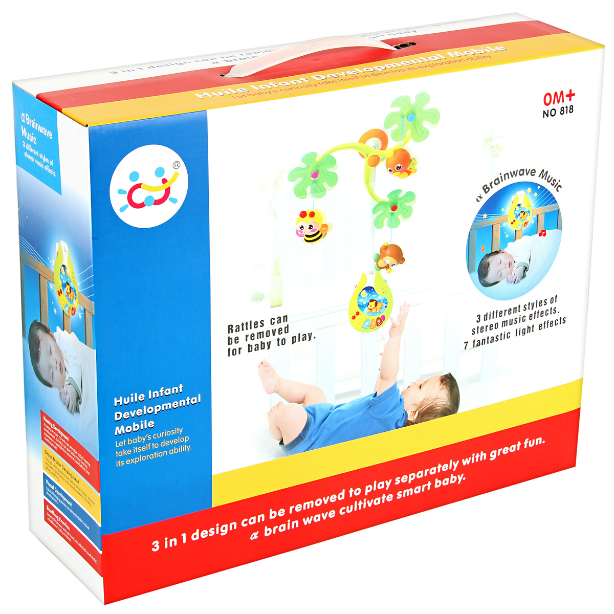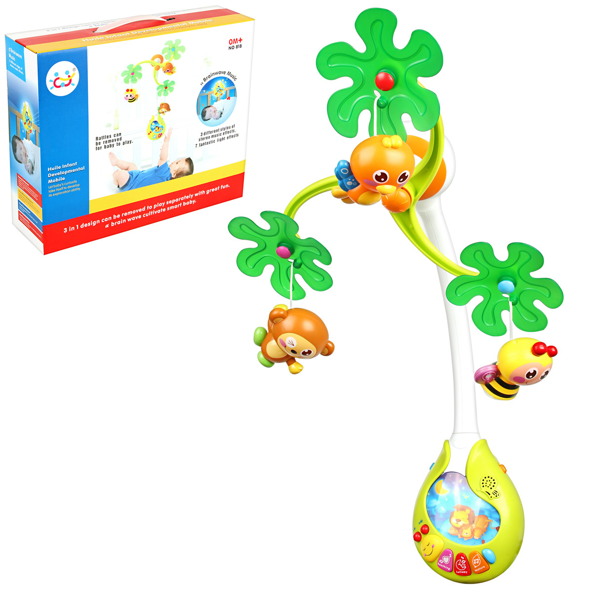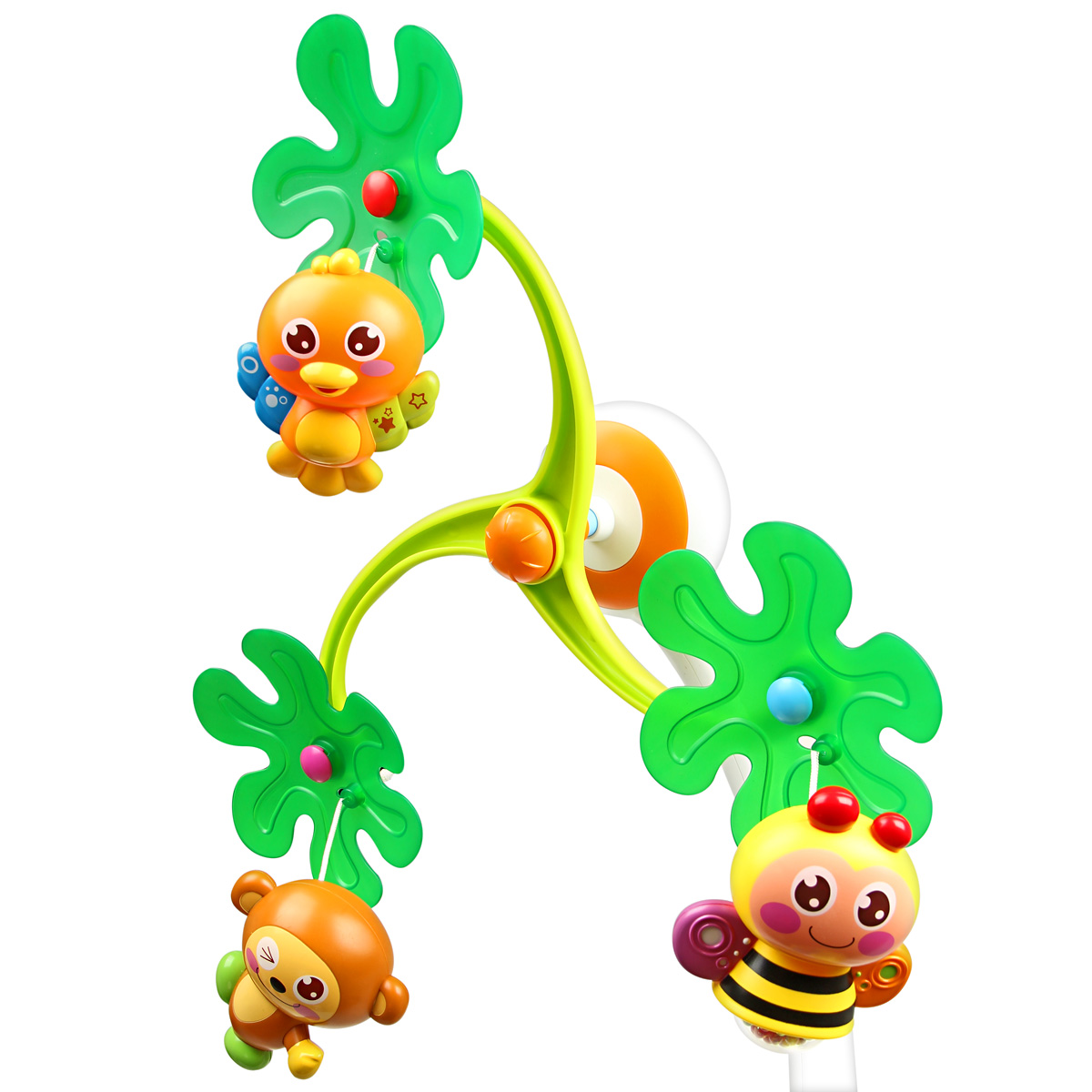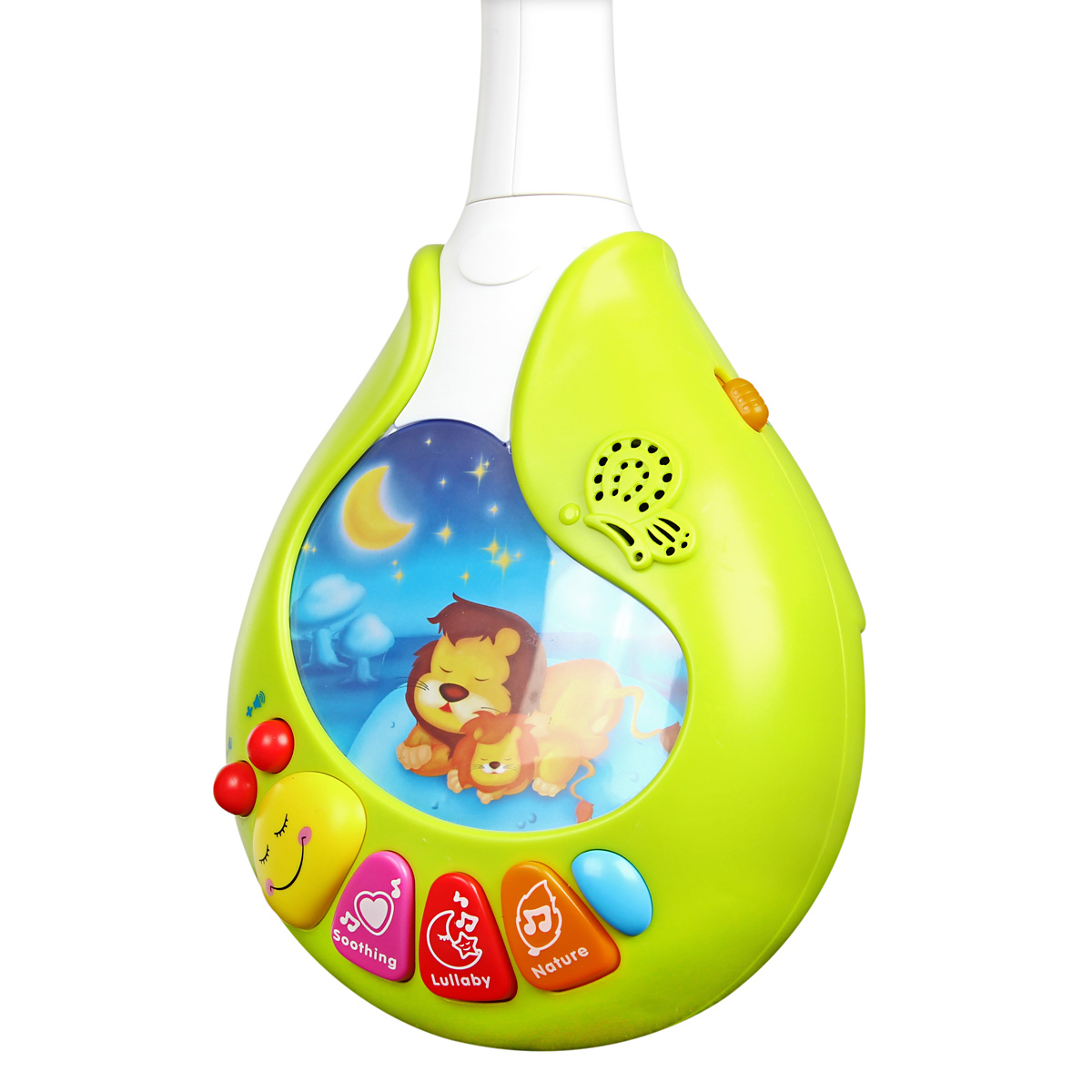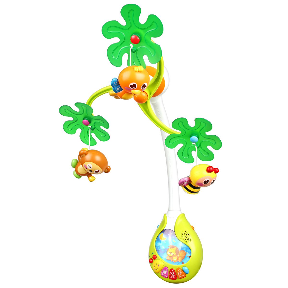 Музыкальная подвеска, 42 см. Работает от 4-х батареек АА (в комплект не входят). 3 режима: звук+свет, звук+движение, звук+свет+движение. Есть звуки природы, 13 песен. Упаковка - красочная коробка с ручкой.