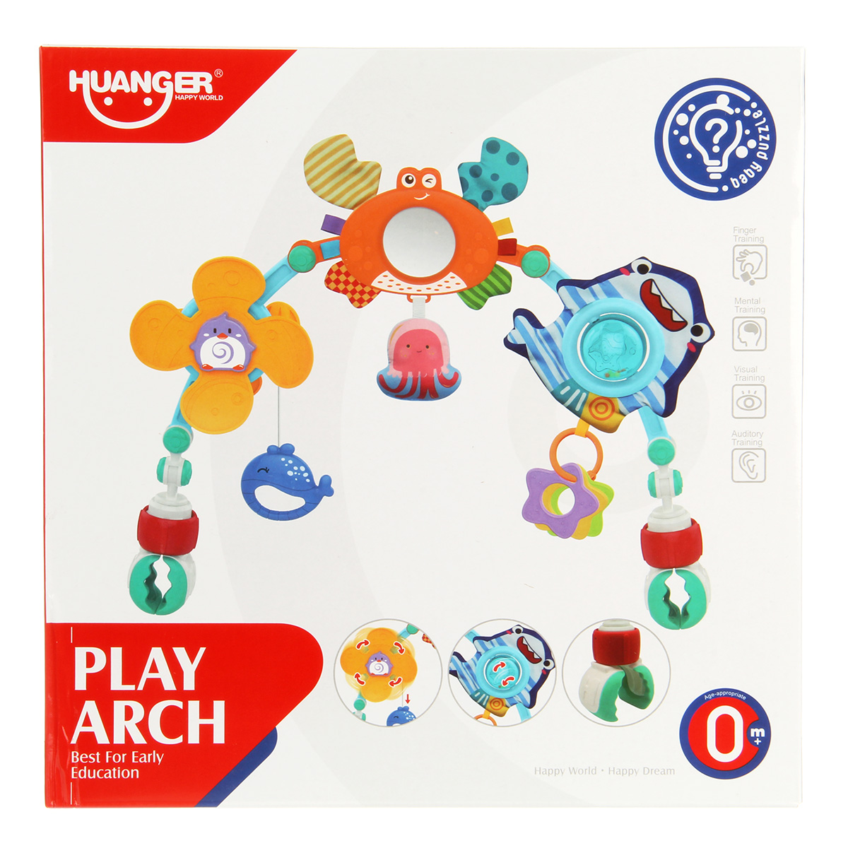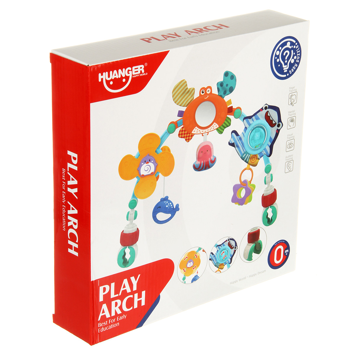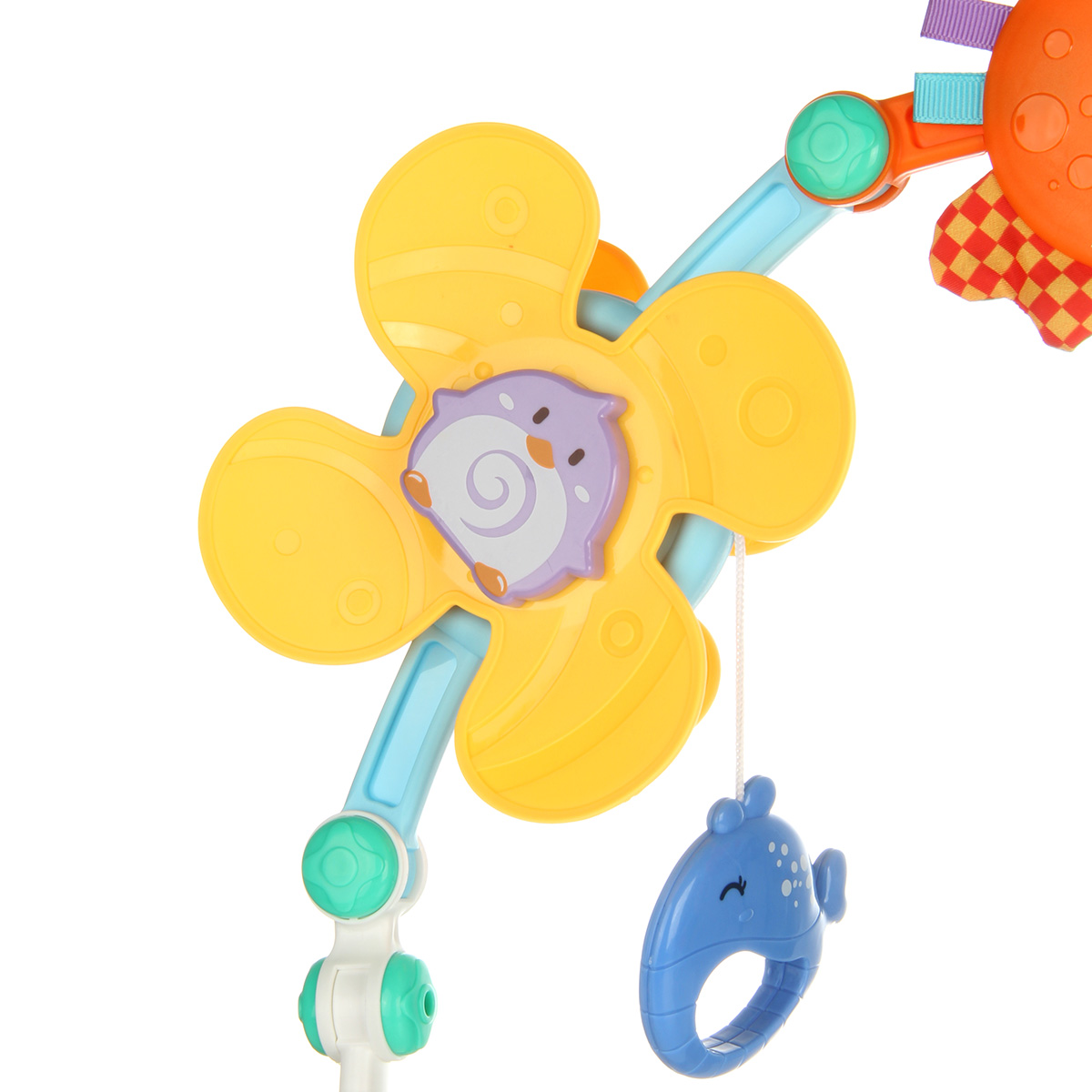 Дуга игровая для кроватки и коляски со множеством элементов. Удобство крепления, яркие, привлекающие внимание подвесные игрушки для новорожденных детей, здесь есть погремушка, пищалка, игрушка шуршалка, мягкая игрушка, прорезыватели.