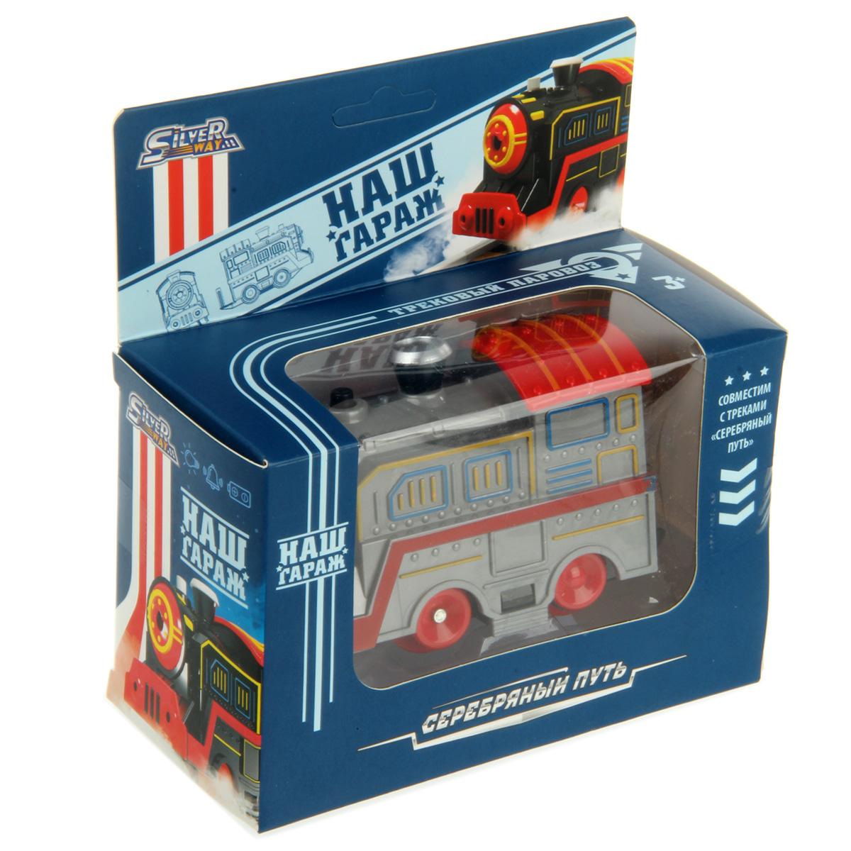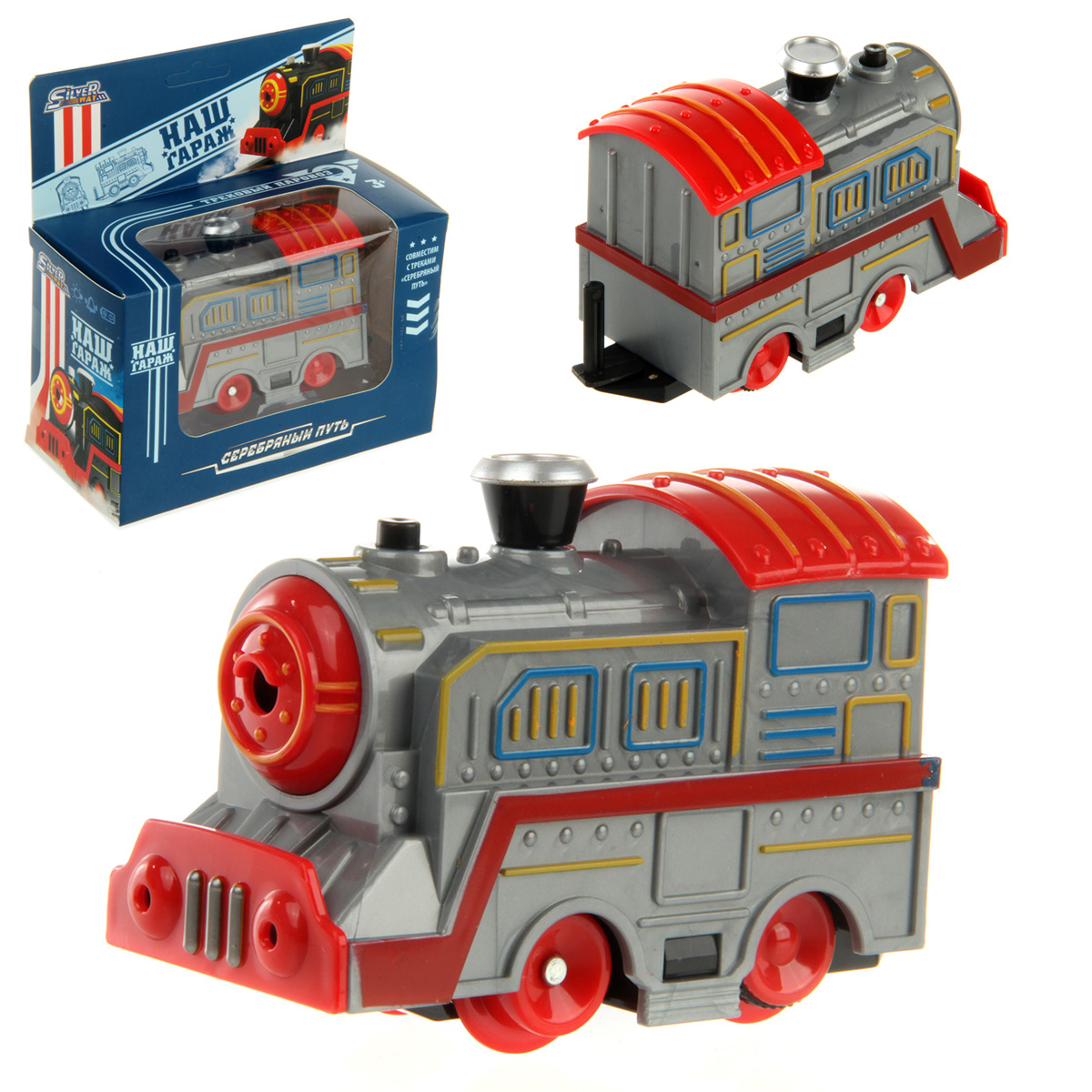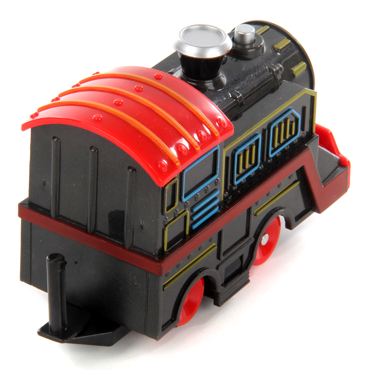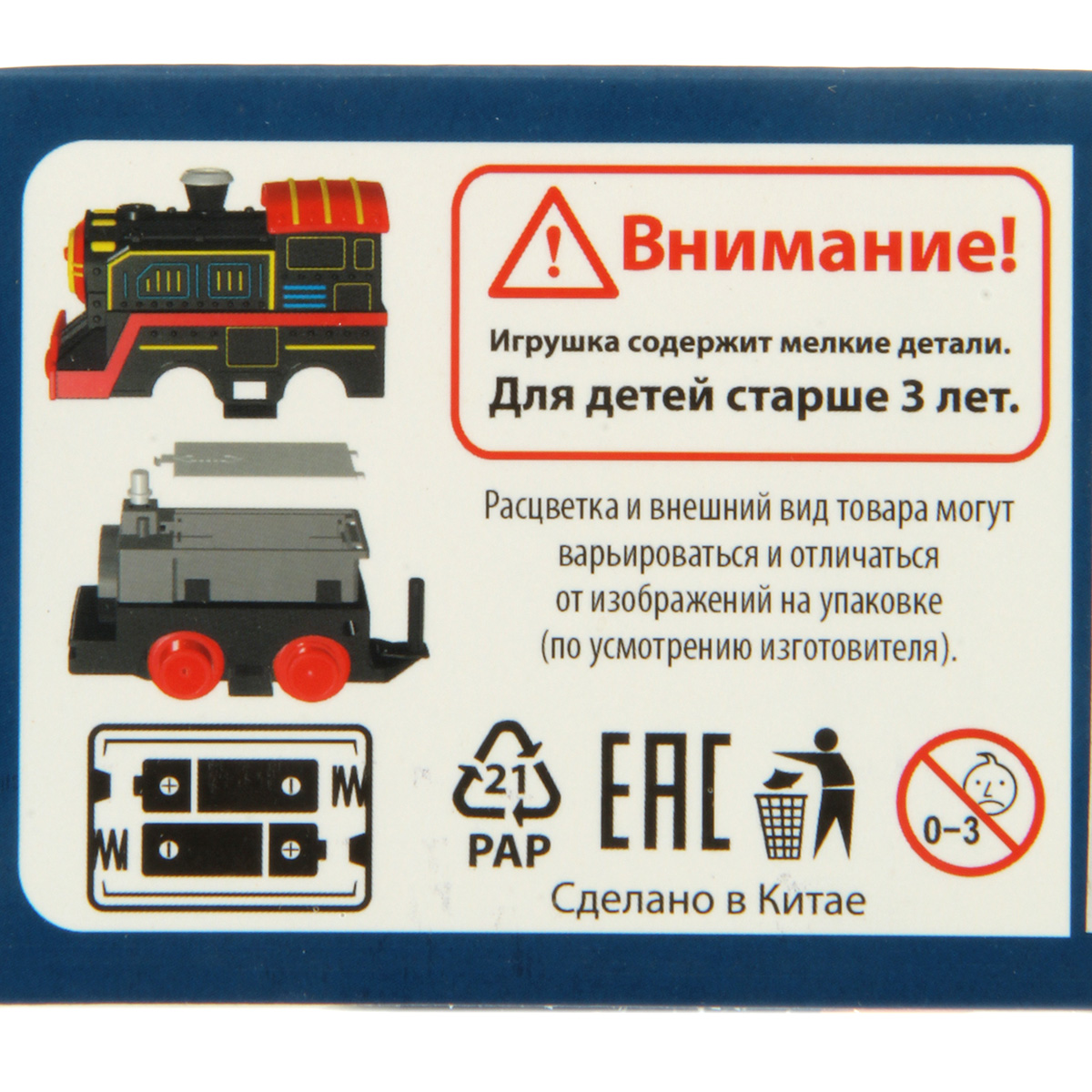 Игрушечный паровоз для железной дороги - отличный подарок вашему ребёнку, который позволит придумать ещё больше новых интересных игр. Работает на батарейках АА 2шт., не входят в комплект. Функционал игрушки: -при нажатии кнопки паровоз начинает движение; -издаёт звуки стука колёс, гудка; -фары светятся. Размеры упаковки: 16*15*7.5 см. Размеры паровоза: 12*5*7 см. Изготовлено из пластика.