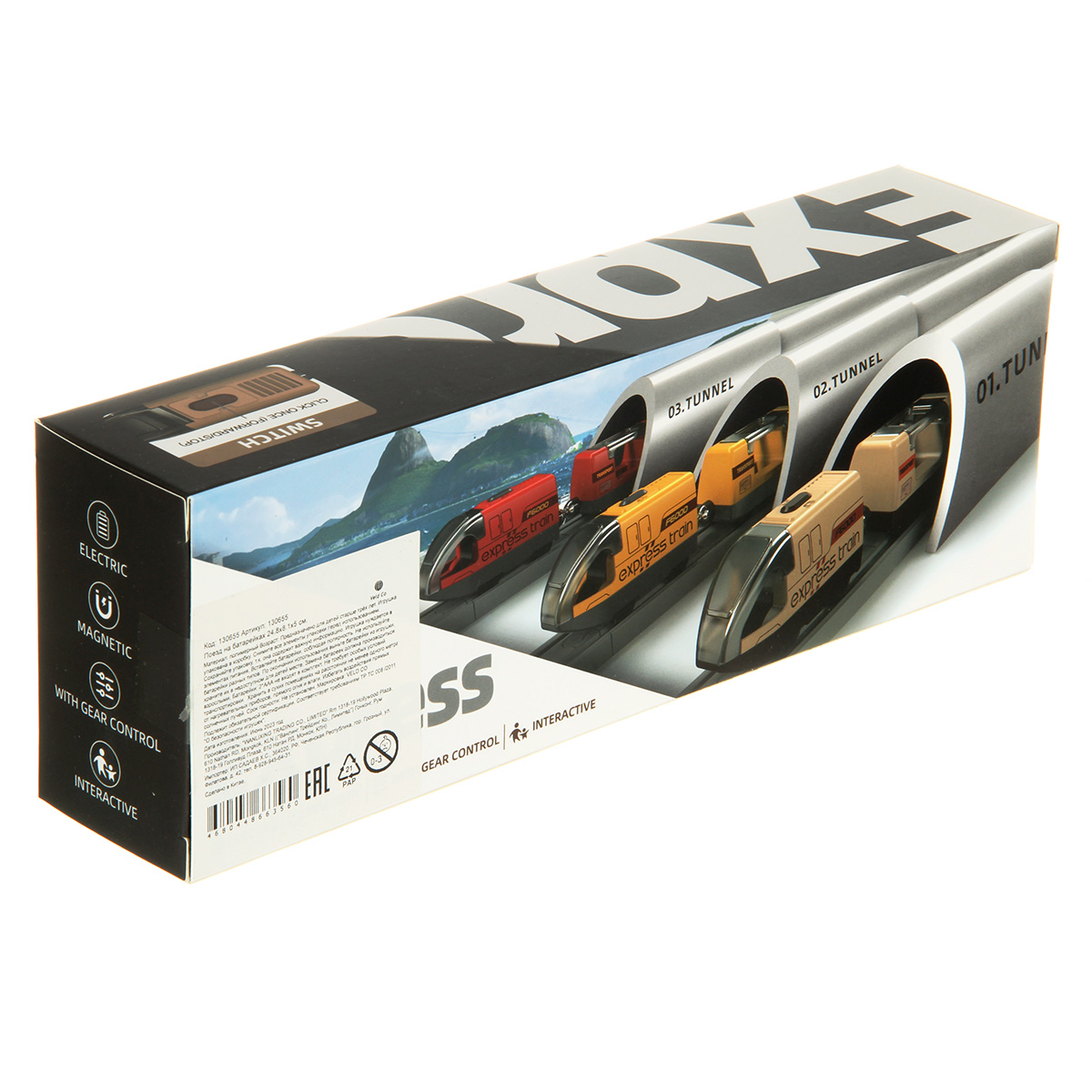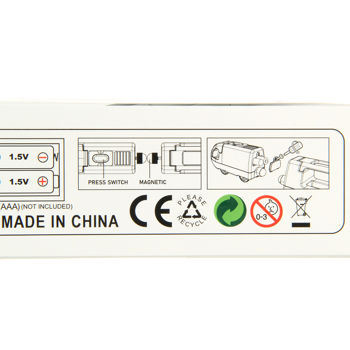 Локомотив работает от 2 батареек ААА, не входят в комплект. Батарейки вставляются в заднюю часть локомотива.
