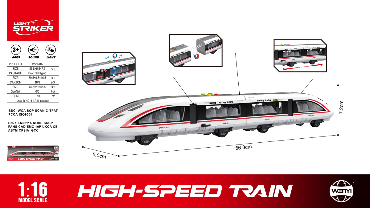 Скоростной поезд со светом и звуком станет замечательным подарком детям, как мальчику, так и девочке, на новый год, день рождения и на любой другой повод.
