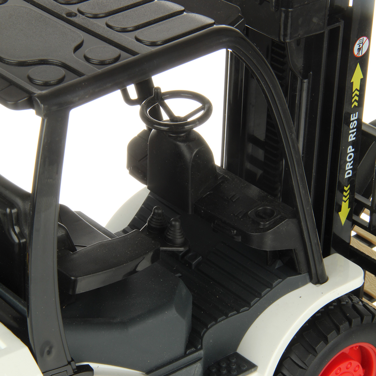 Погрузчик на батарейках с подвижными деталями, надежным креплением элементов.