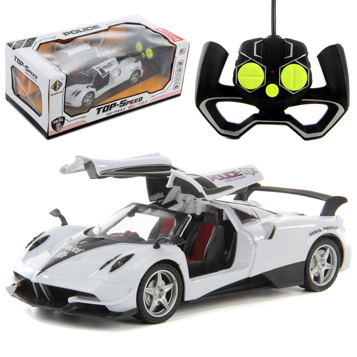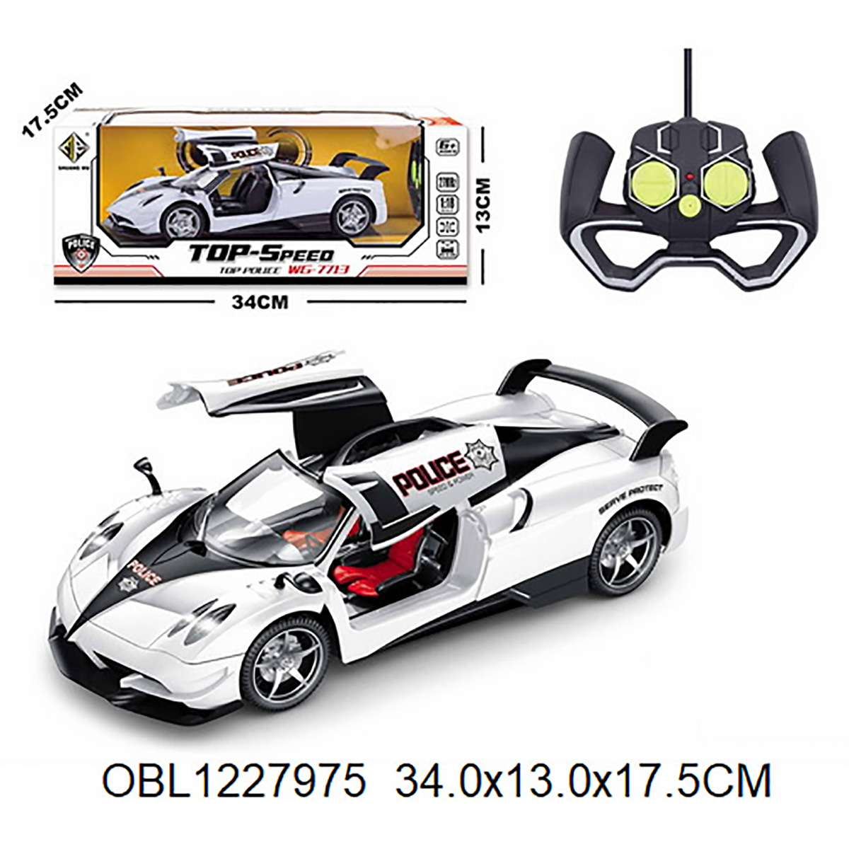 Машинка на радиоуправлении - замечательный подарок для каждого маленького автолюбителя. Красивая расцветка, стильный дизайн, маневренность, прочная конструкция, пульт управления удобно ложится в детскую ладошку, комфортно держать. Разнообразит сюжетно-ролевые игры. В комплект входит машинка, пульт управления. Машинка работает от батареек АА 3 шт., не входят в комплект, пуль работает от батареек АА 2 шт., не входят в комплект. Функционал игрушки: -машинка двигается во всех направлениях; -при движении загораются передние фары; -двери открываются и закрываются при нажатии кнопки на пульте; -колёса машинки прорезинены. Размеры упаковки: 34*18*13 см. Размеры машинки: 24*12*7 см. Размеры пульта: 8*13*4 см. Изготовлено из пластика, резины