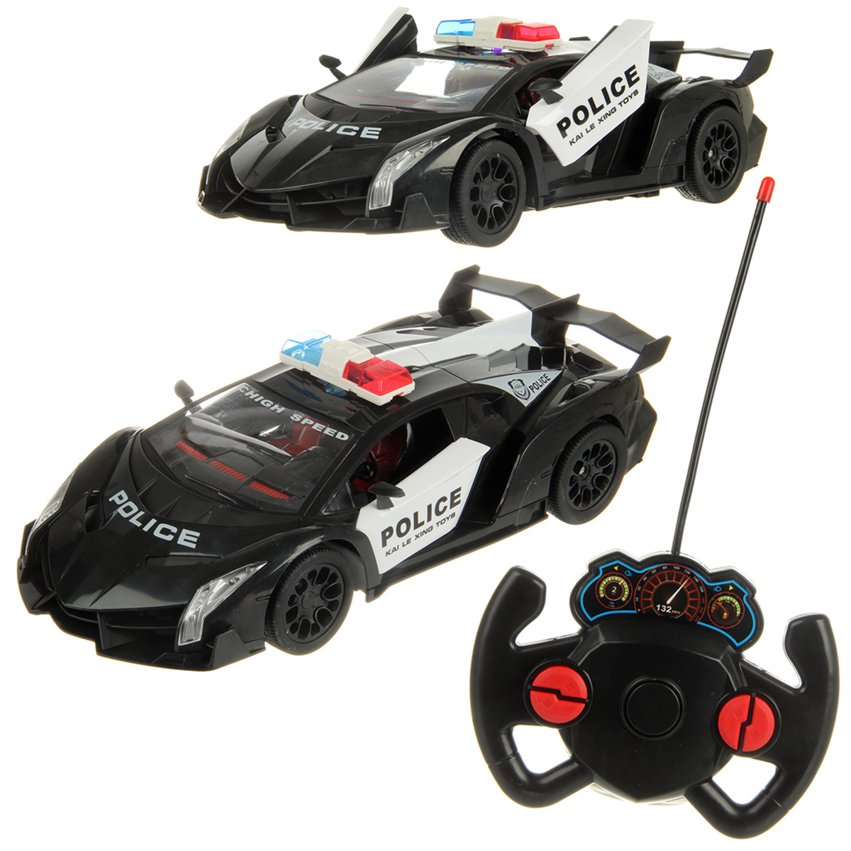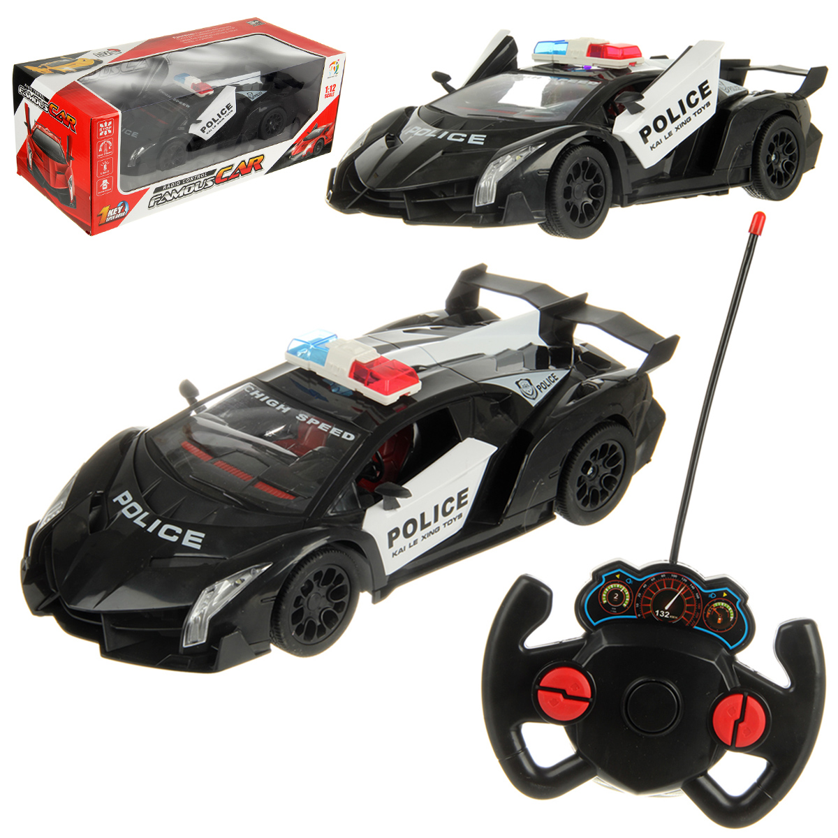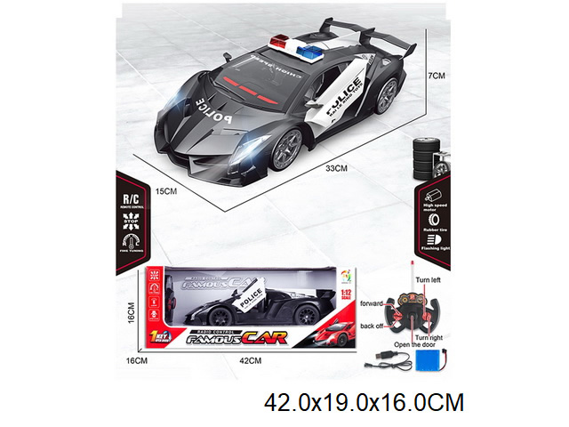 В наборе полицейская машинка, пульт управления, аккумулятор 4.8V, USB кабель.