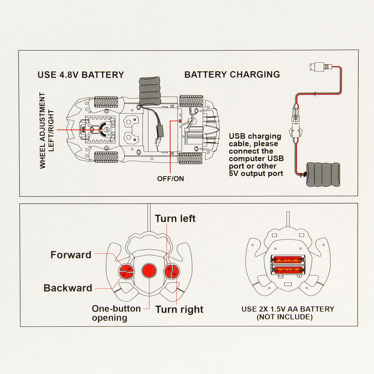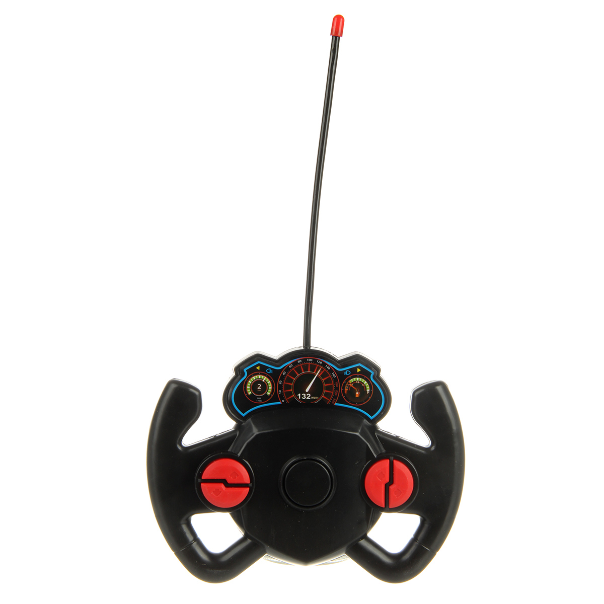 Толстые колеса, гарантирующие лучшее сцепление с поверхностью, простой принцип работы, пульт удобно ложится в руки.