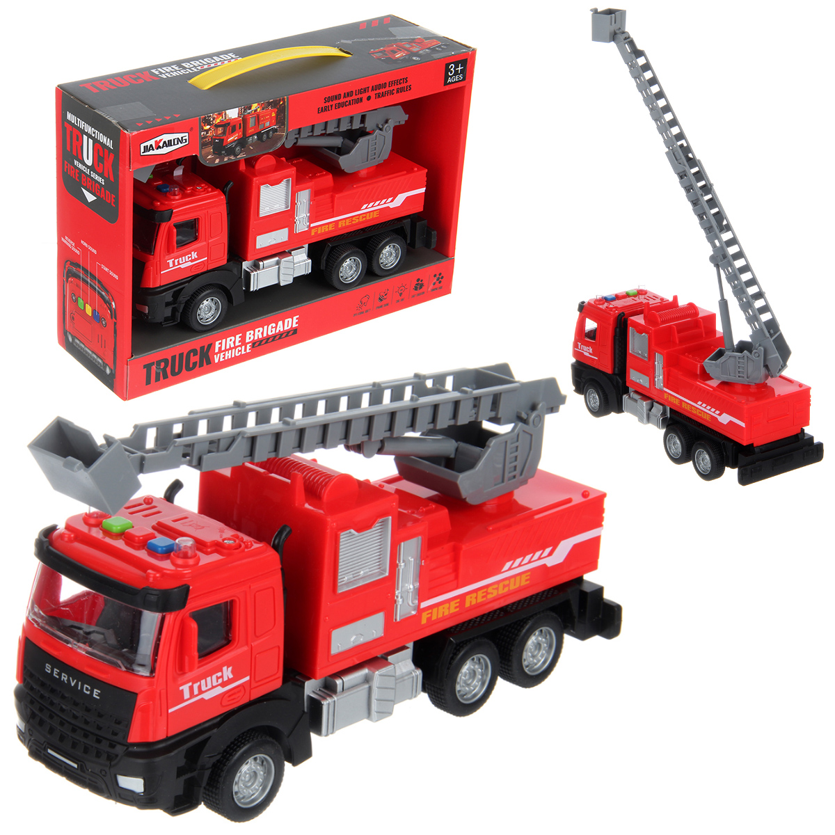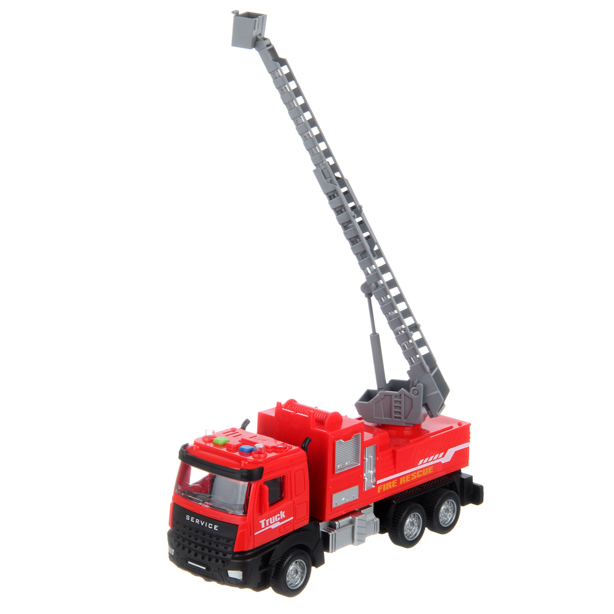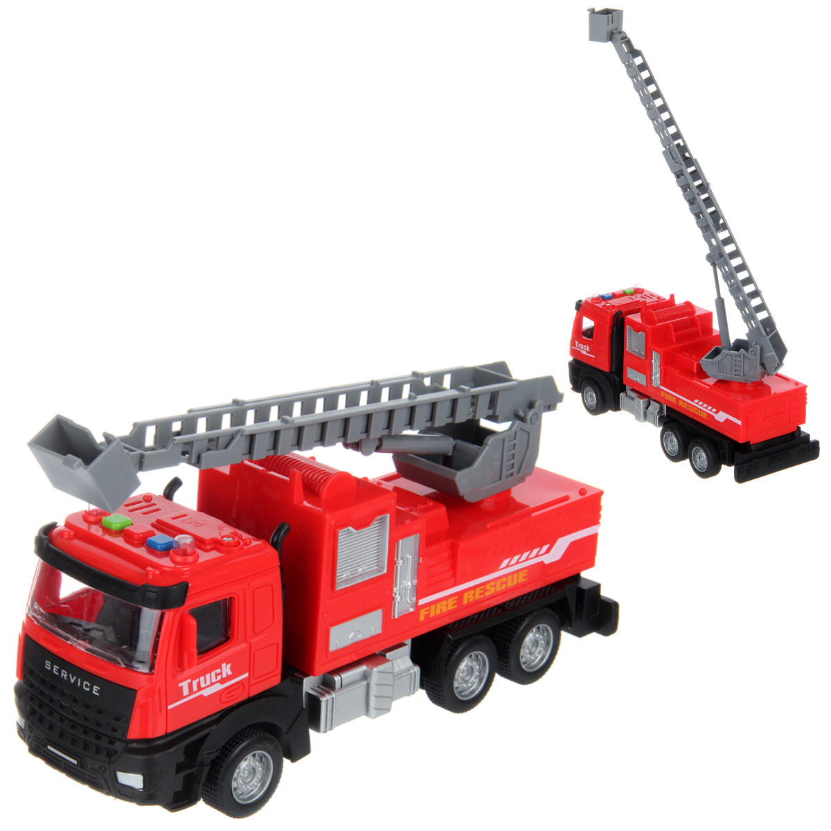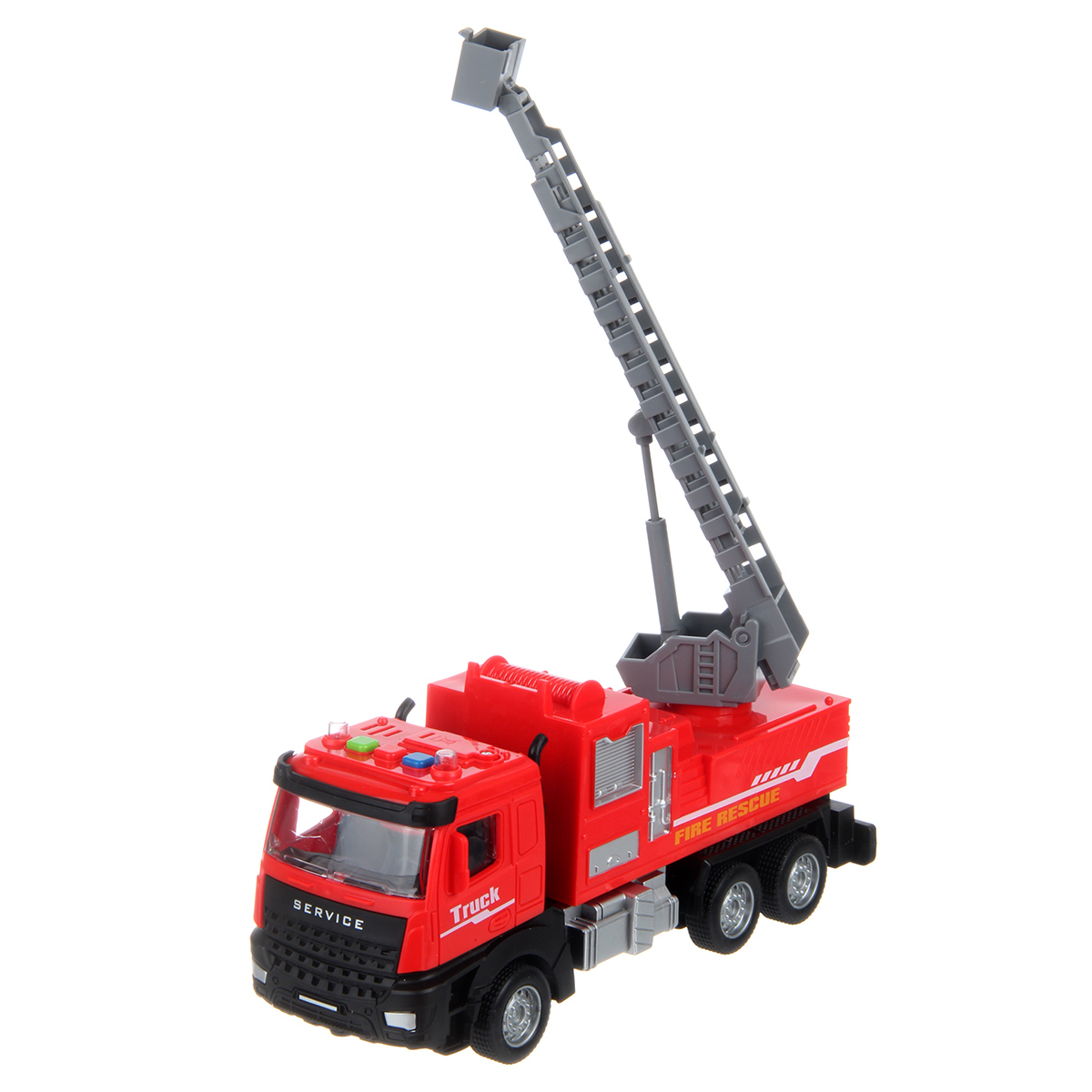 Фрикционная машинка со звуковыми эффектами, красивой подсветкой лампочек и подвижными деталями. Игрушка пожарная машина с выдвигающейся лестницей, игрушечная спецтехника выполнена в реалистичном дизайне и красивой расцветке. Игрушечный транспорт с прорезиненными колесами изготовлен из прочных и долговечных материалов. Игрушечная машина станет замечательным подарком на Новый год и День рождения, поставляется в красивой упаковке.
