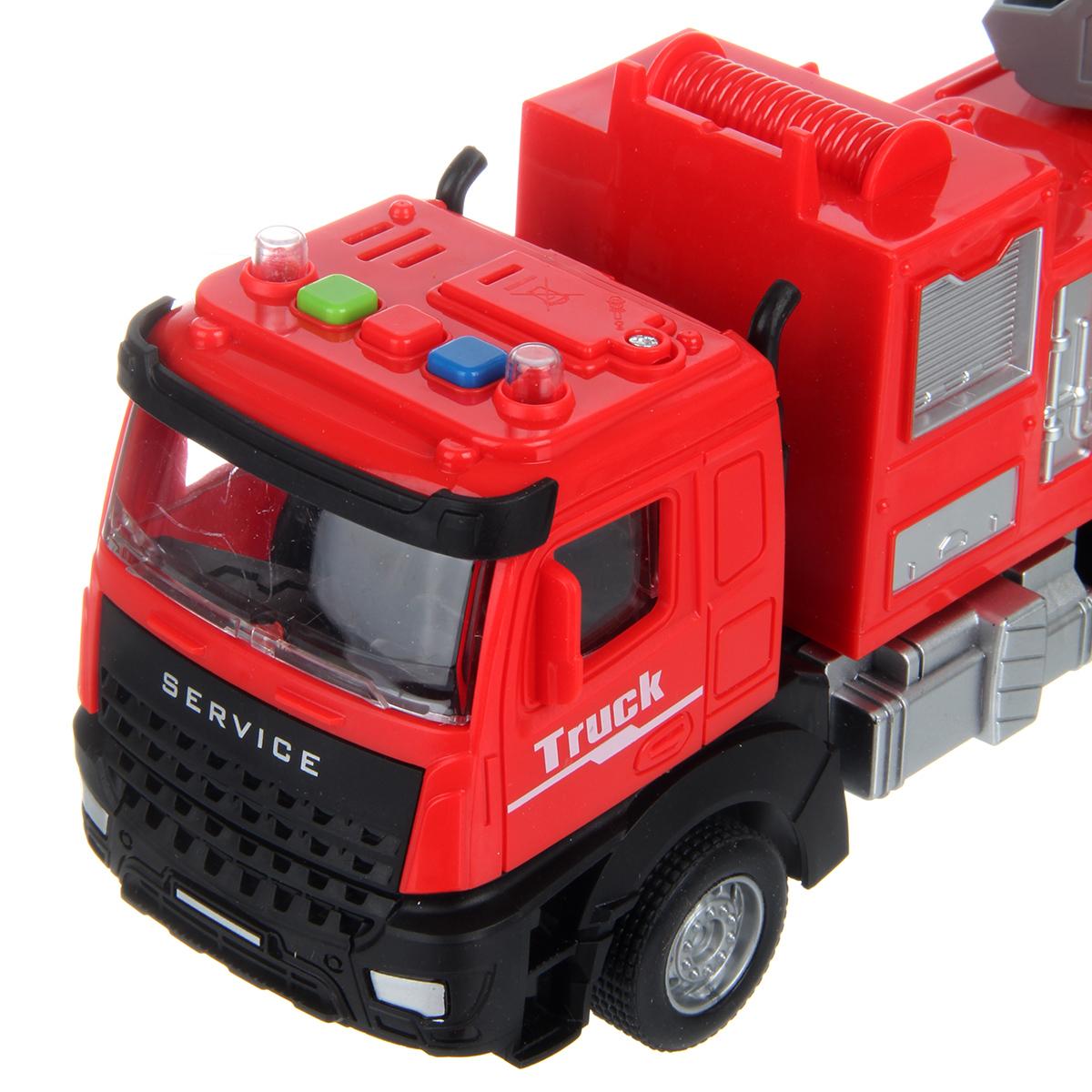 2. При нажатии кнопок на кабине издает звуки заводящегося двигателя, гудка, заднего хода, подсветка лампочек на кабине.