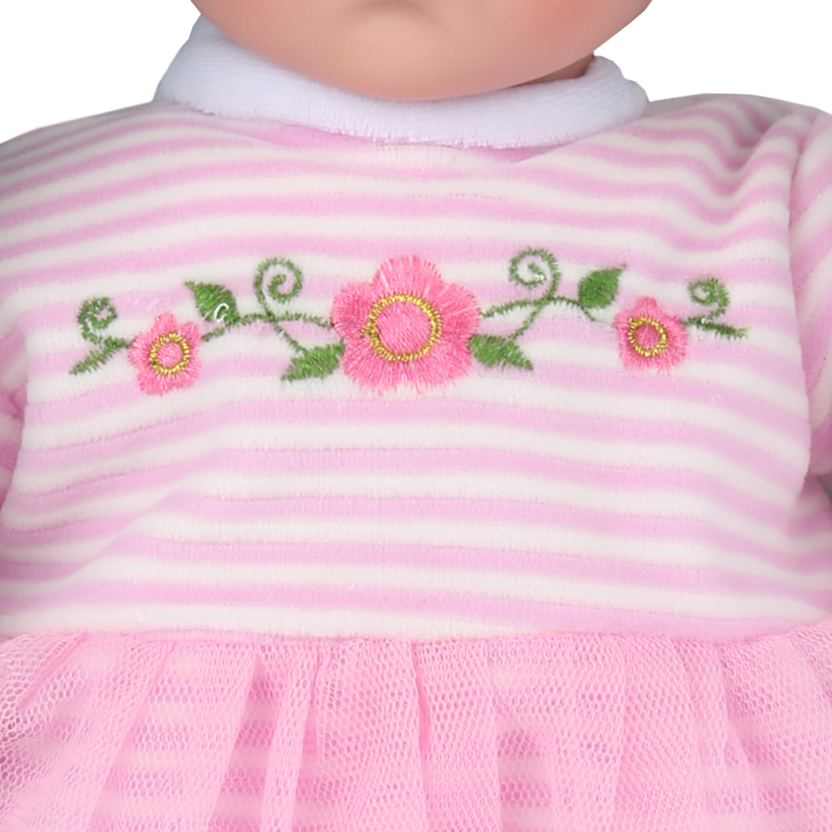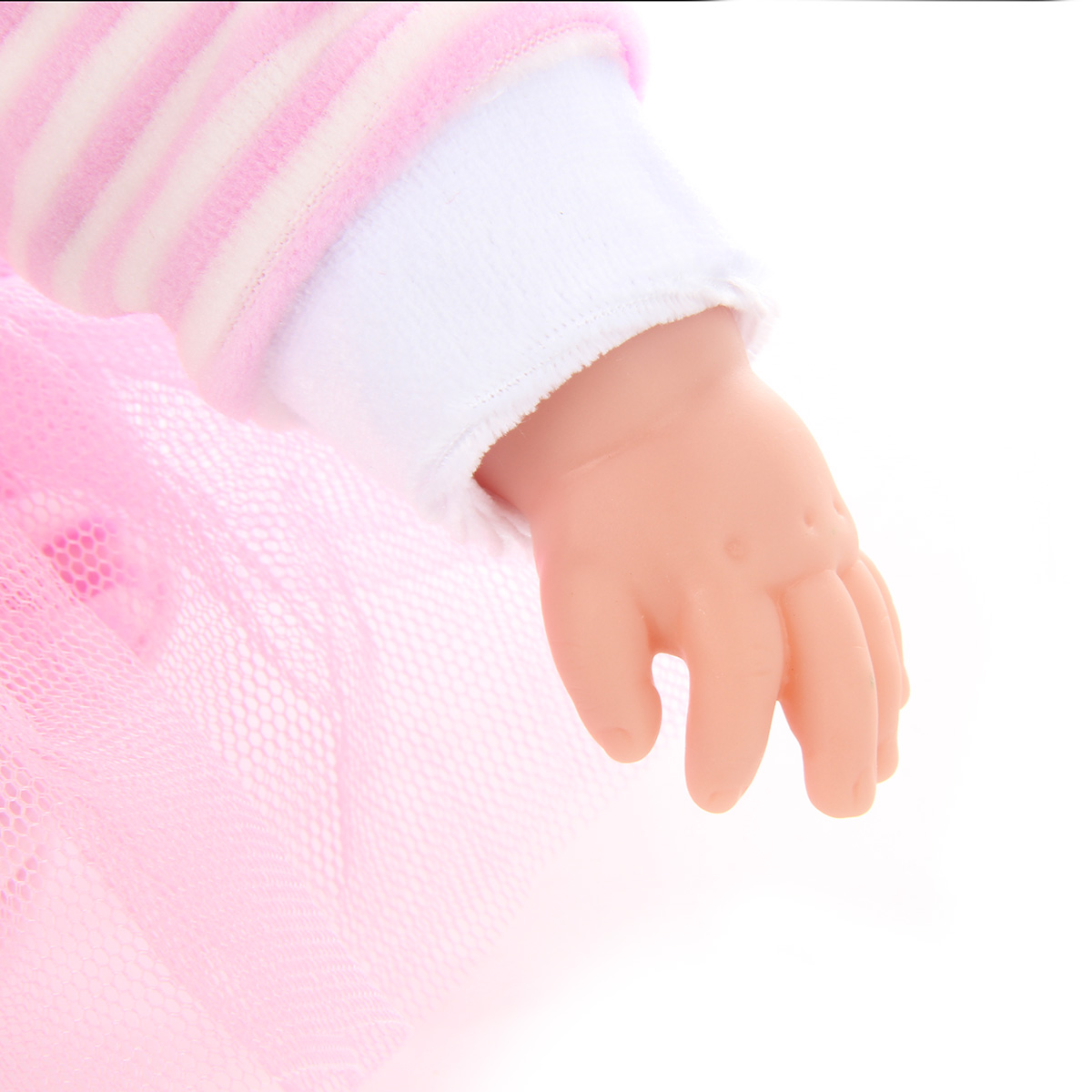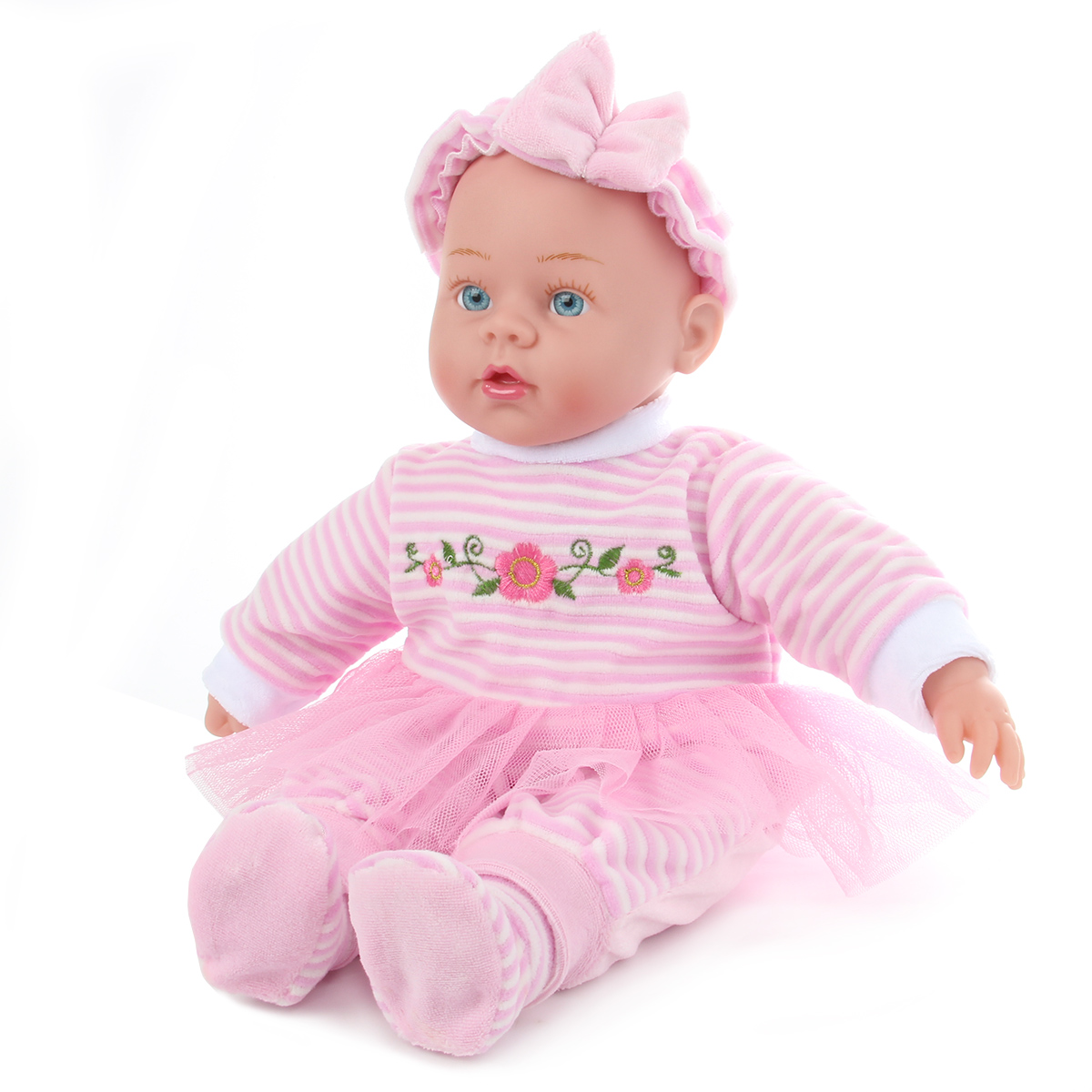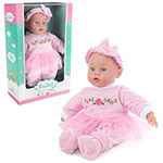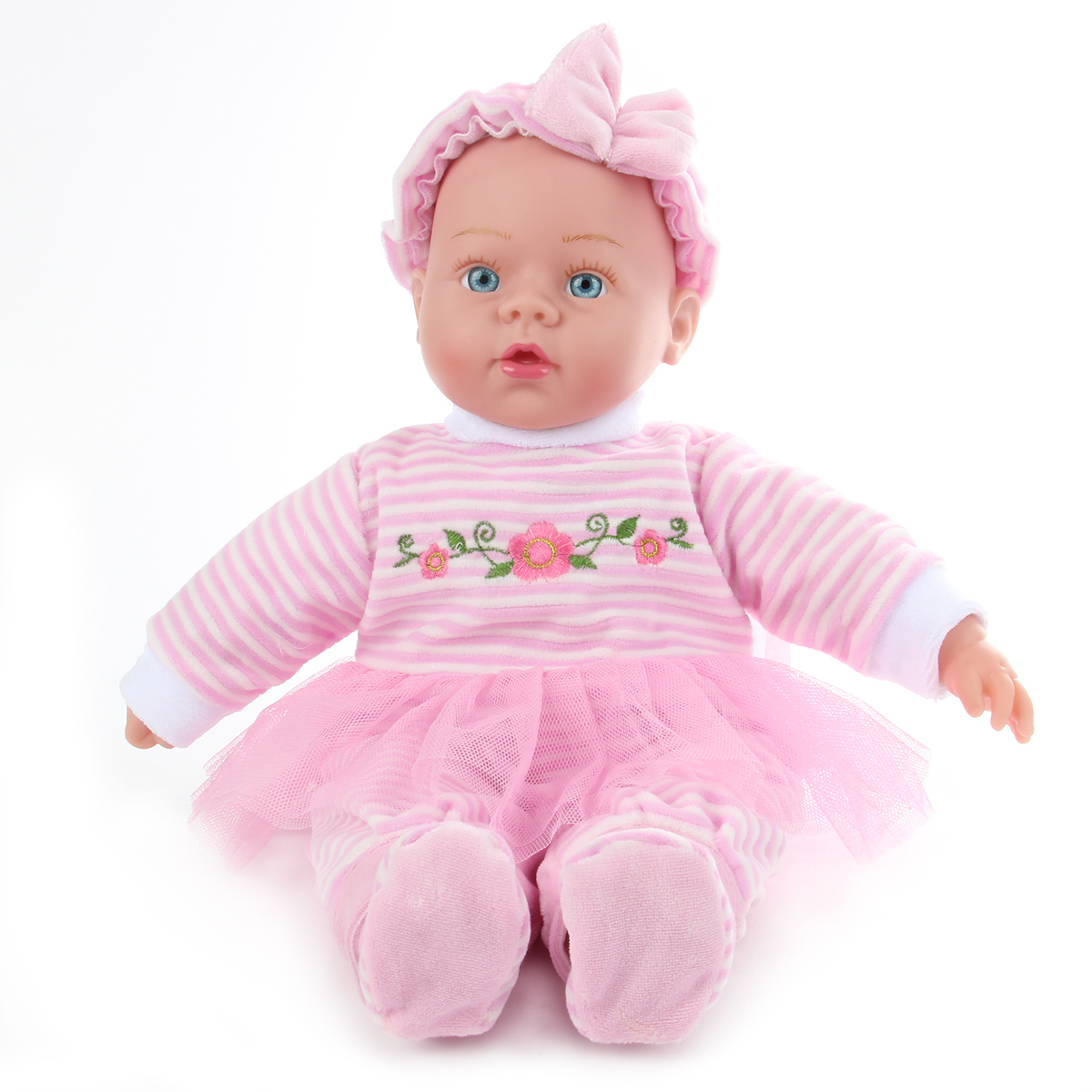 Совсем, как настоящий, очень милый и очаровательный пупс порадует любую девочку! С ним так здорово играть: он знает много фраз, умеет рассказывать веселые стихи, поет колыбельную, стоит нажать на одну из ручек! Пупсик одет в стильный и мягкий комбинезончик и носочки. На голове игрушки красивая повязка с очаровательным бантиком. Тело пупсика мягконабивное, кисти ручек и стопы ножек сделаны из винила. Бровки, реснички нарисованы, глазки не закрываются, ручки, ножки, голова мягкие. Забота о такой кукле научит ребенка ответственности, улучшит коммуникативные и социальные навыки, позволит придумать множество сюжетно-ролевых игр, развивая фантазию! Этот пупсик - великолепный подарок для девочки, с которым она проведет немало веселых и занимательных часов игры! Игрушка работает от 3 батареек АА, в комплект не входят. Изготовлена из винила, аксессуары и наполнитель тела сделаны из текстильных материалов. Размеры пупса: 20*9,5*40 см. Размеры коробки: 24*12*40 см.