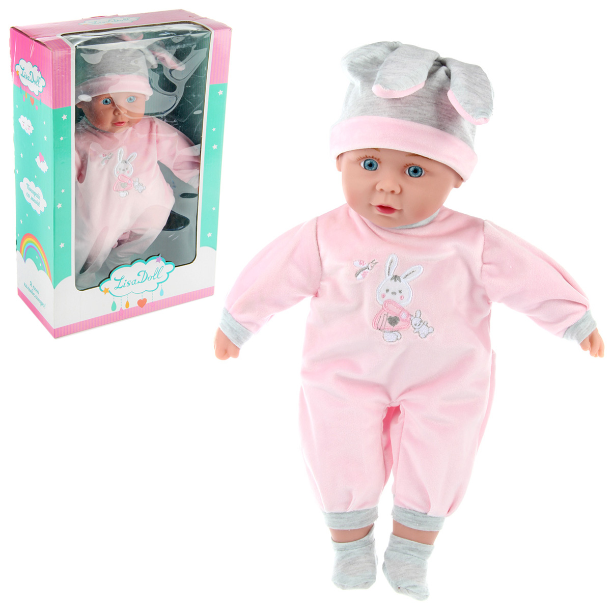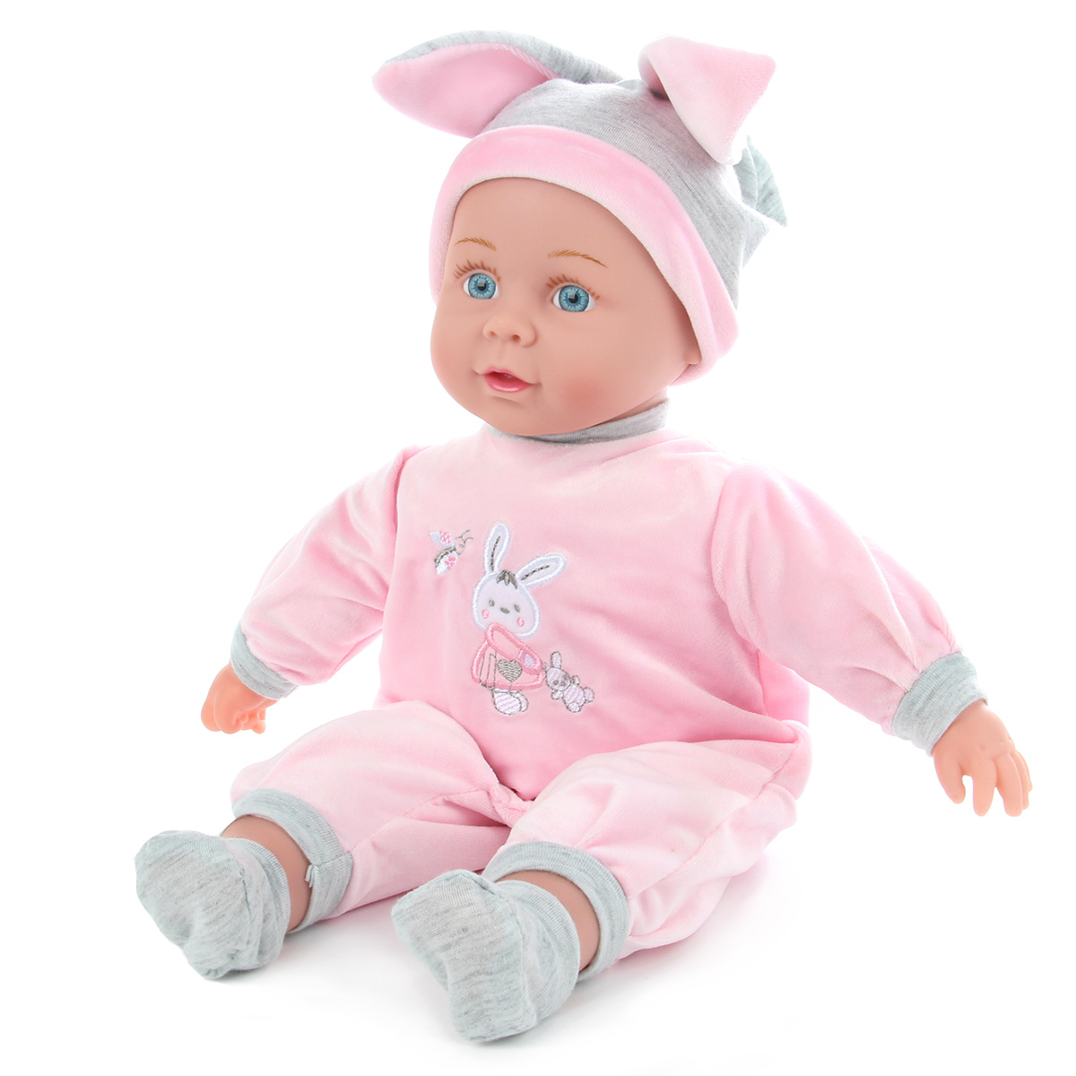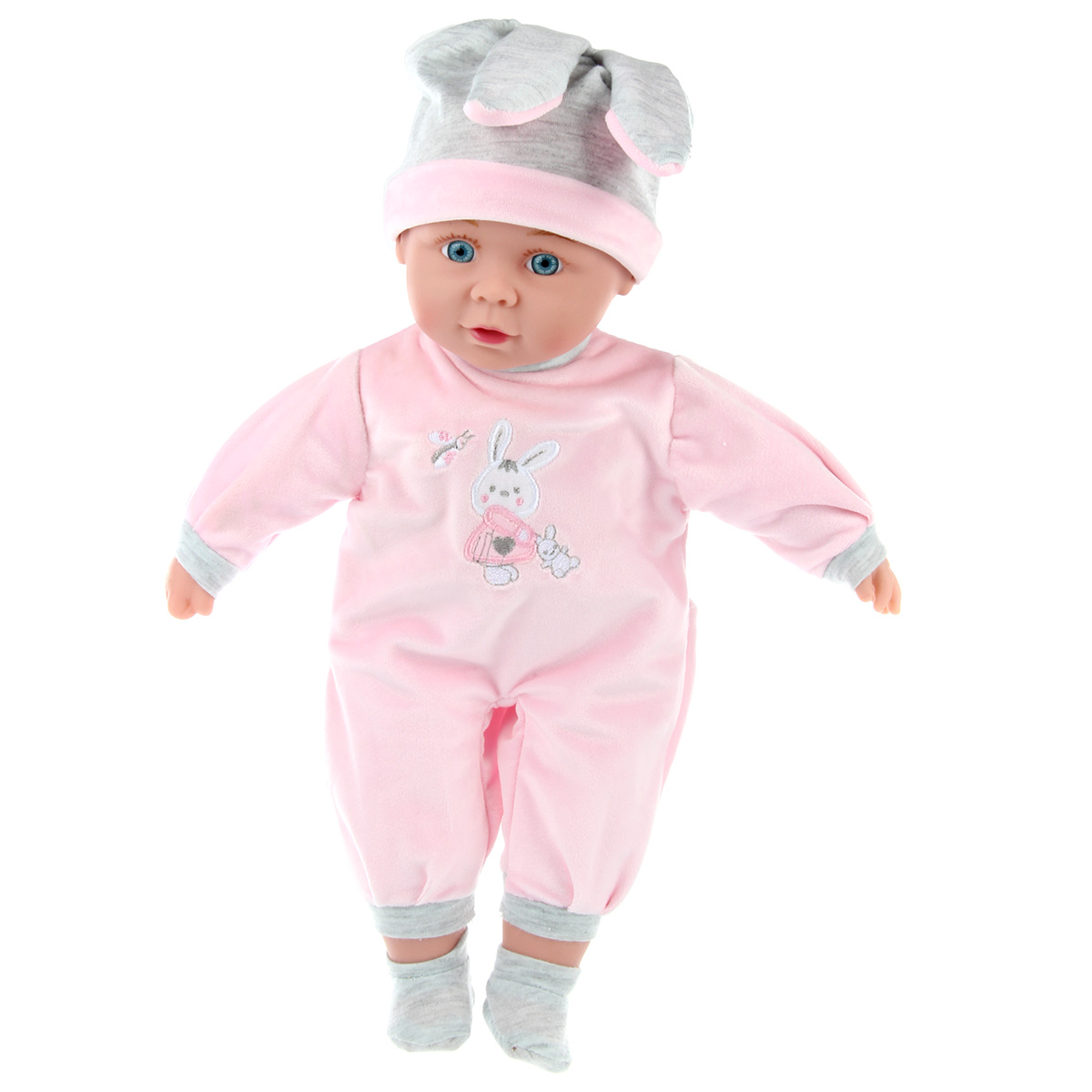 Совсем, как настоящий, очень милый и очаровательный пупс порадует любую девочку! С ним так здорово играть: он знает много фраз, умеет рассказывать веселые стихи, поет колыбельную, стоит нажать на одну из ручек! Пупсик одет в стильный и красивый комбинезончик, носочки и шапочку с ушками. Тело пупсика мягконабивное, кисти ручек и стопы ножек сделаны из винила. Бровки, реснички нарисованы, глазки не закрываются, ручки, ножки, голова мягкие. Забота о такой кукле научит ребенка ответственности, улучшит коммуникативные и социальные навыки, позволит придумать множество сюжетно-ролевых игр, развивая фантазию! Этот пупсик - великолепный подарок для девочки, с которым она проведет немало веселых и занимательных часов игры! Игрушка работает от 3 батареек АА, в комплект не входят. Изготовлена из винила, аксессуары и наполнитель тела сделаны из текстильных материалов. Размеры пупса: 20*9,5*40 см. Размеры коробки: 24*12*40 см.