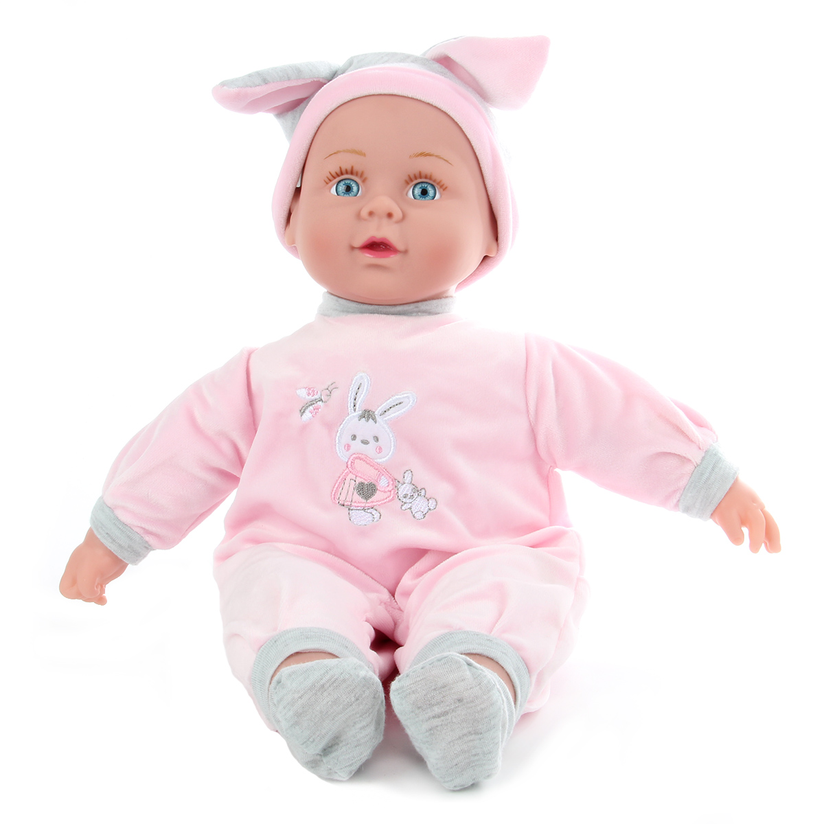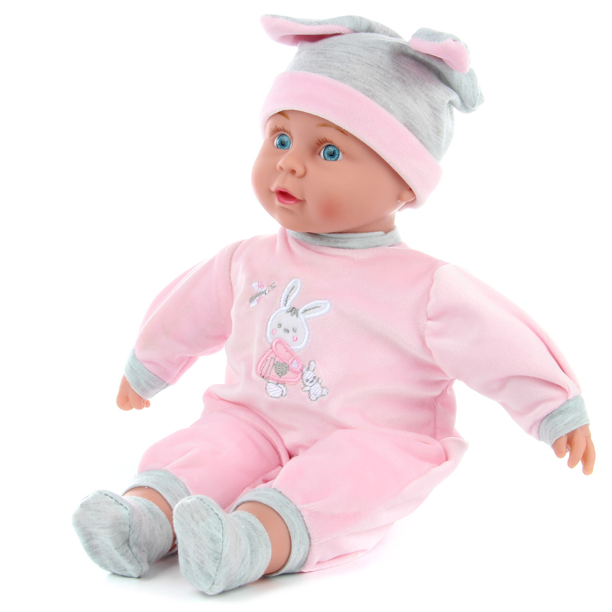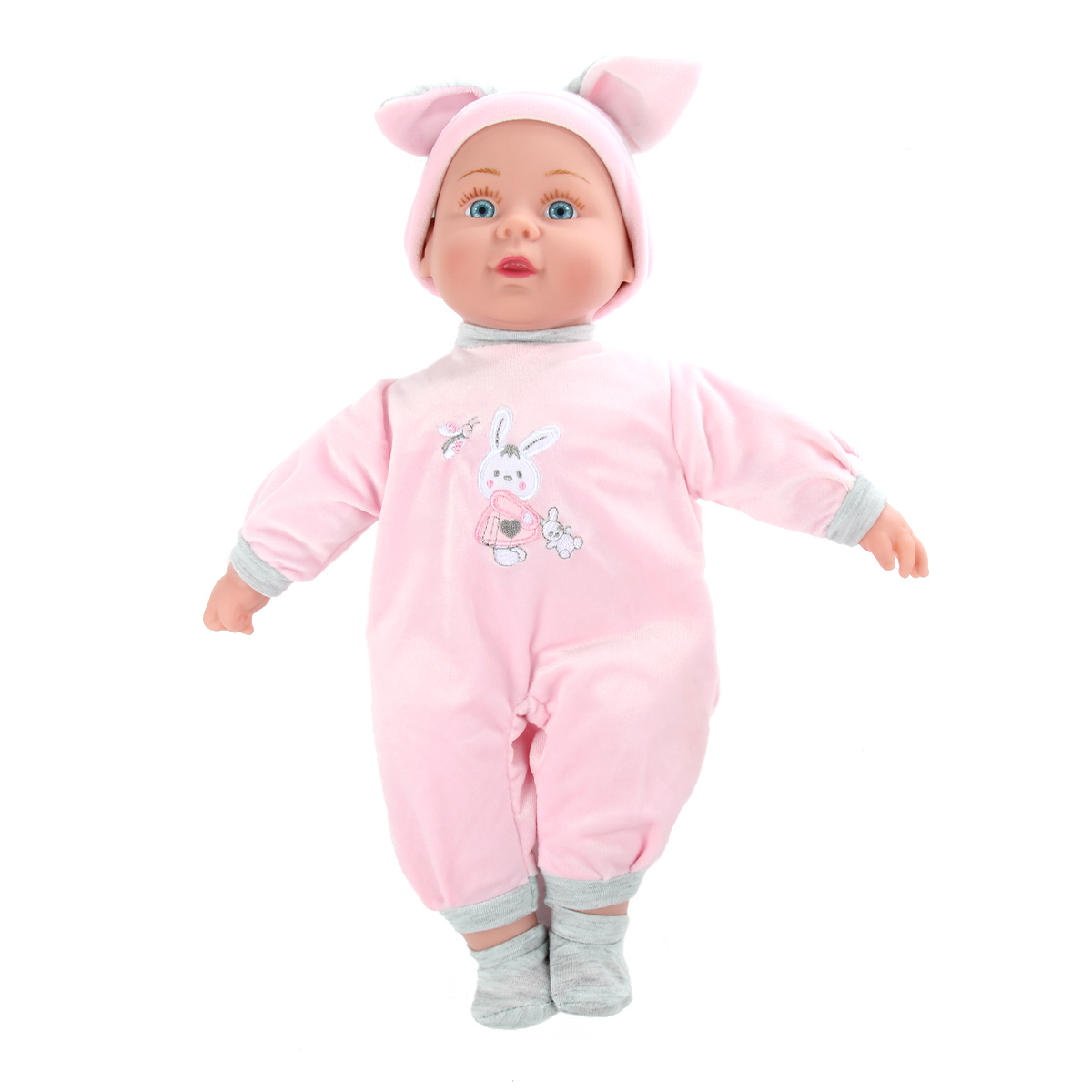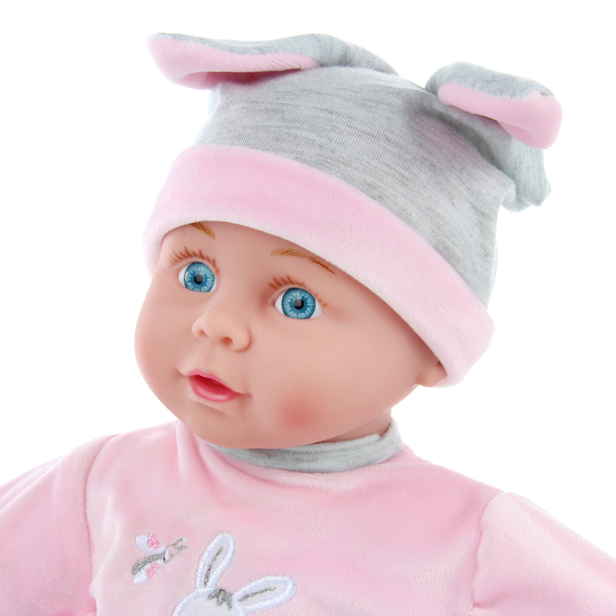 Совсем, как настоящий, очень милый и очаровательный пупс порадует любую девочку! С ним так здорово играть: он знает много фраз, умеет рассказывать веселые стихи, поет колыбельную, стоит нажать на одну из ручек! Пупсик одет в стильный и красивый комбинезончик, носочки и шапочку с ушками. Тело пупсика мягконабивное, кисти ручек и стопы ножек сделаны из винила. Бровки, реснички нарисованы, глазки не закрываются, ручки, ножки, голова мягкие. Забота о такой кукле научит ребенка ответственности, улучшит коммуникативные и социальные навыки, позволит придумать множество сюжетно-ролевых игр, развивая фантазию! Этот пупсик - великолепный подарок для девочки, с которым она проведет немало веселых и занимательных часов игры! Игрушка работает от 3 батареек АА, в комплект не входят. Изготовлена из винила, аксессуары и наполнитель тела сделаны из текстильных материалов. Размеры пупса: 20*9,5*40 см. Размеры коробки: 24*12*40 см.