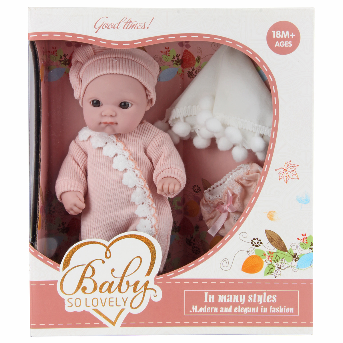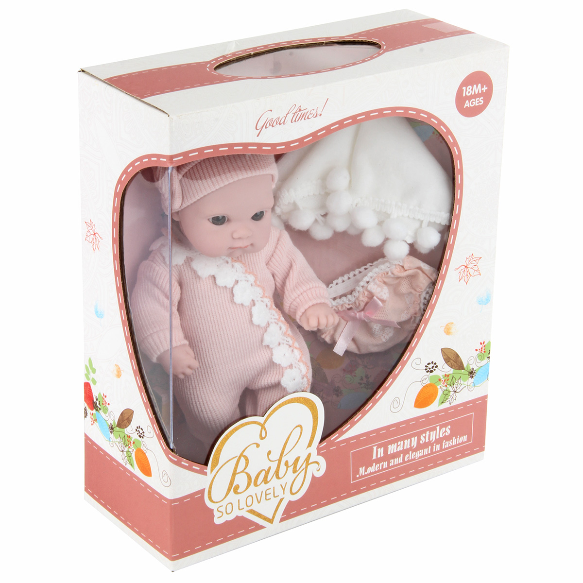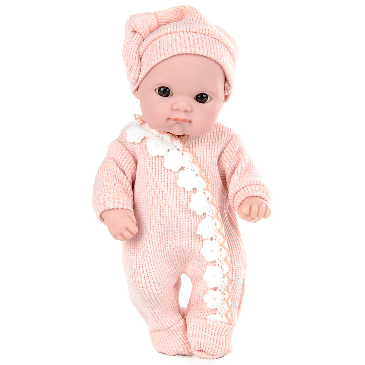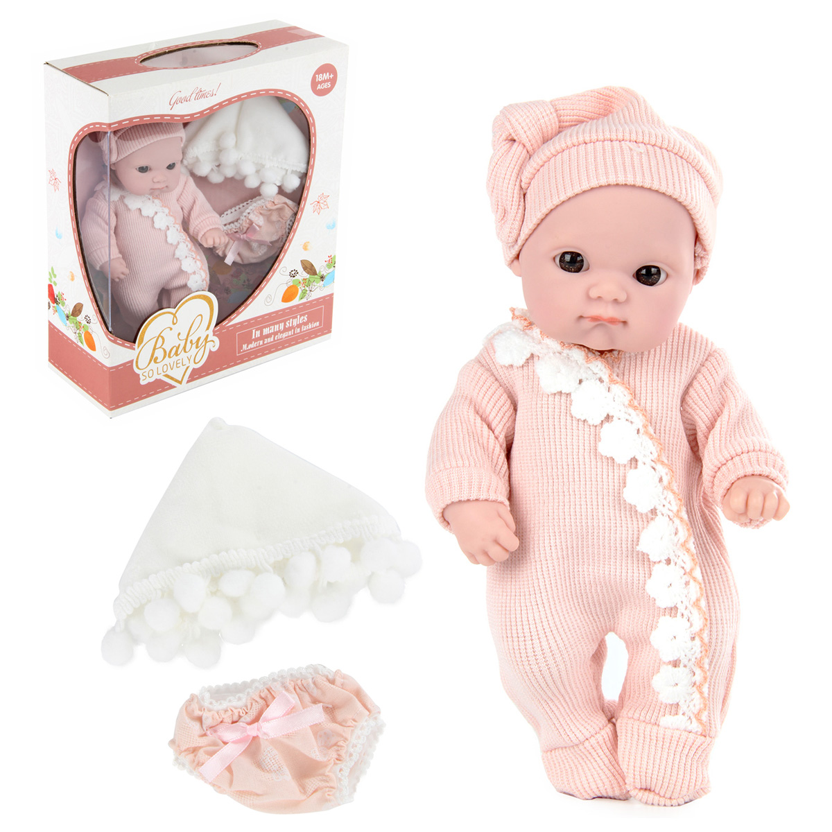 Совсем, как настоящий, очень милый и очаровательный пупс, сделанный по европейским дизайнам - великолепный подарок для девочек! Куклу можно сажать, купать, брать с собой на прогулку, менять ей белье! У пупсика есть кружевные трусики и мягкое одеяльце с помпончиками, сам он одет в шапочку и комбинезончик на липучке нежного приятного цвета. Ручки, ножки и голова куклы двигаются, все части тела мягкие на ощупь, глазки не закрываются. Пупс упакован в красивую подарочную коробку. Забота о такой кукле научит ребенка ответственности и терпению, улучшит коммуникативные способности. Игрушка изготовлена из высококачественной пластмассы, аксессуары сшиты из ткани. Предназначена для детей старше 3 лет. Страна-производитель: Китай. Размеры пупса: 11*5,5*20 см. Размеры одеяльца: 16*16 см. Размеры коробки: 20,5*8,5*23,5 см.