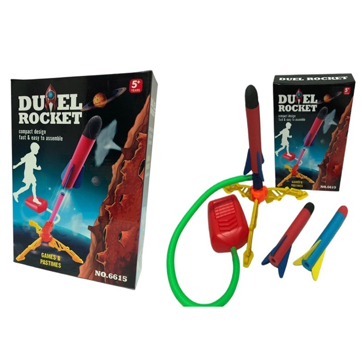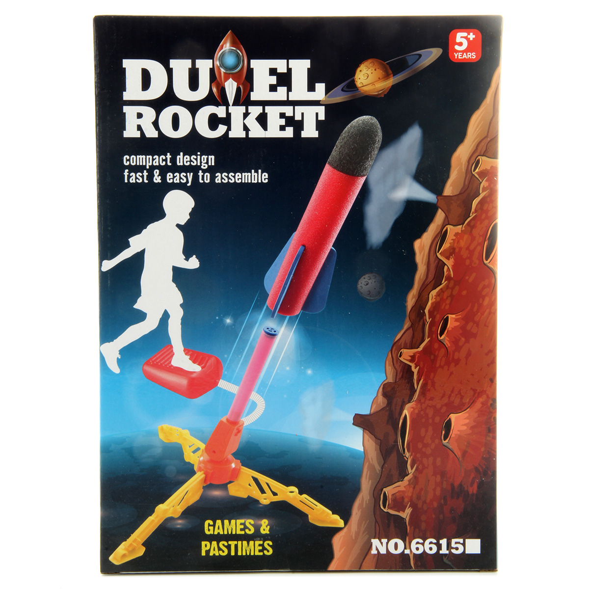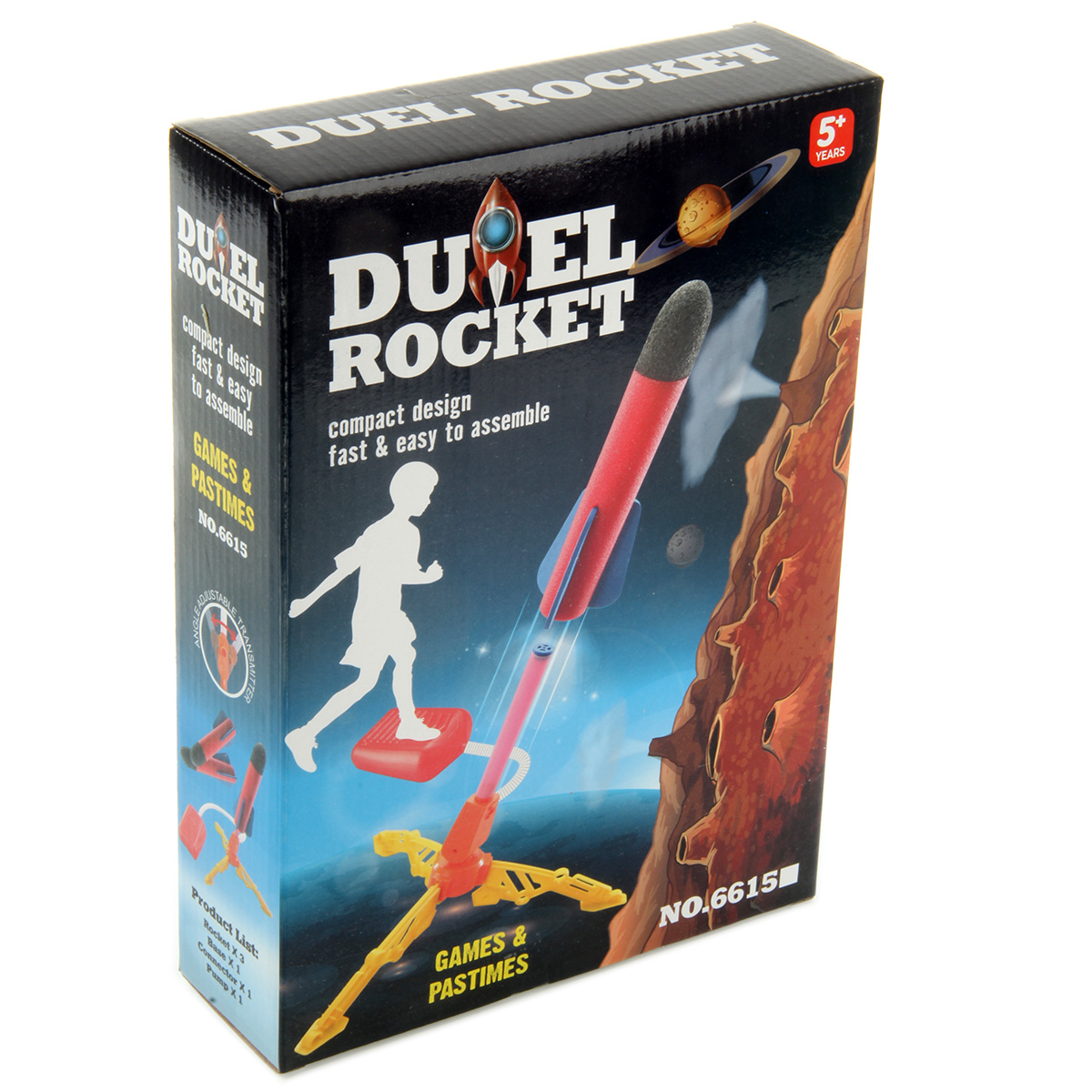Пусковая установка с ракетой легко собирается и разбирается. При нажатии на педаль происходит выстрел, угол запуска летательного аппарата регулируется.