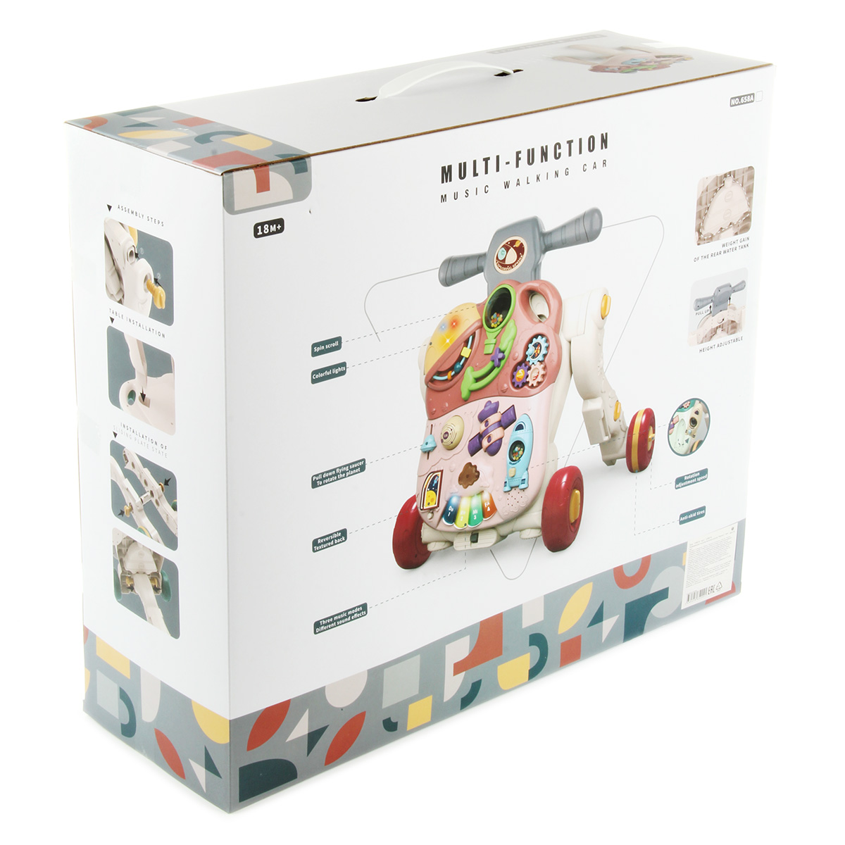 Развивающая игрушка ходунки каталка выполнена в красивой и приятной расцветке, обладает множеством функций, имеет световые и звуковые эффекты.