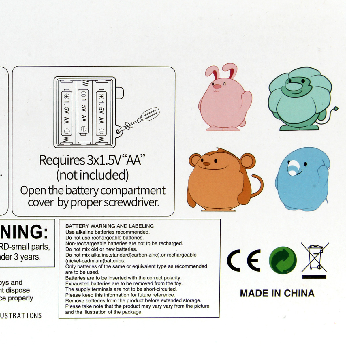Игрушка работает от 3 батареек АА, не входят в комплект.