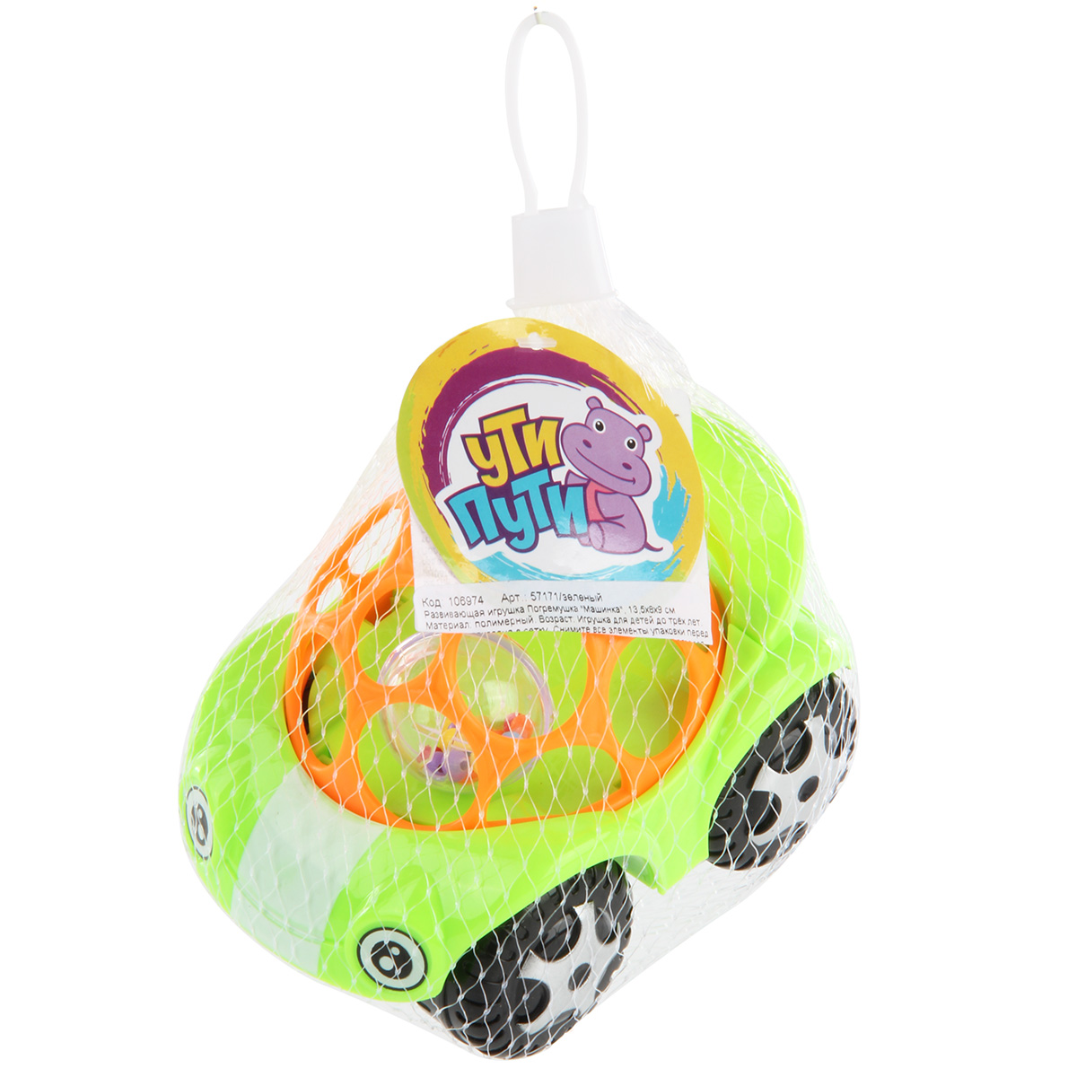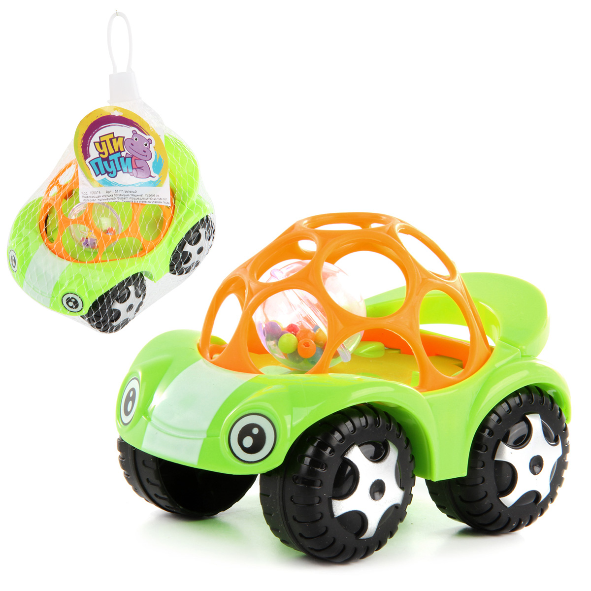 Очень симпатичная машинка, оформленная в яркой расцветке, станет лучшим другом малыша. Игрушка катается вперед-назад, внутри ее корпуса есть перекатывающийся прозрачный шар с гремящими элементами, сетка корпуса мягкая, сминается. Игрушка отлично развивает мелкую моторику рук, координацию движений, зрительное и слуховое восприятие, воображение. Игрушка предназначена для детей до 3 лет. Игрушка изготовлена из качественного и безопасного полимерного материала, упакована в сетку. Размеры игрушки: 12,5*9*9 см. Размеры игрушки в упаковке: 12,5*9*13 см.