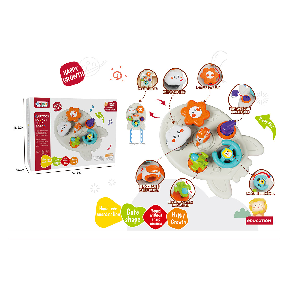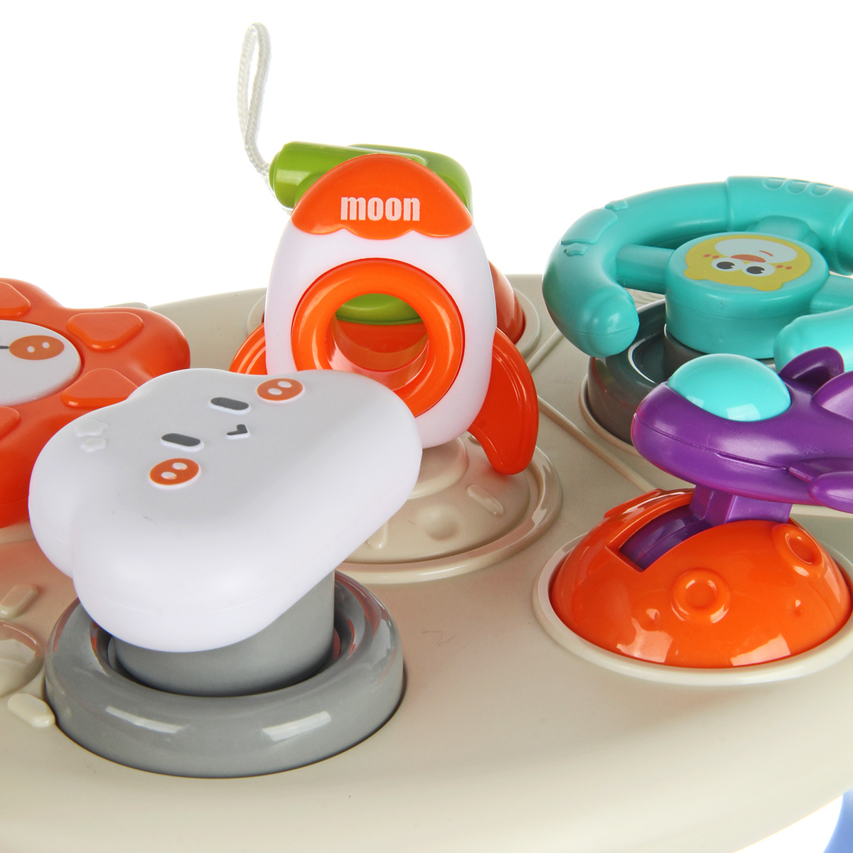 Развивающий бизиборд в компактном размере и качественном исполнении. Монтессори для малышей имеет крутящиеся подвижные элементы, комфортно помещаются в детских ручках. Звуковые эффекты, вынимающаяся вилка, возможность прикрепить детскую игрушку к бортику кроватки или на коляску за счет ремешков. Игровой центр изготовлен из прочных и долговечных материалов, обладает интересной задумкой и яркой расцветкой. Развивающие игрушки станут замечательным подарком мальчику и девочке на Новый год и День рождения.