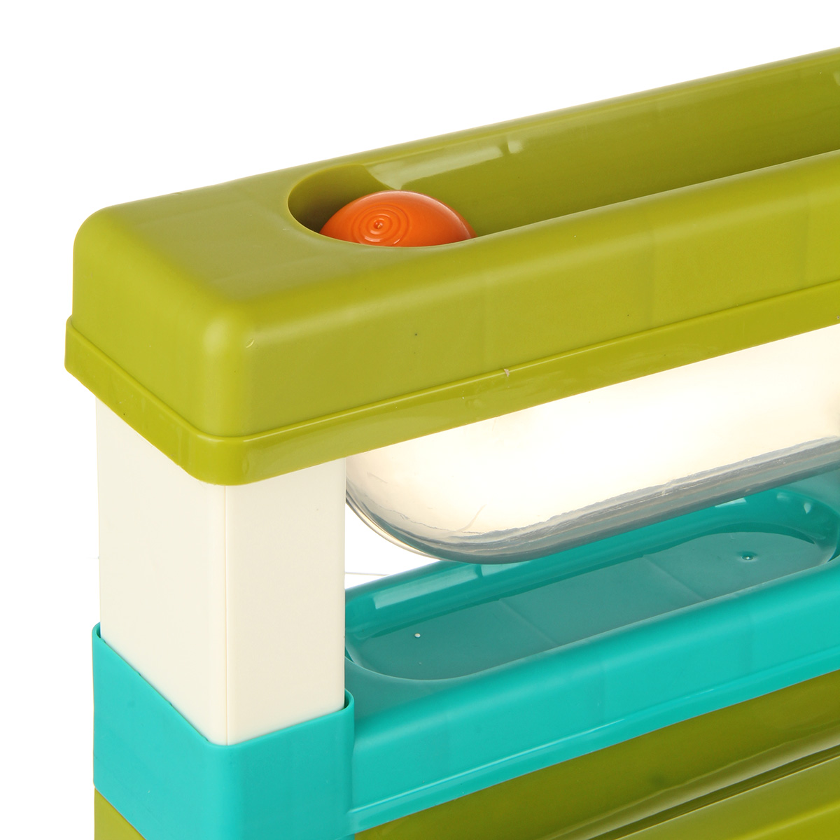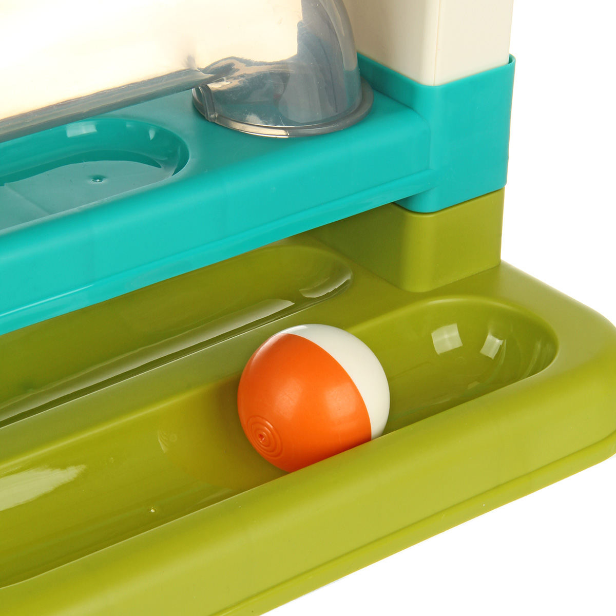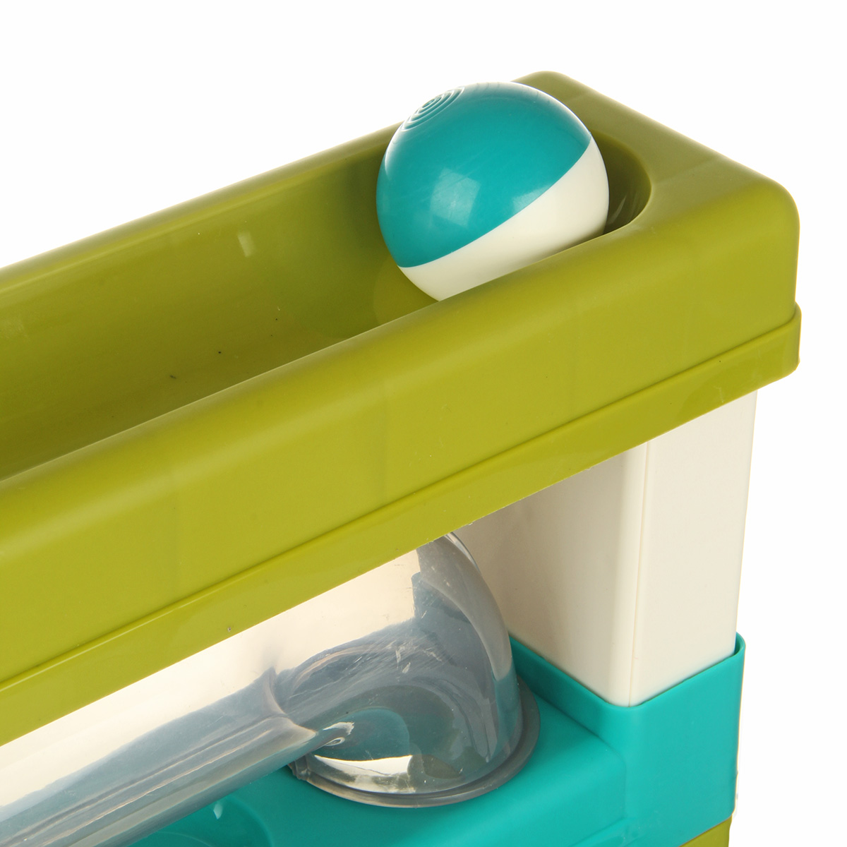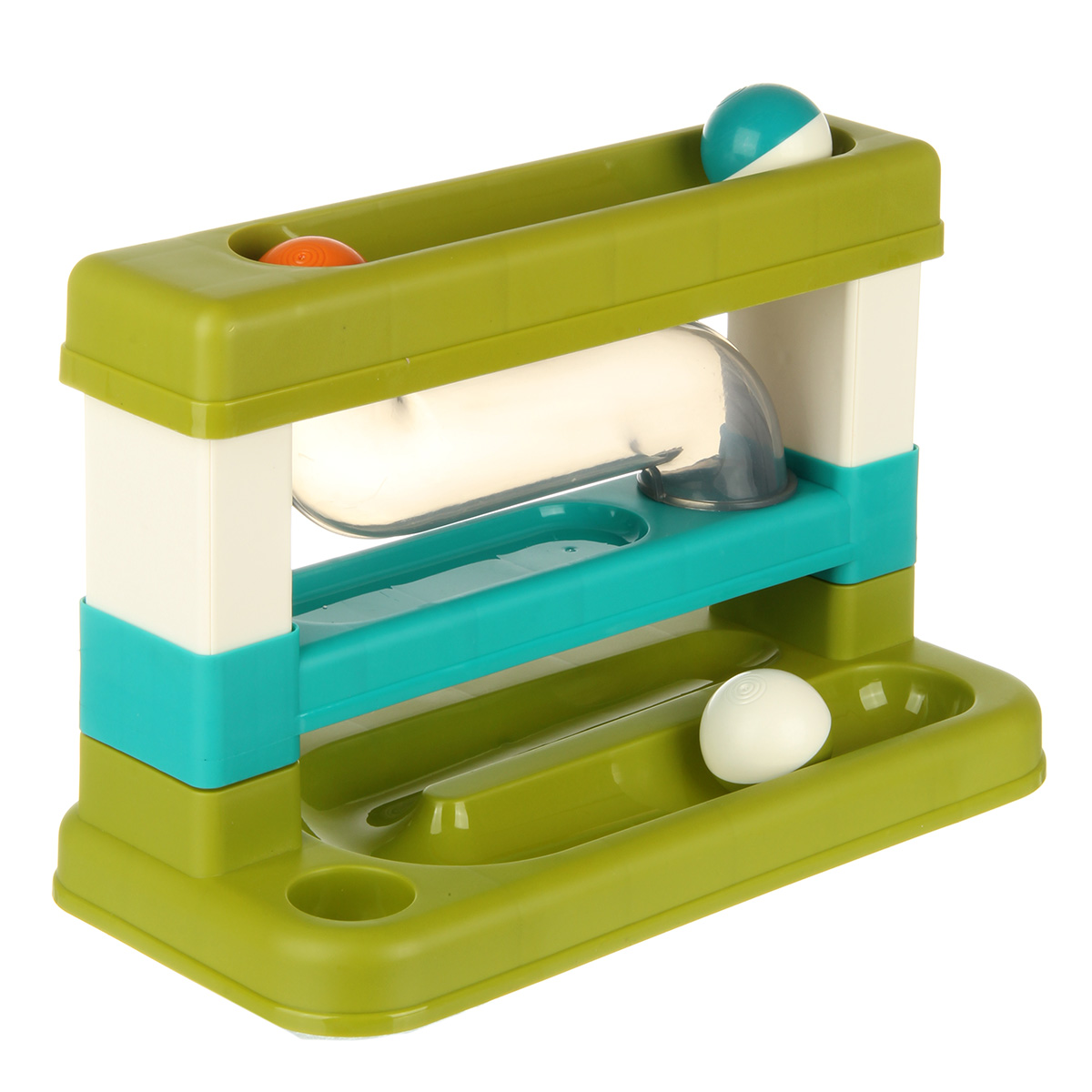 Внутри шариков маленькие перекатывающиеся шарики. Спускаясь по трубе горки, шарики издают звуки.